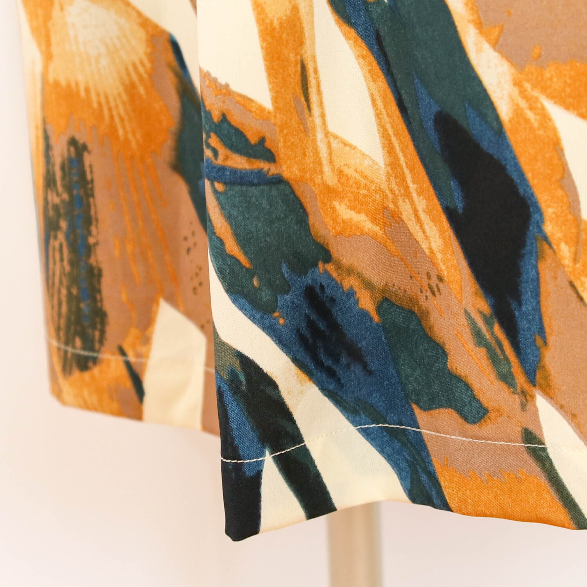 大胆なプリント柄が目を引くポリエステル素材の