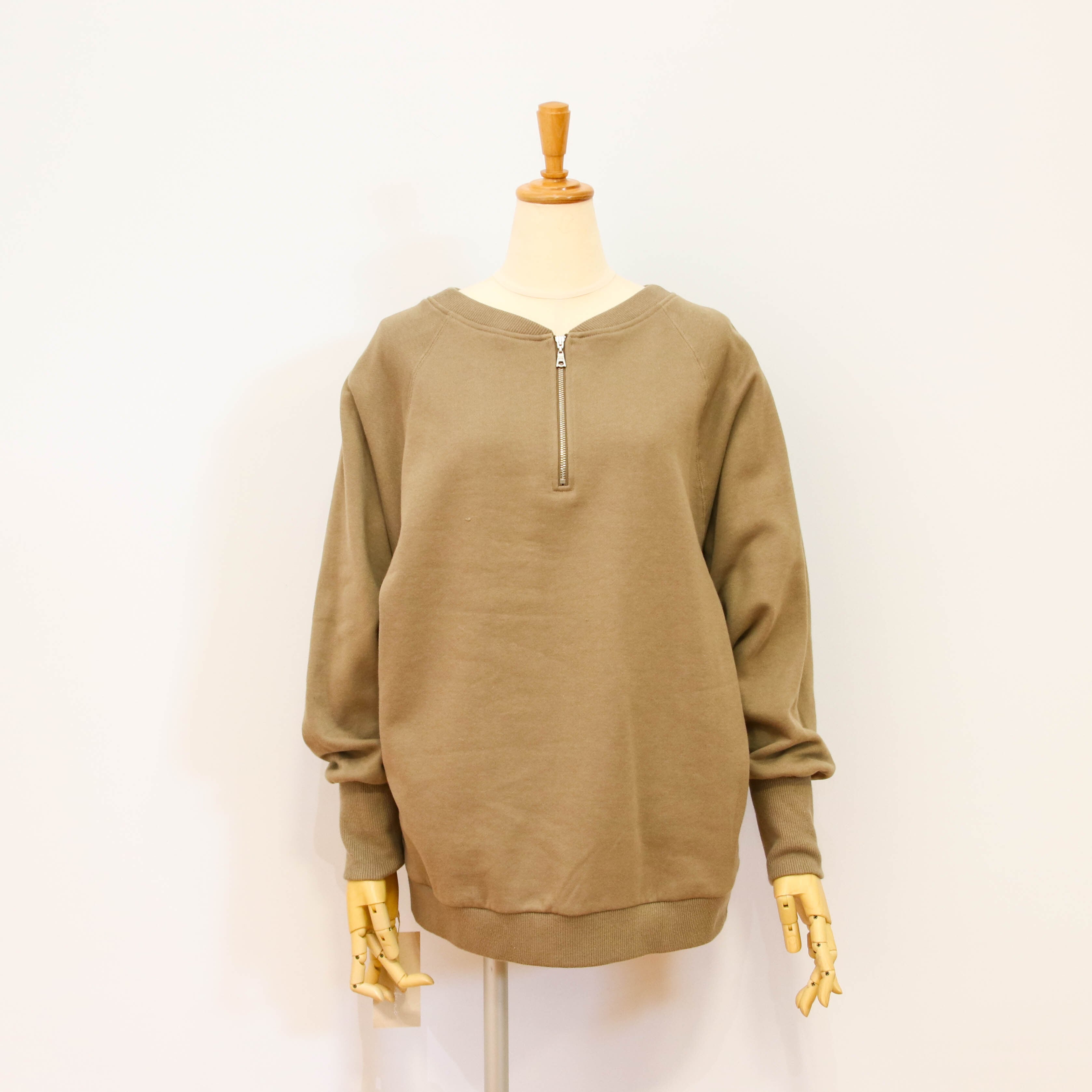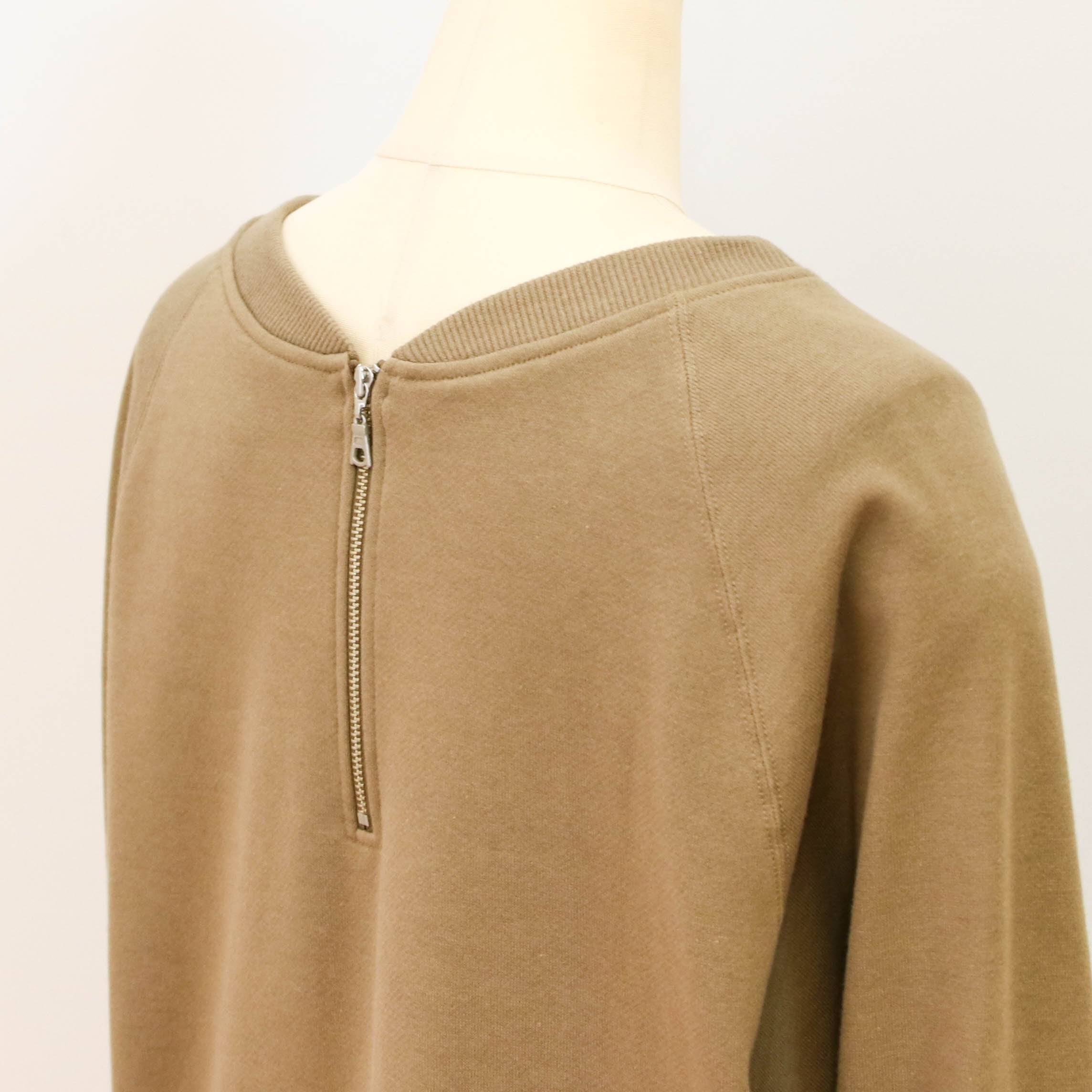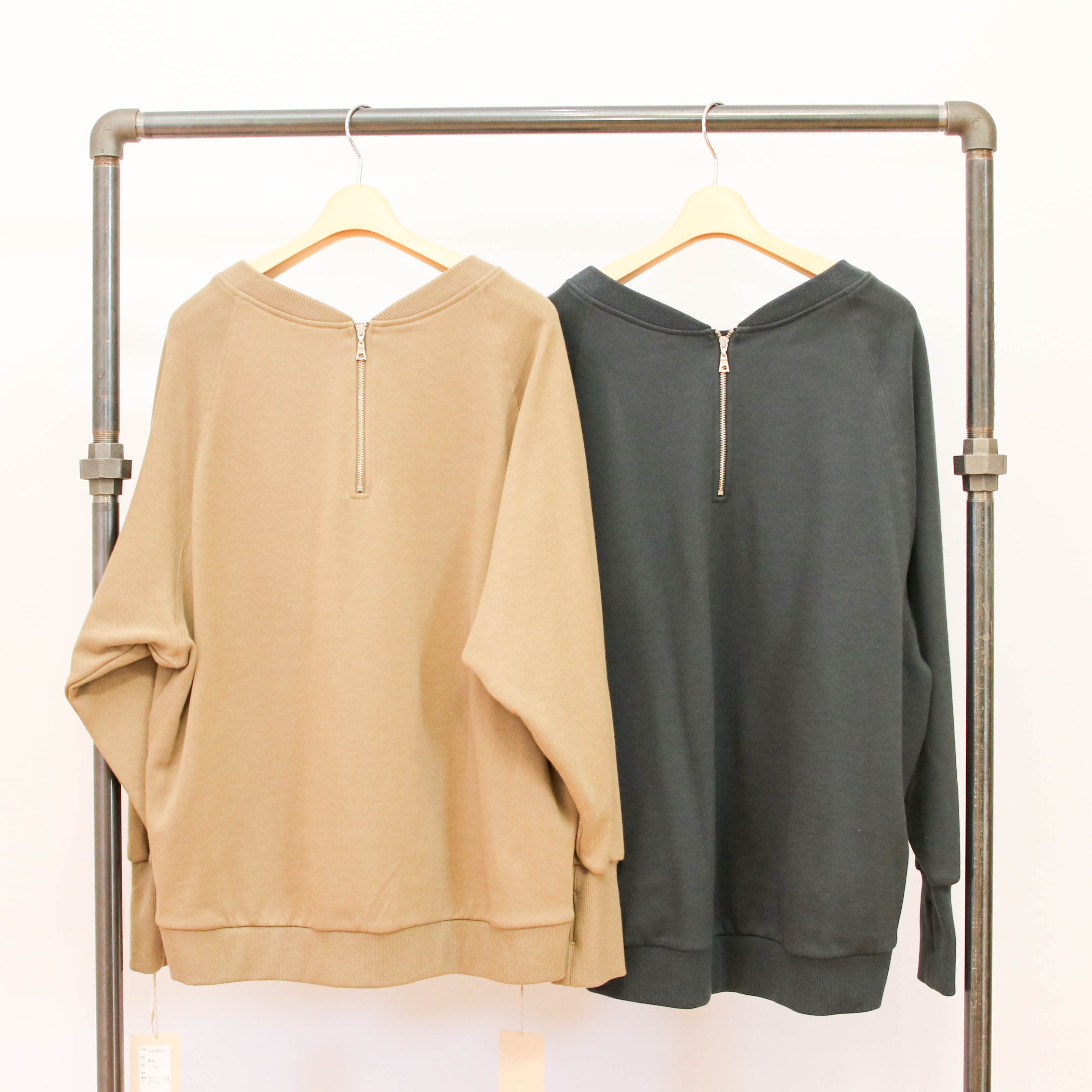 ロゴ面は丸首、ジップ面は緩いVネックになっていて