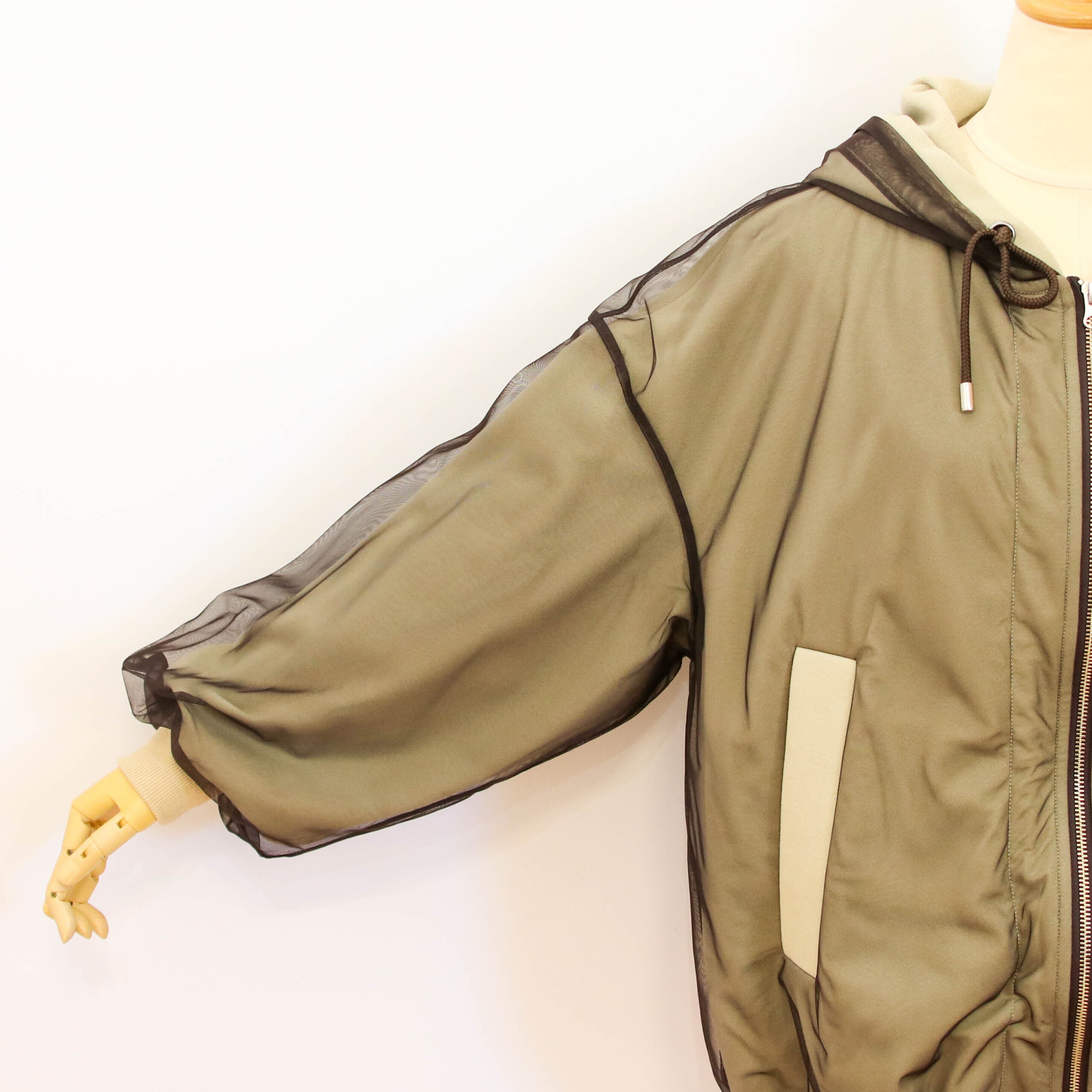 ファスナー横にドローストリングが施されており