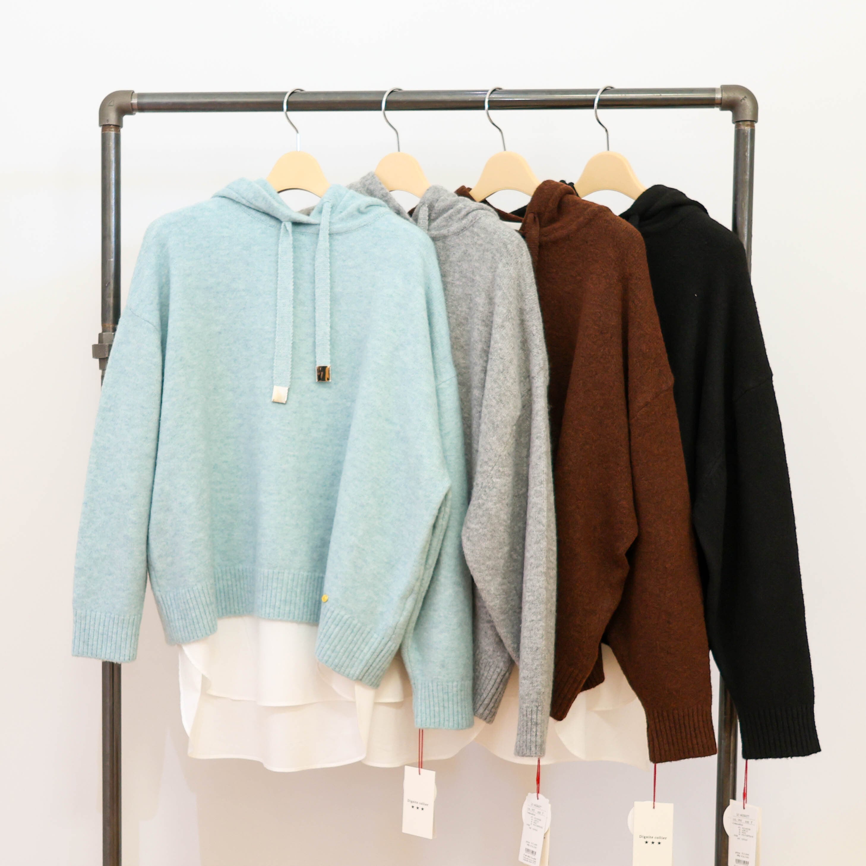 フードタイプのプルオーバーニットです。