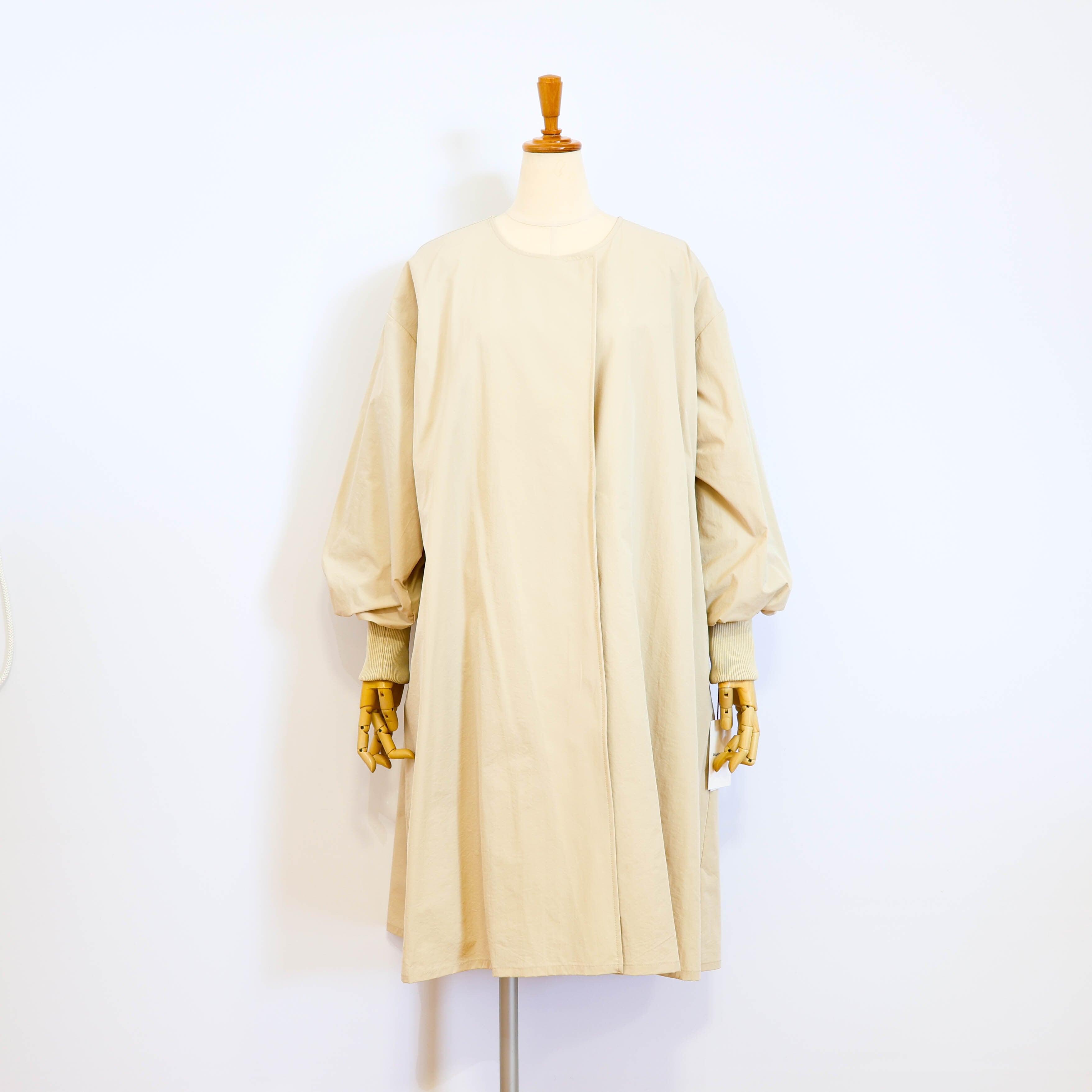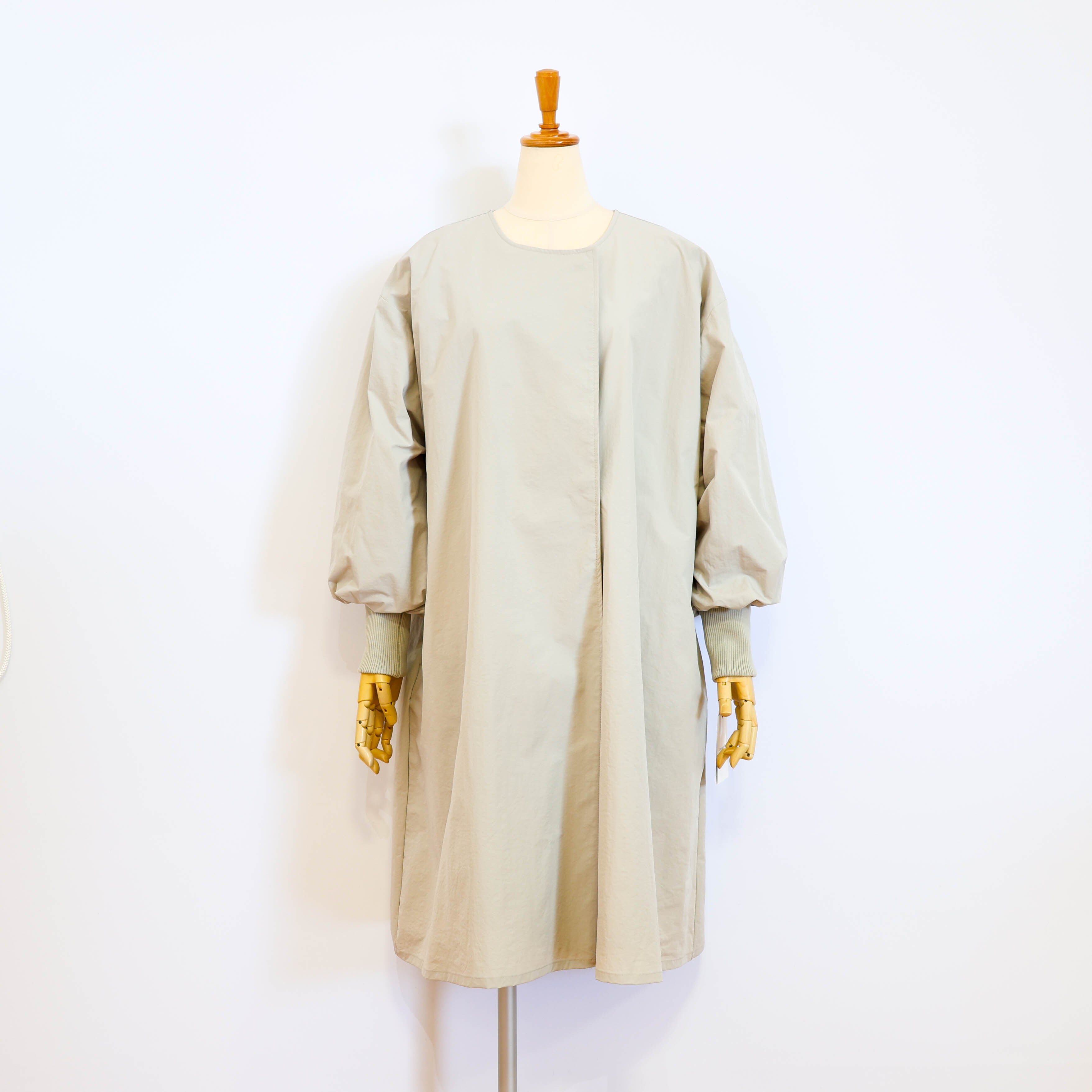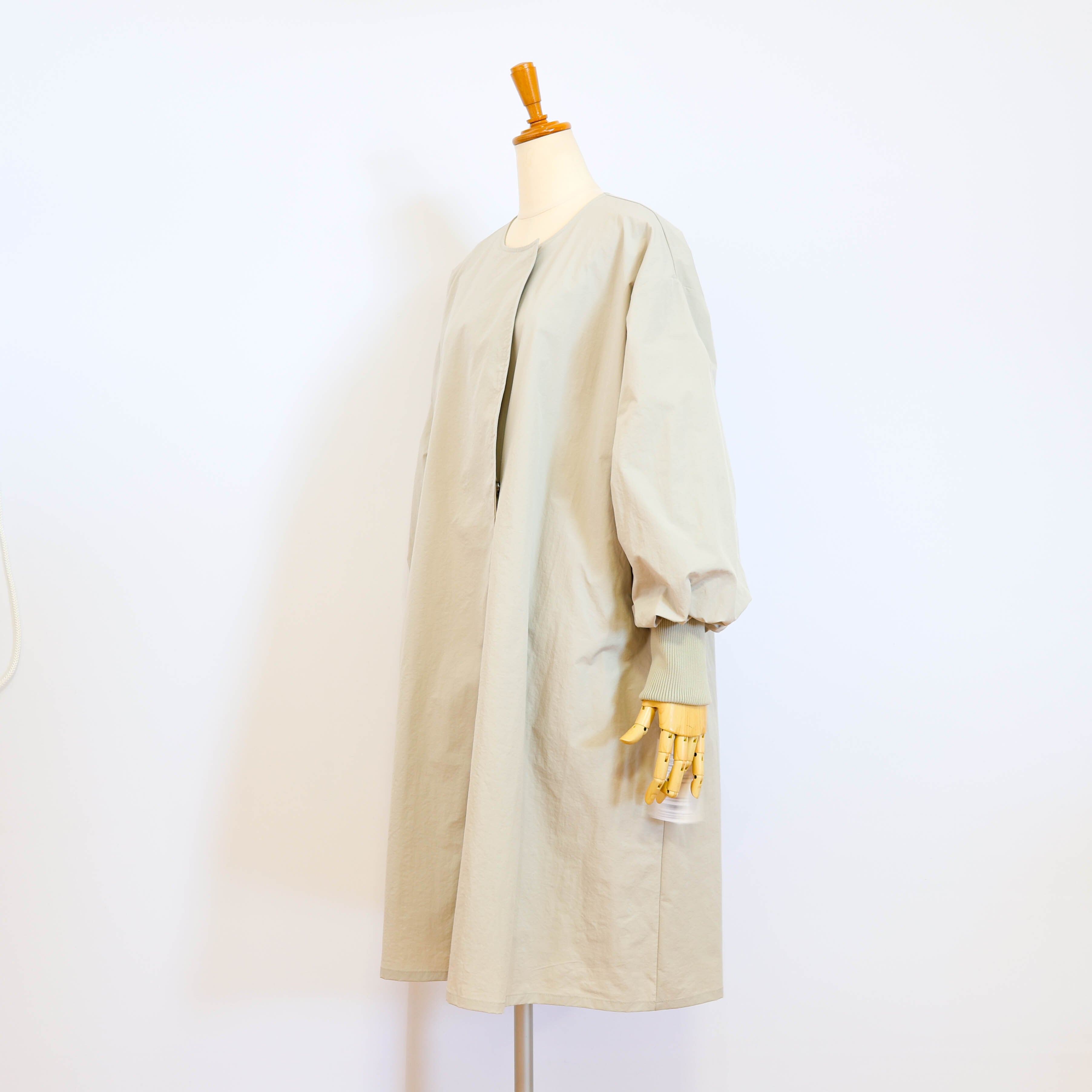 ライトに着こなせるリブ袖ノーカラーコートです。