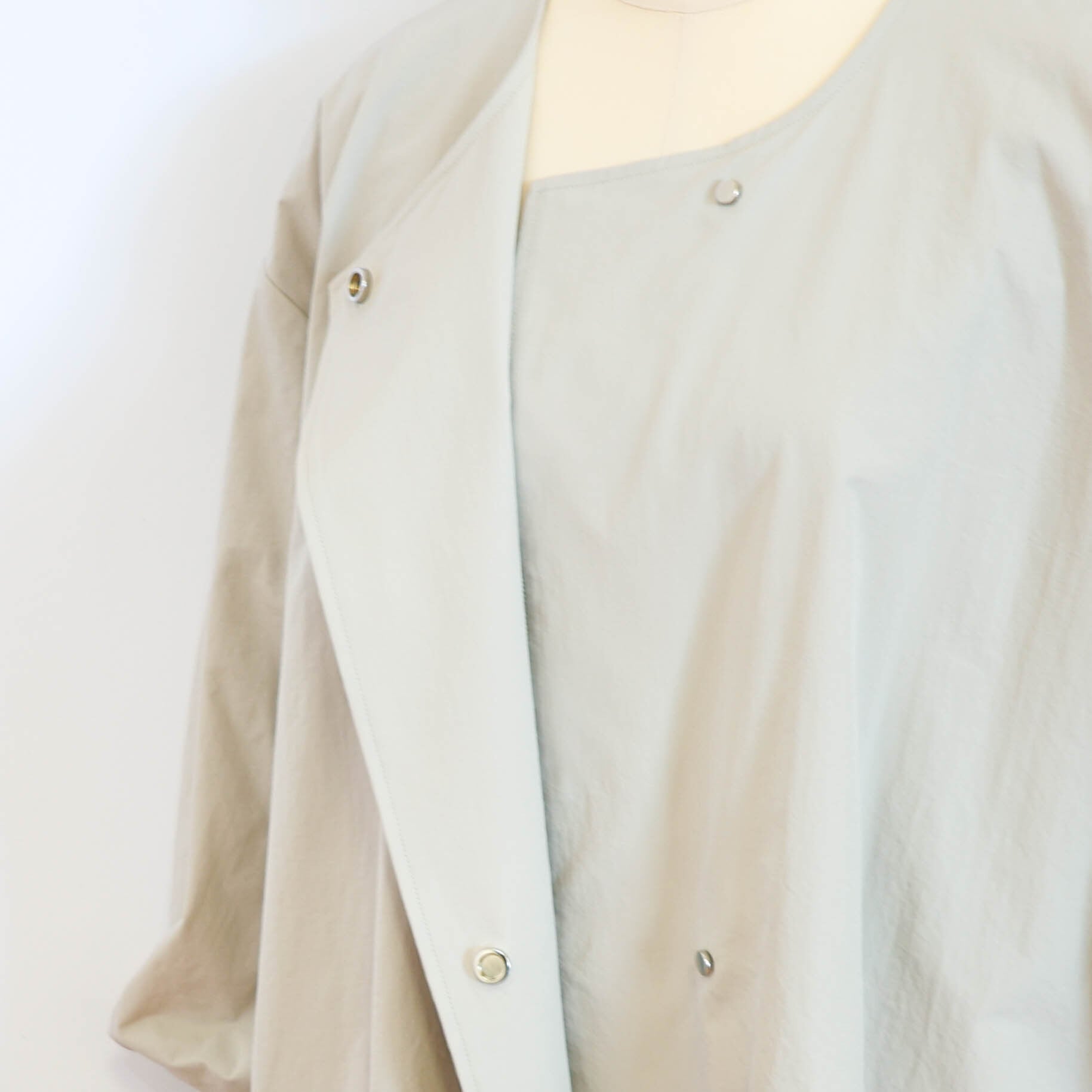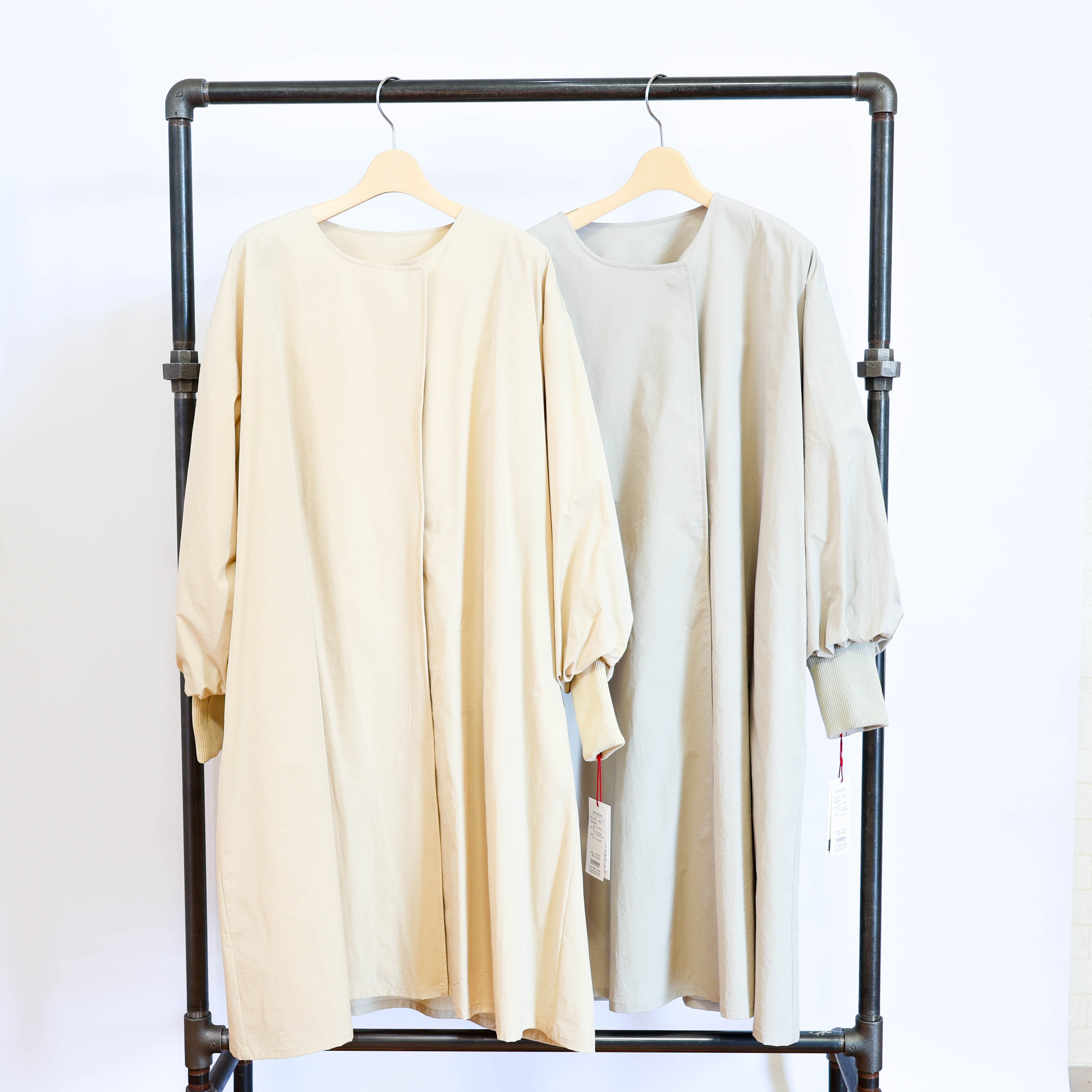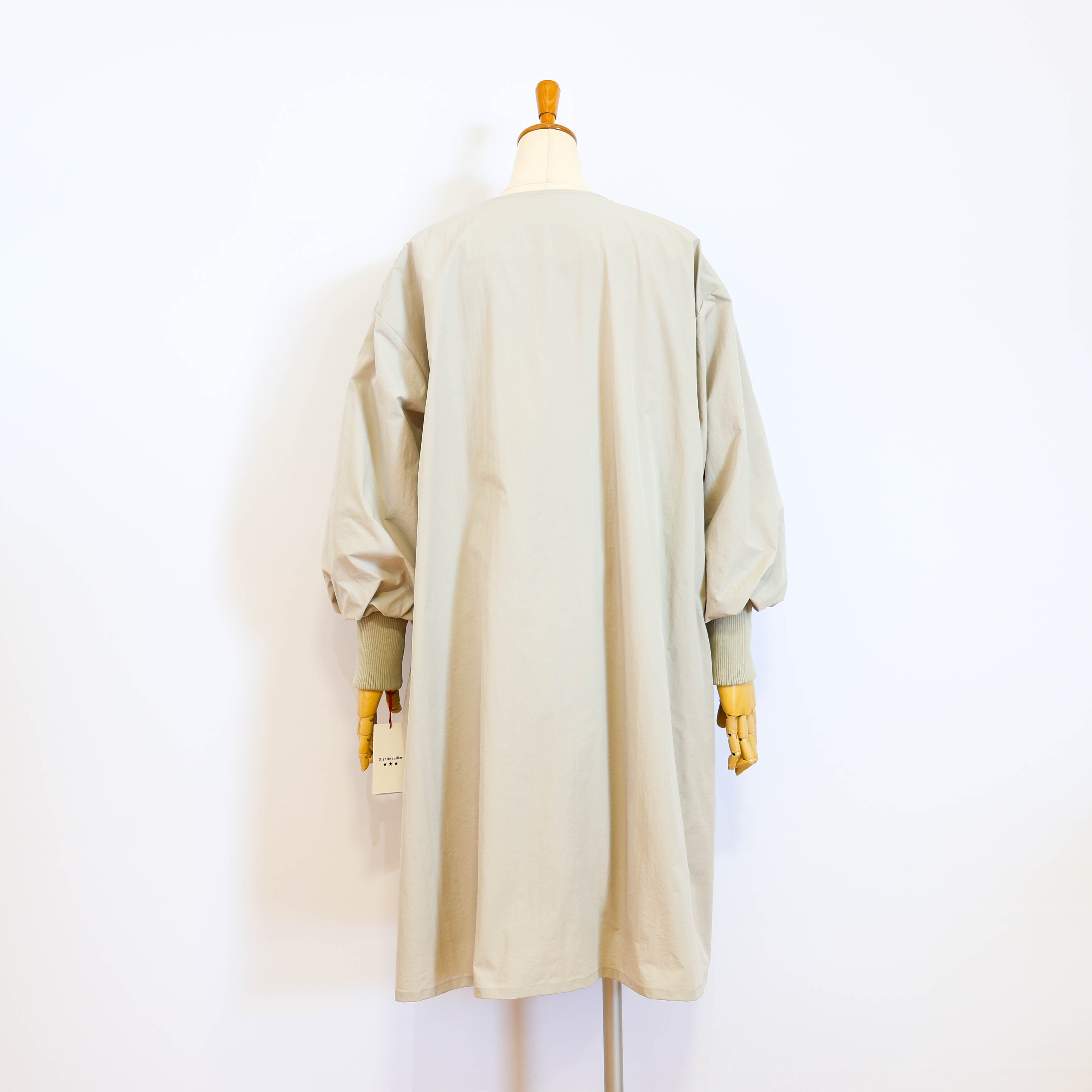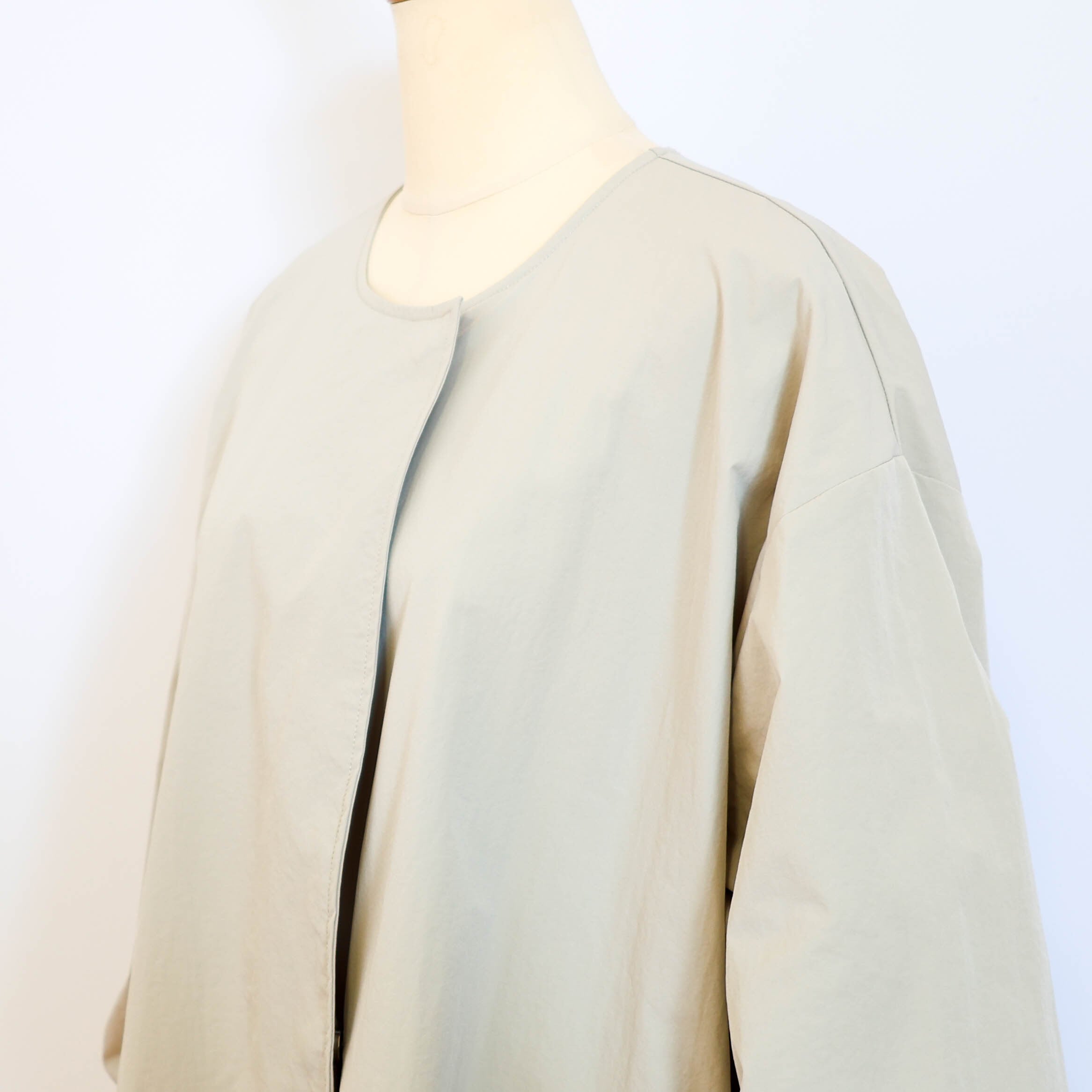 ライトに着こなせるリブ袖ノーカラーコートです。