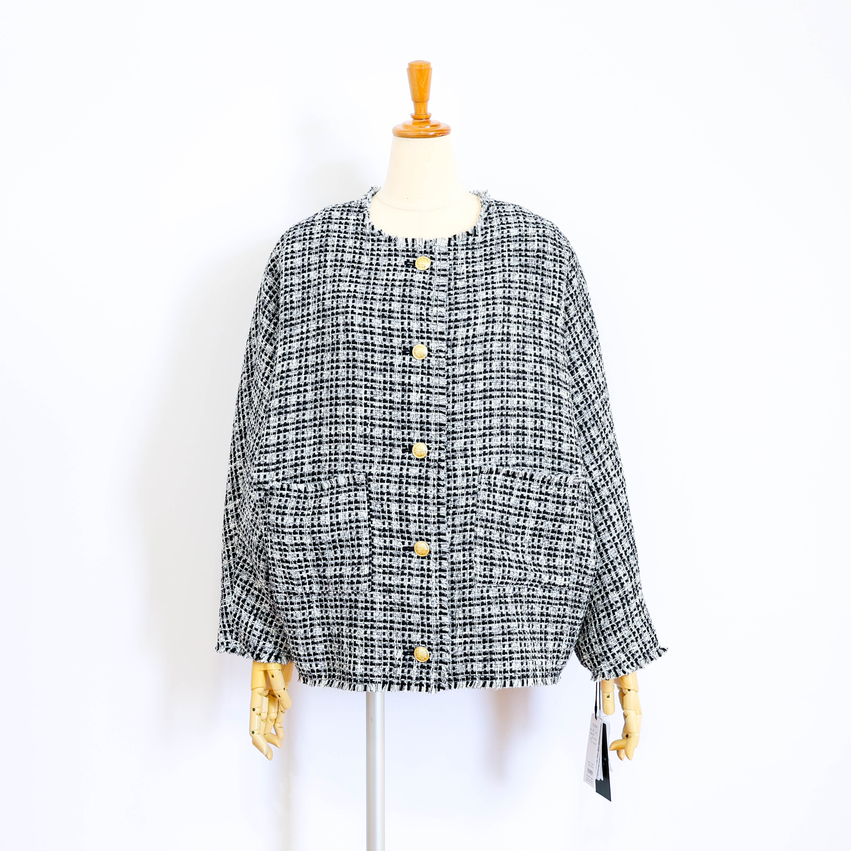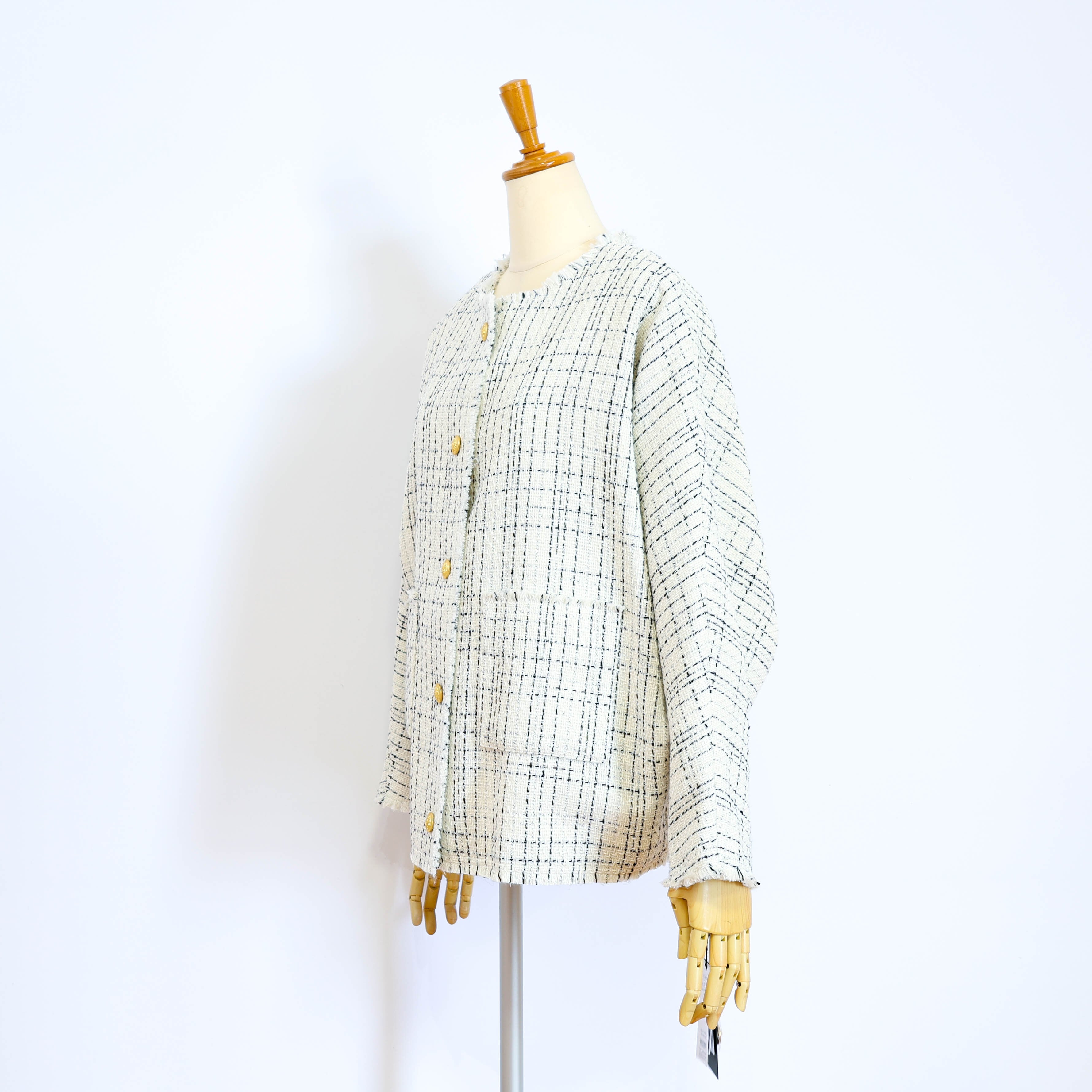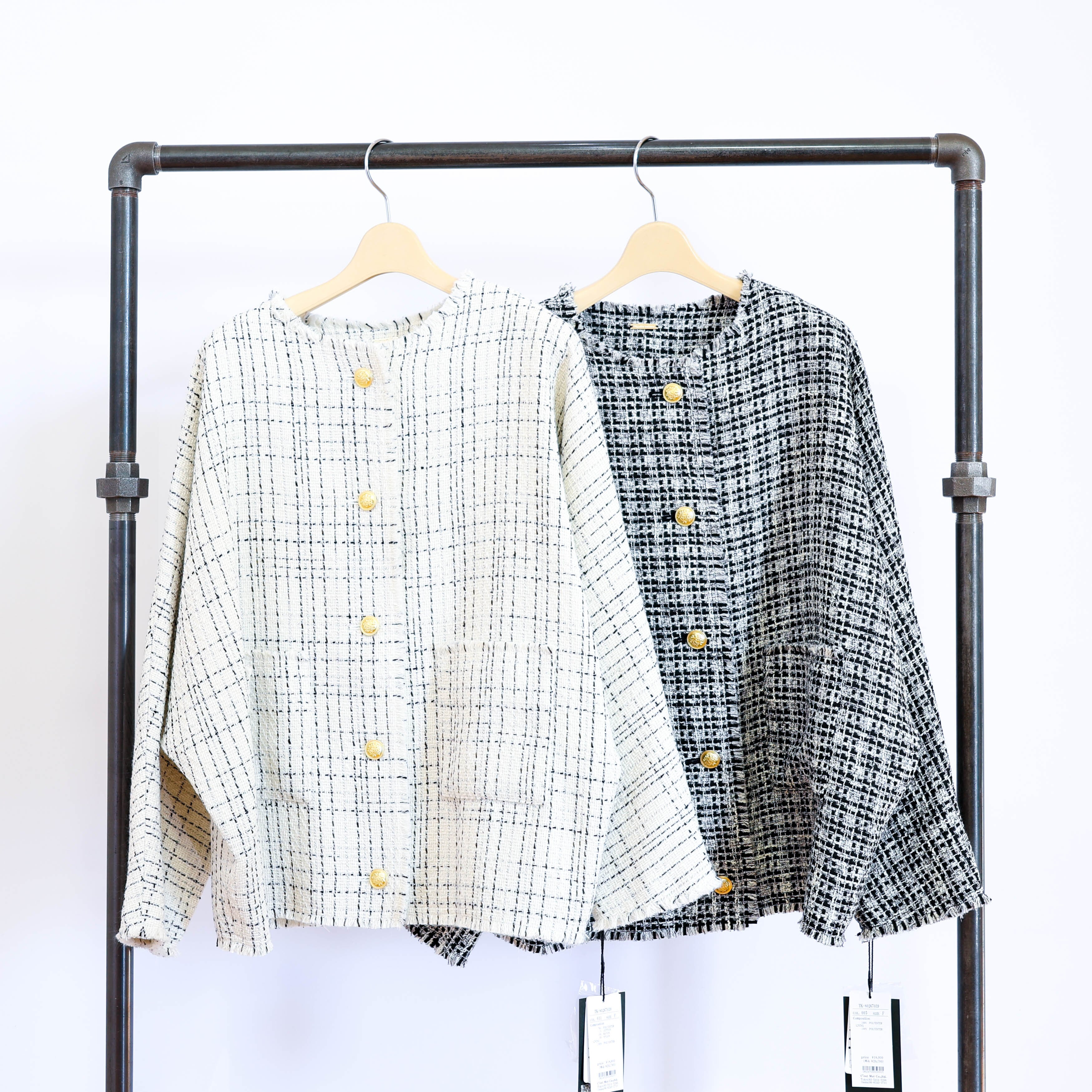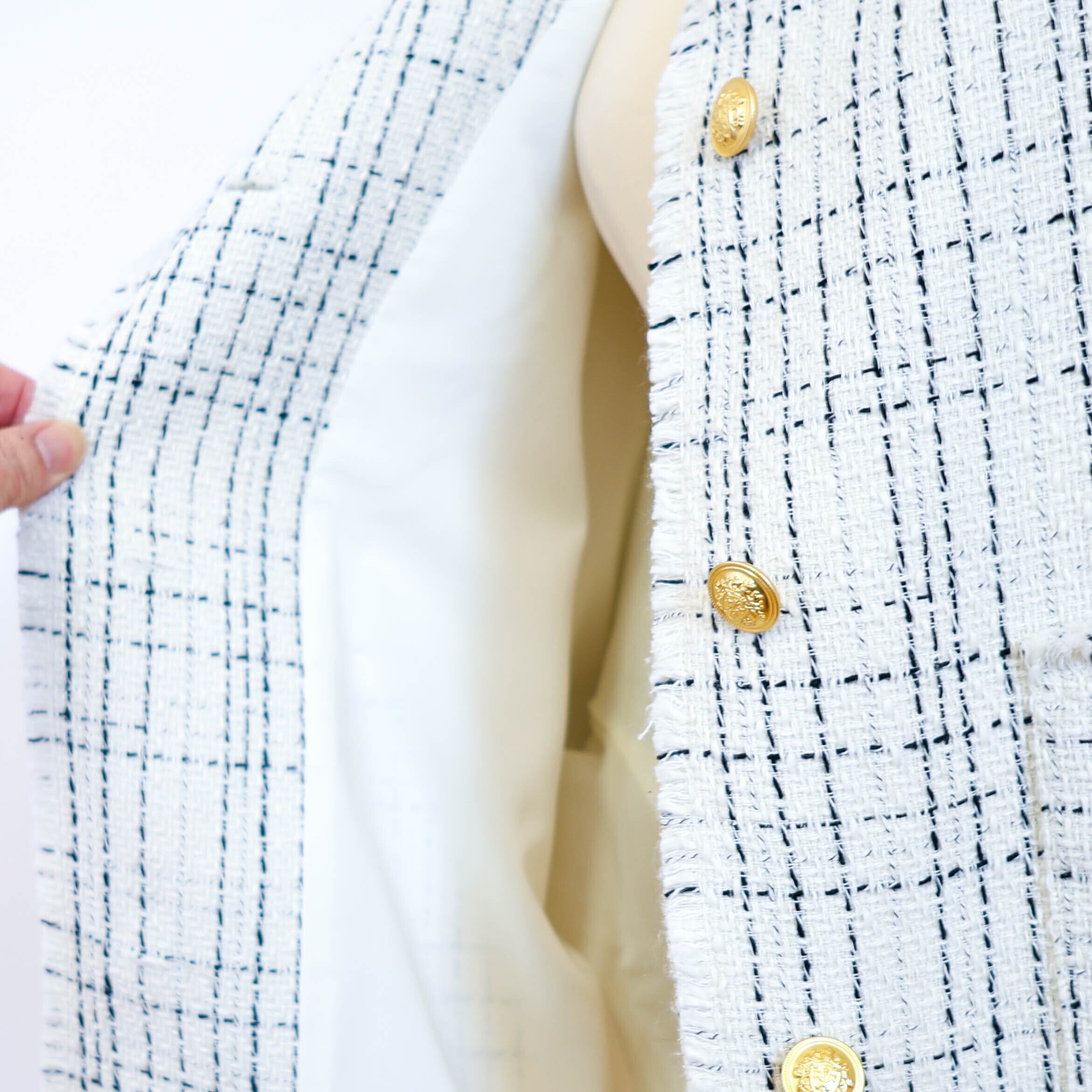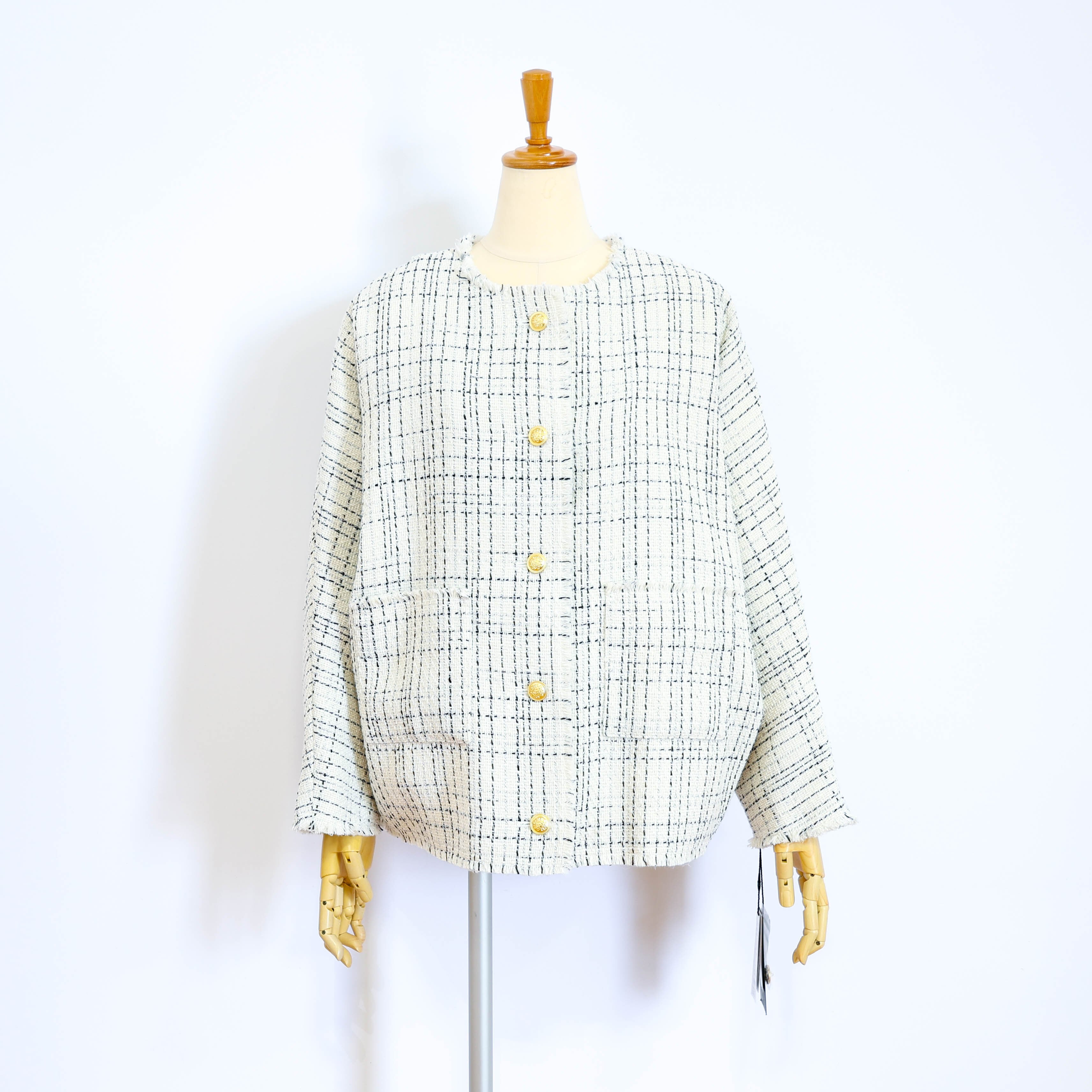 ツイード素材のノーカラージャケットです。