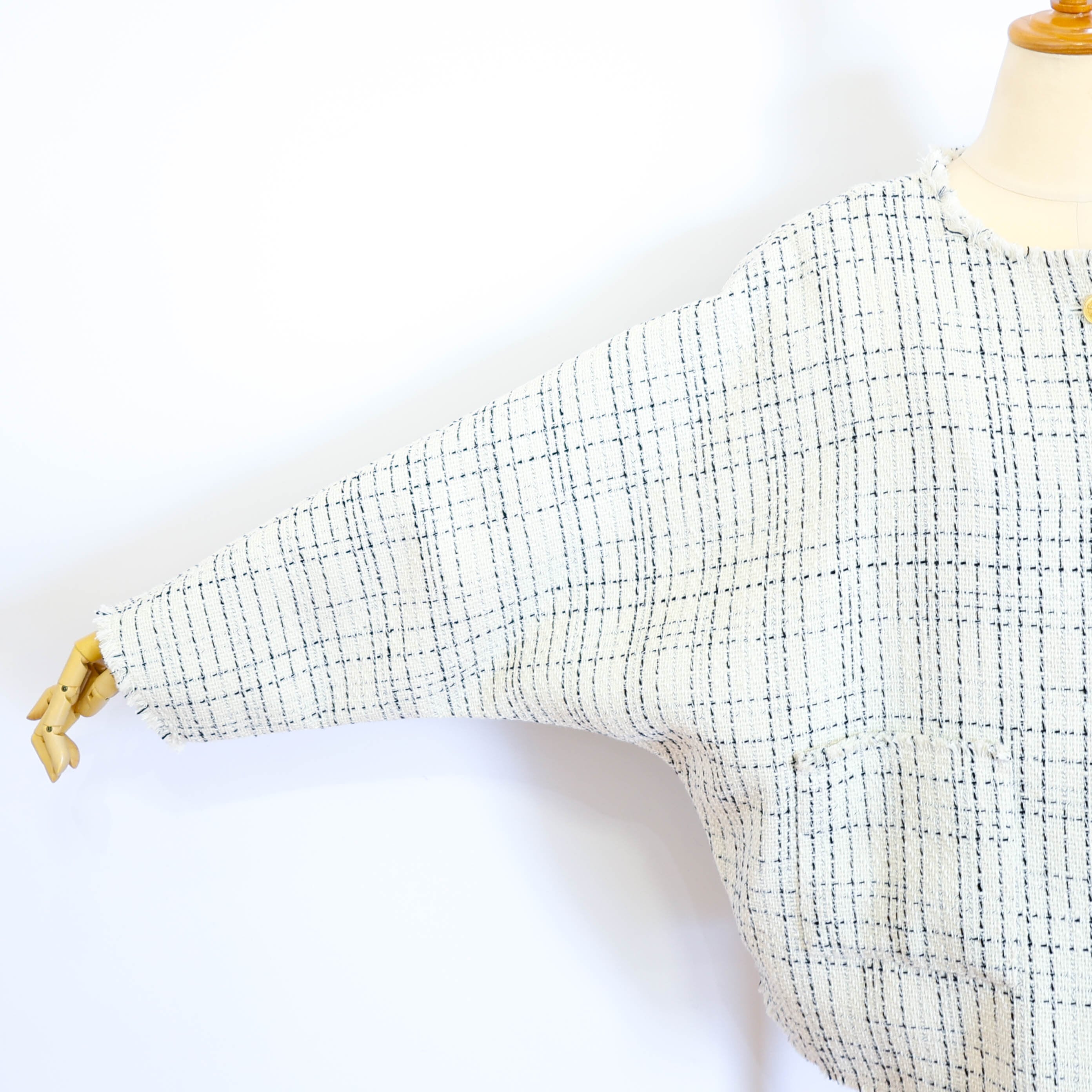 身幅広めのドルマンスリーブでざっくりと羽織り易い