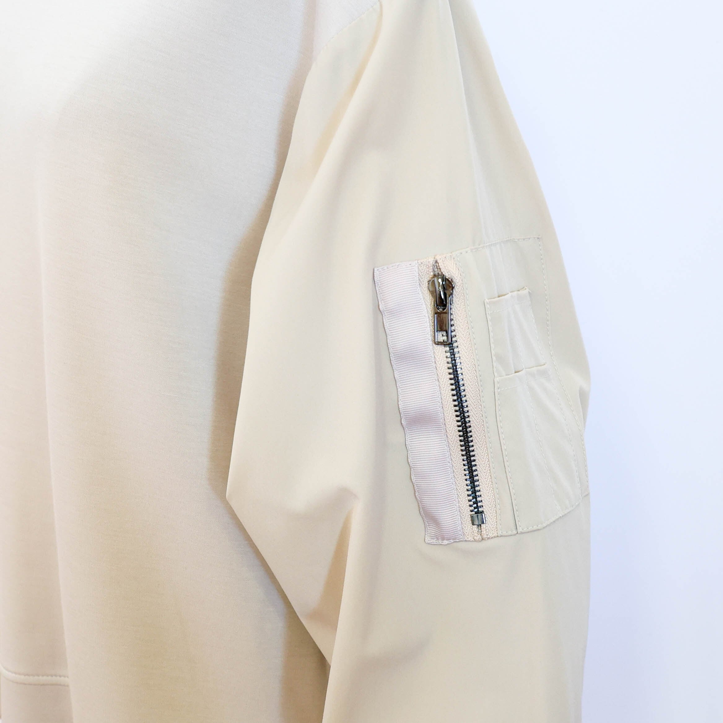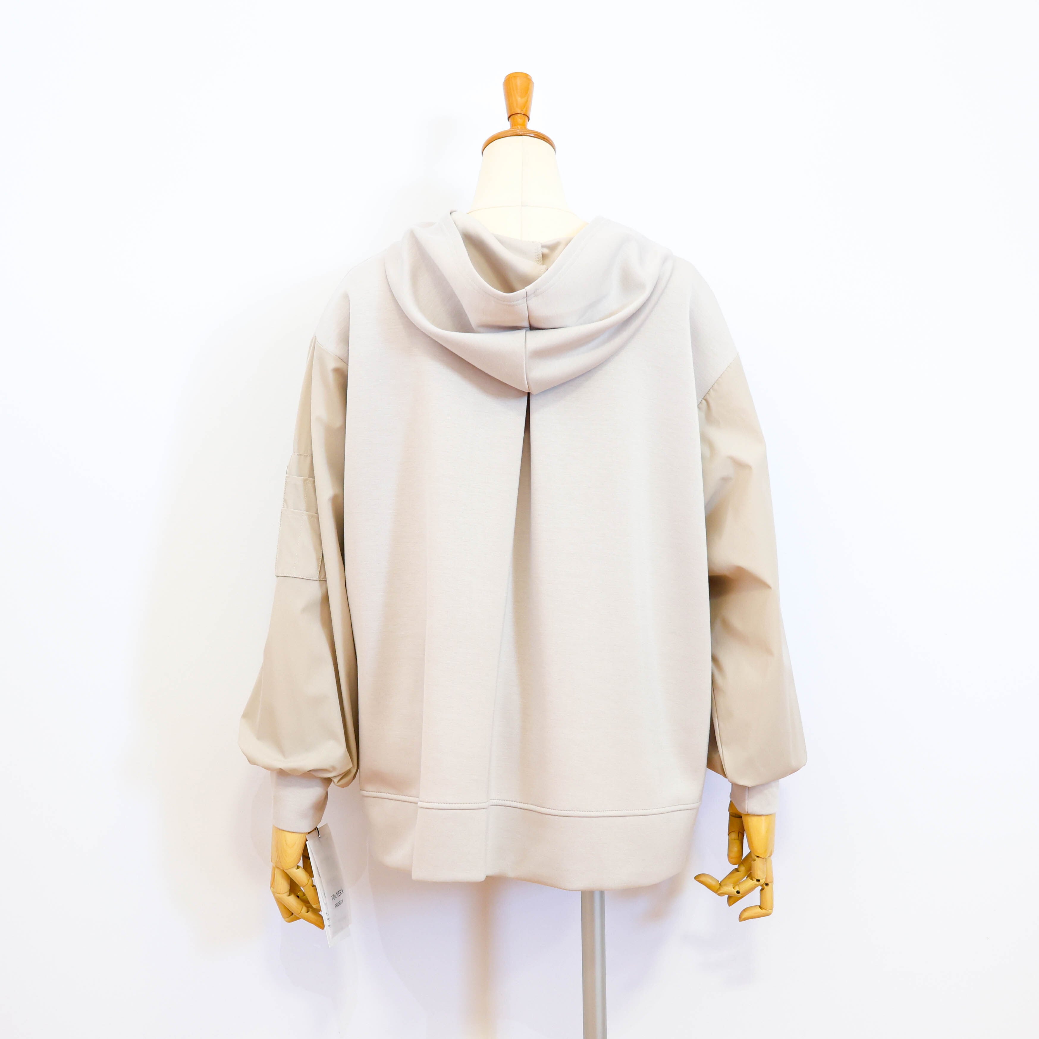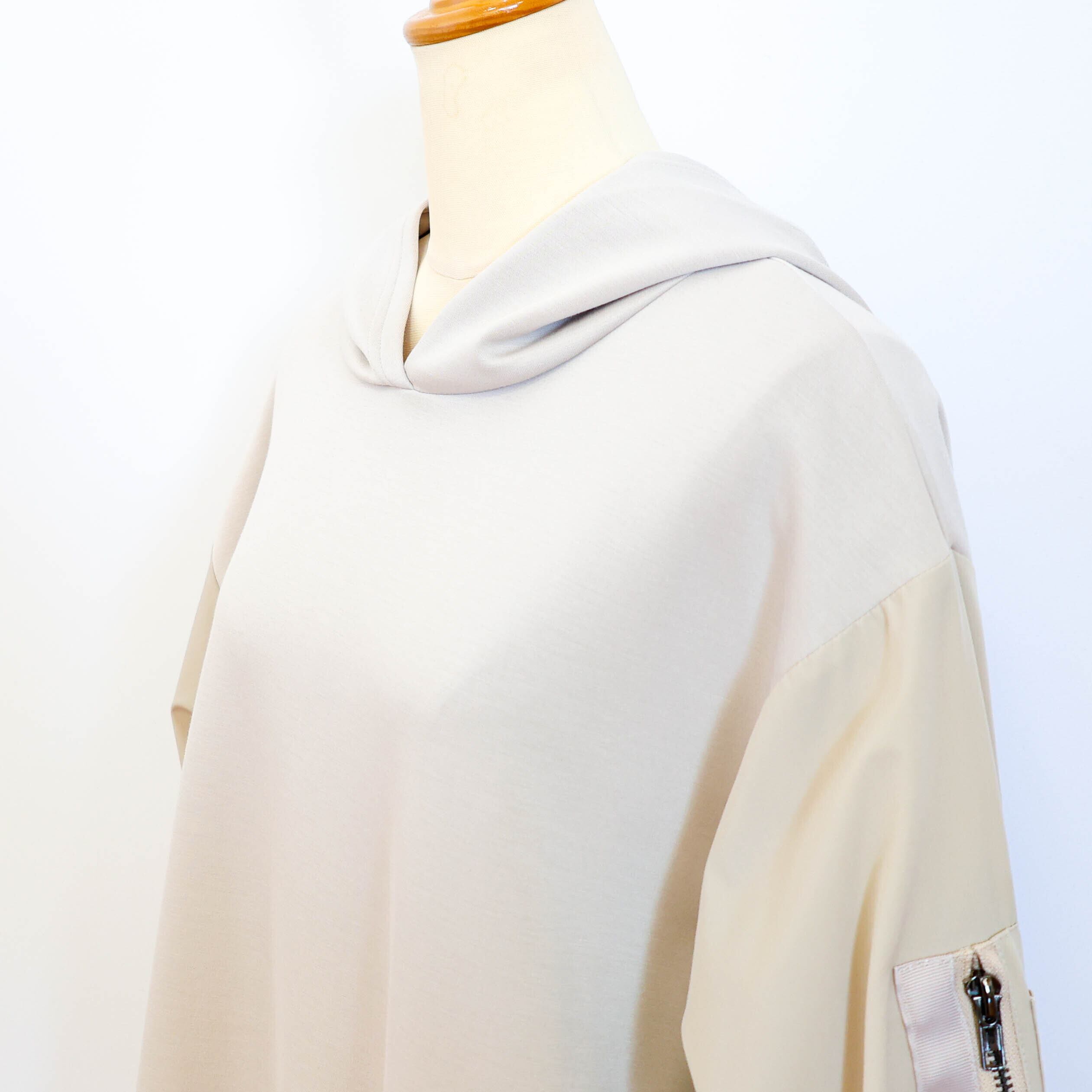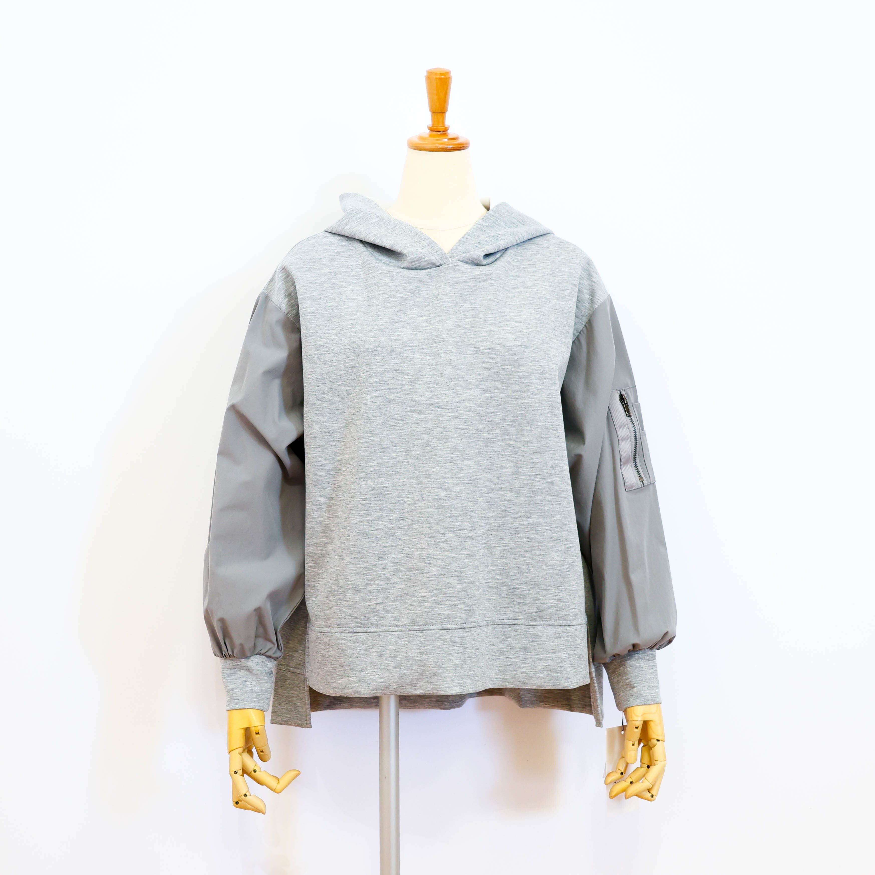 異素材の袖部分がアクセントになって
