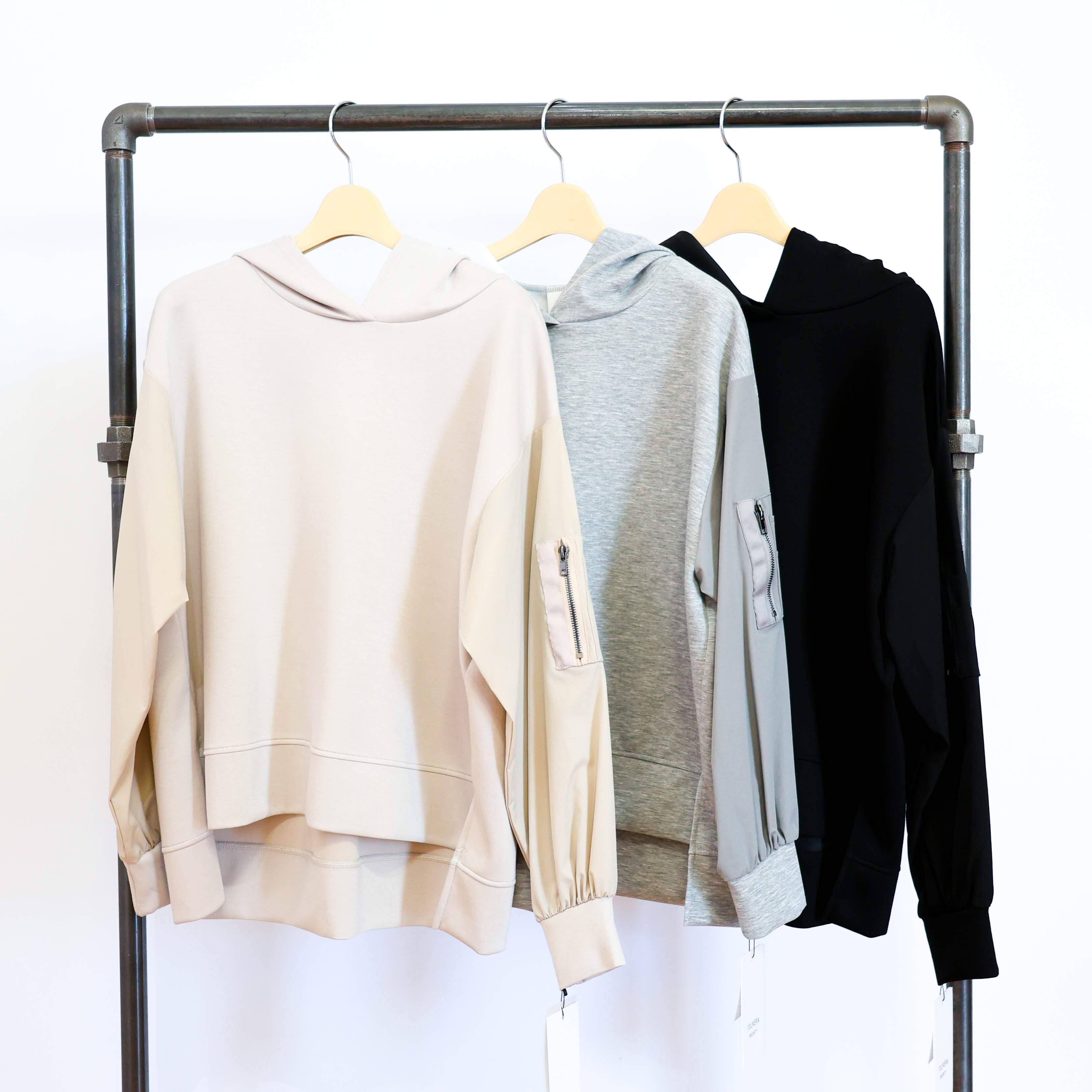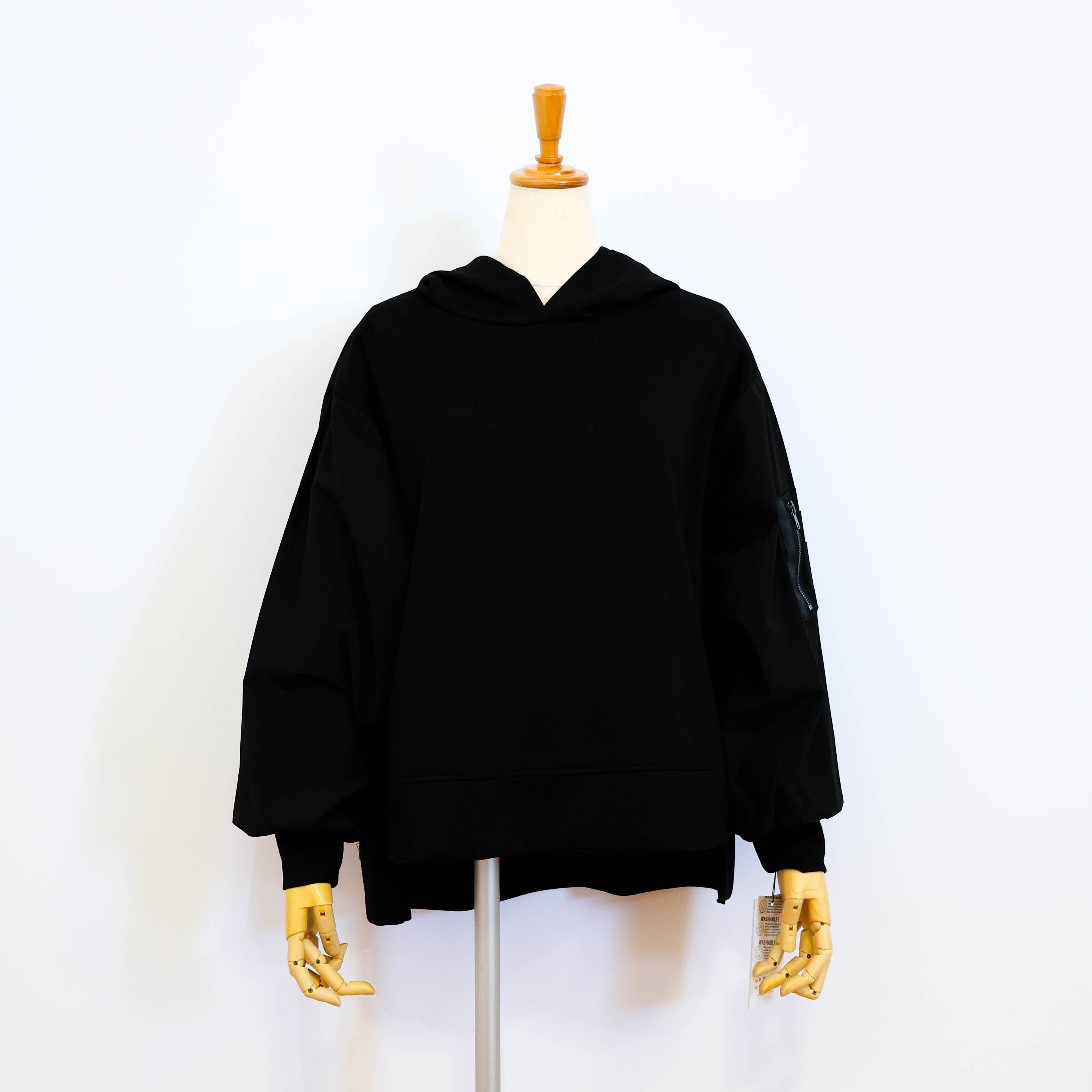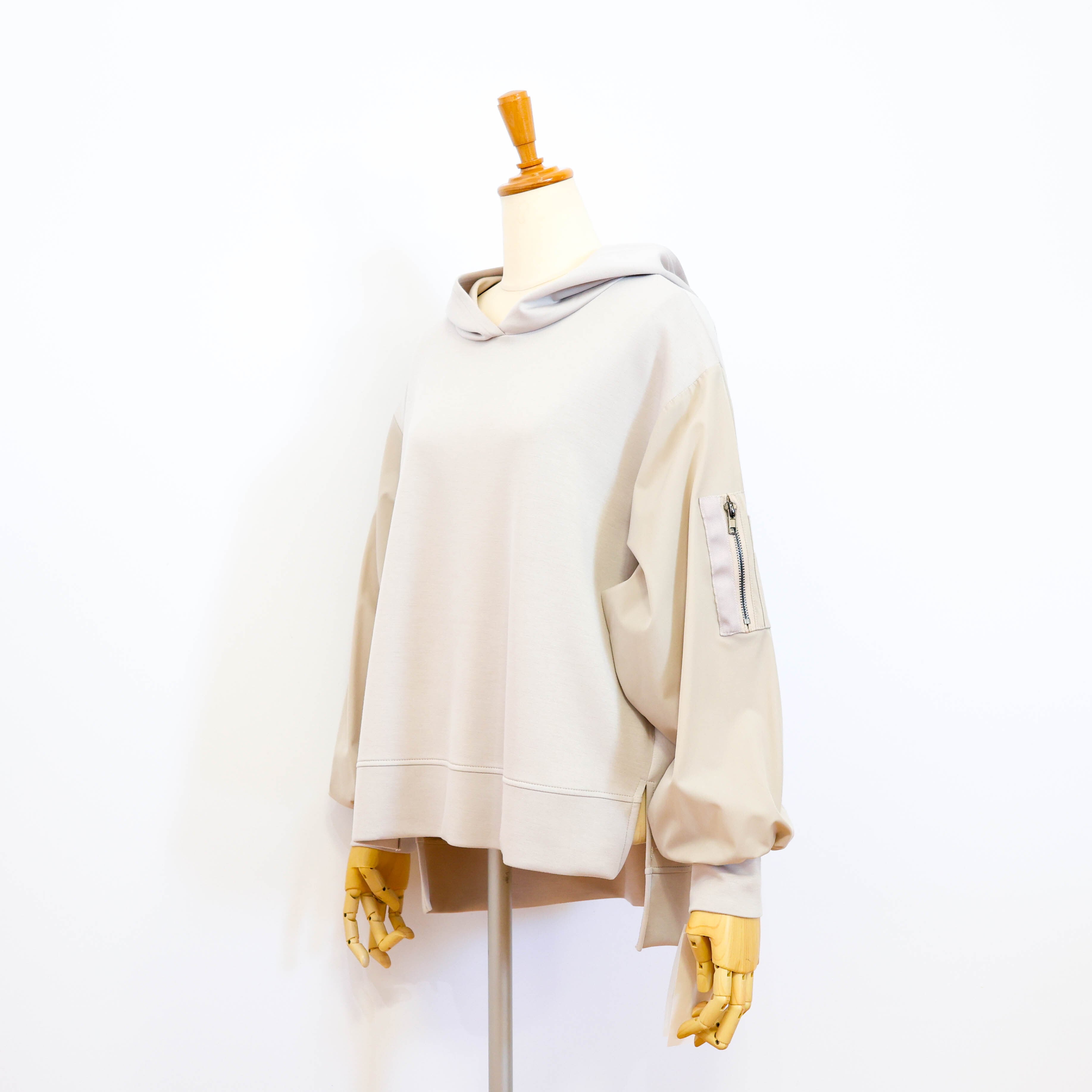 ポイントを持たせたプルオーバータイプのフーディです。