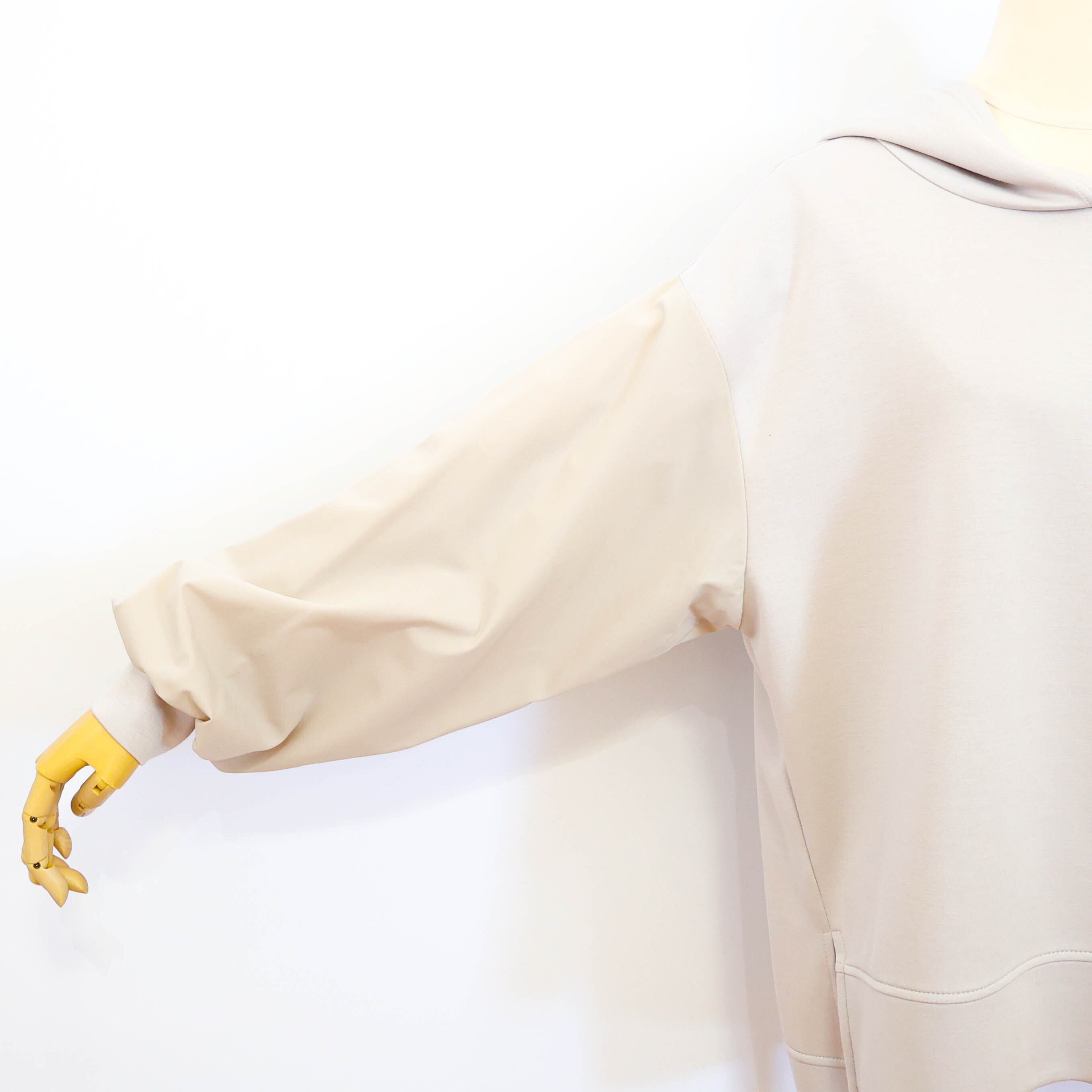 袖の部分にだけシャリ感のあるナイロン素材を組み合わせて
