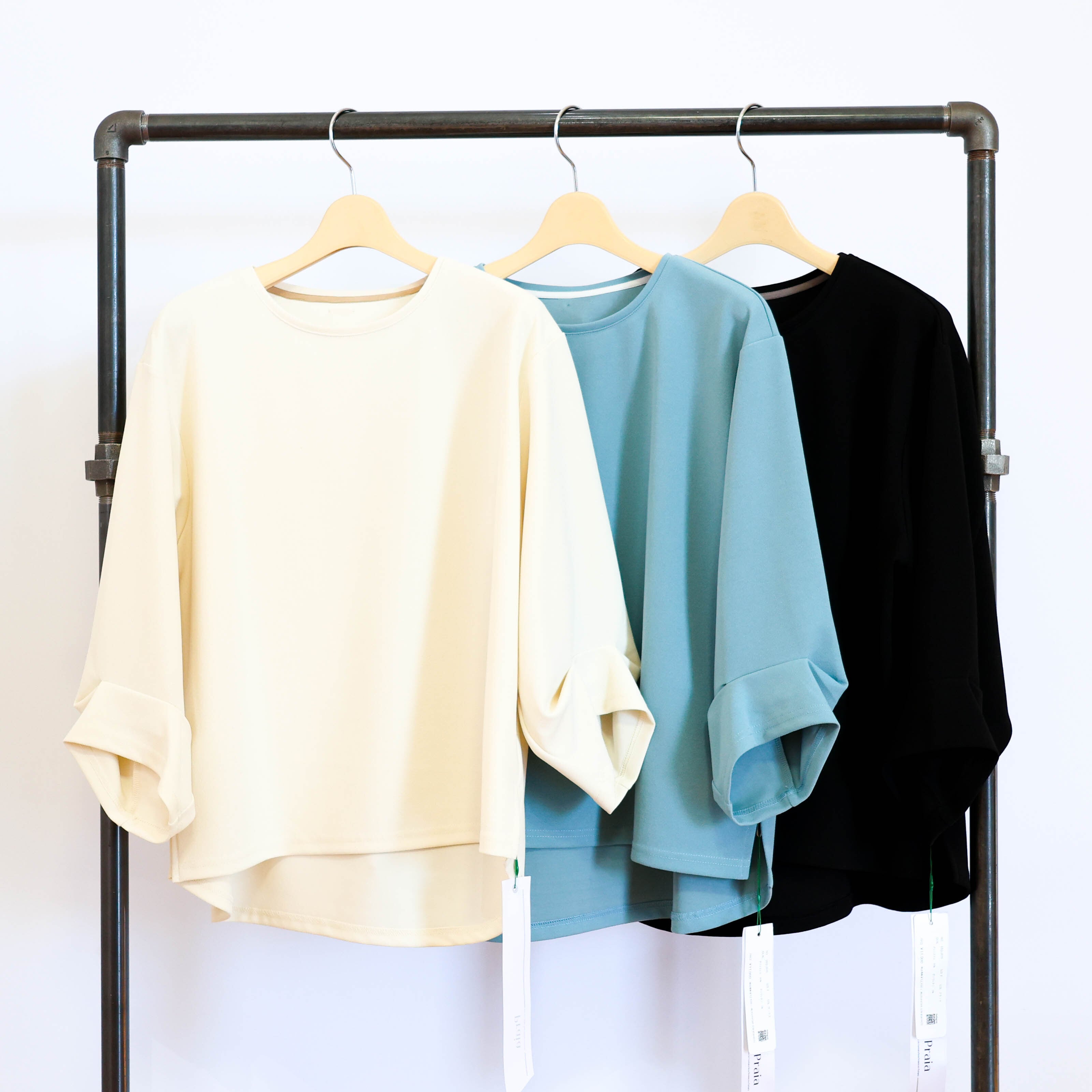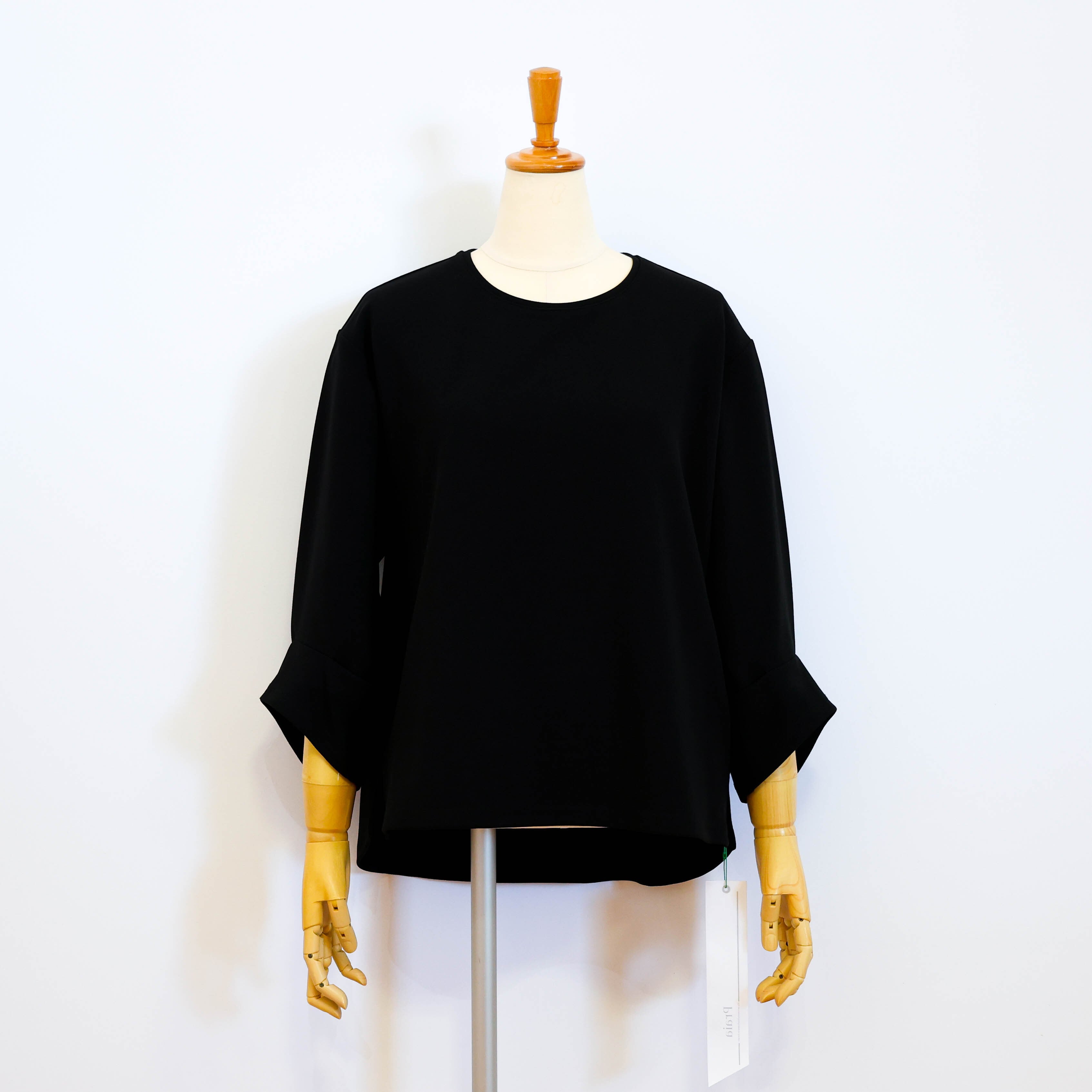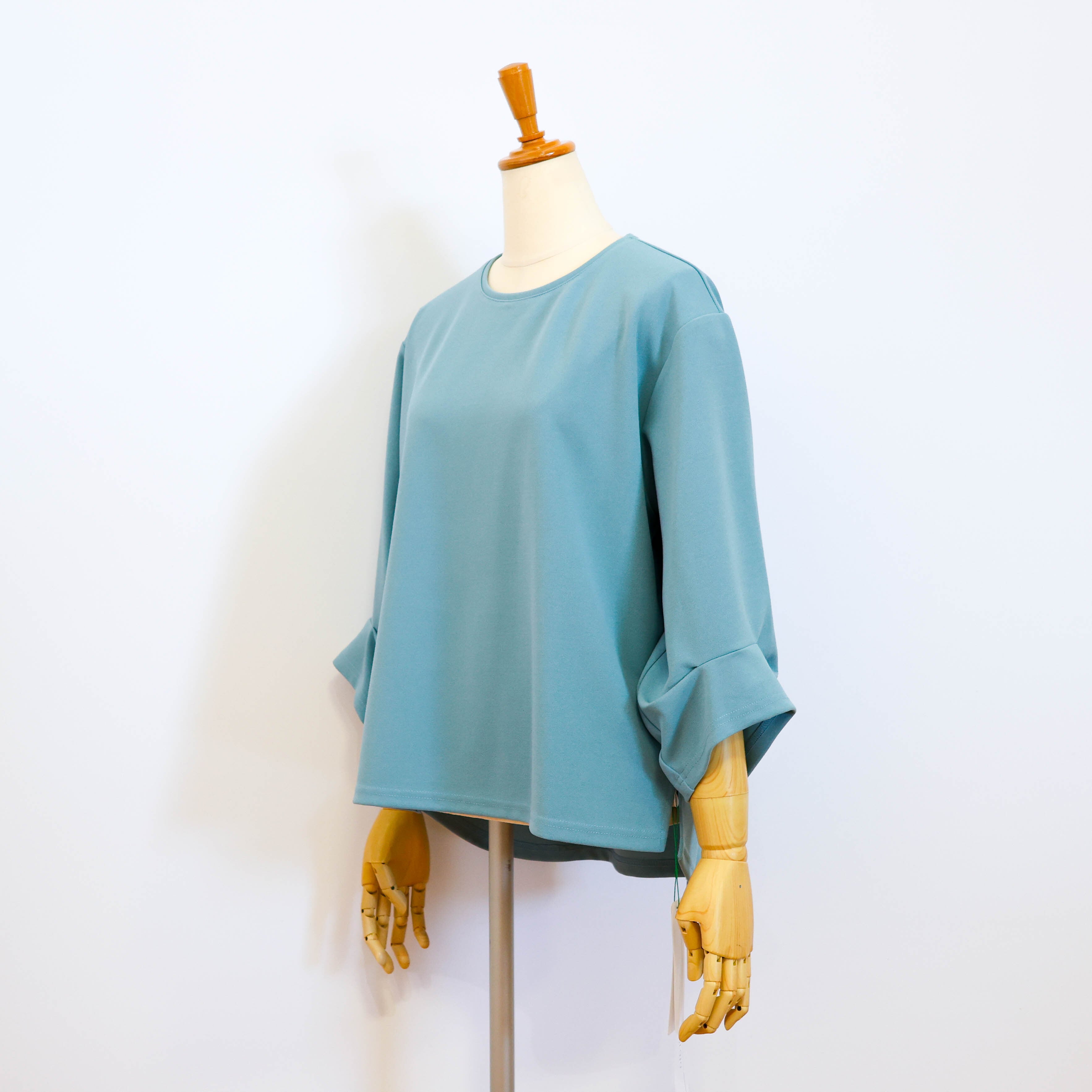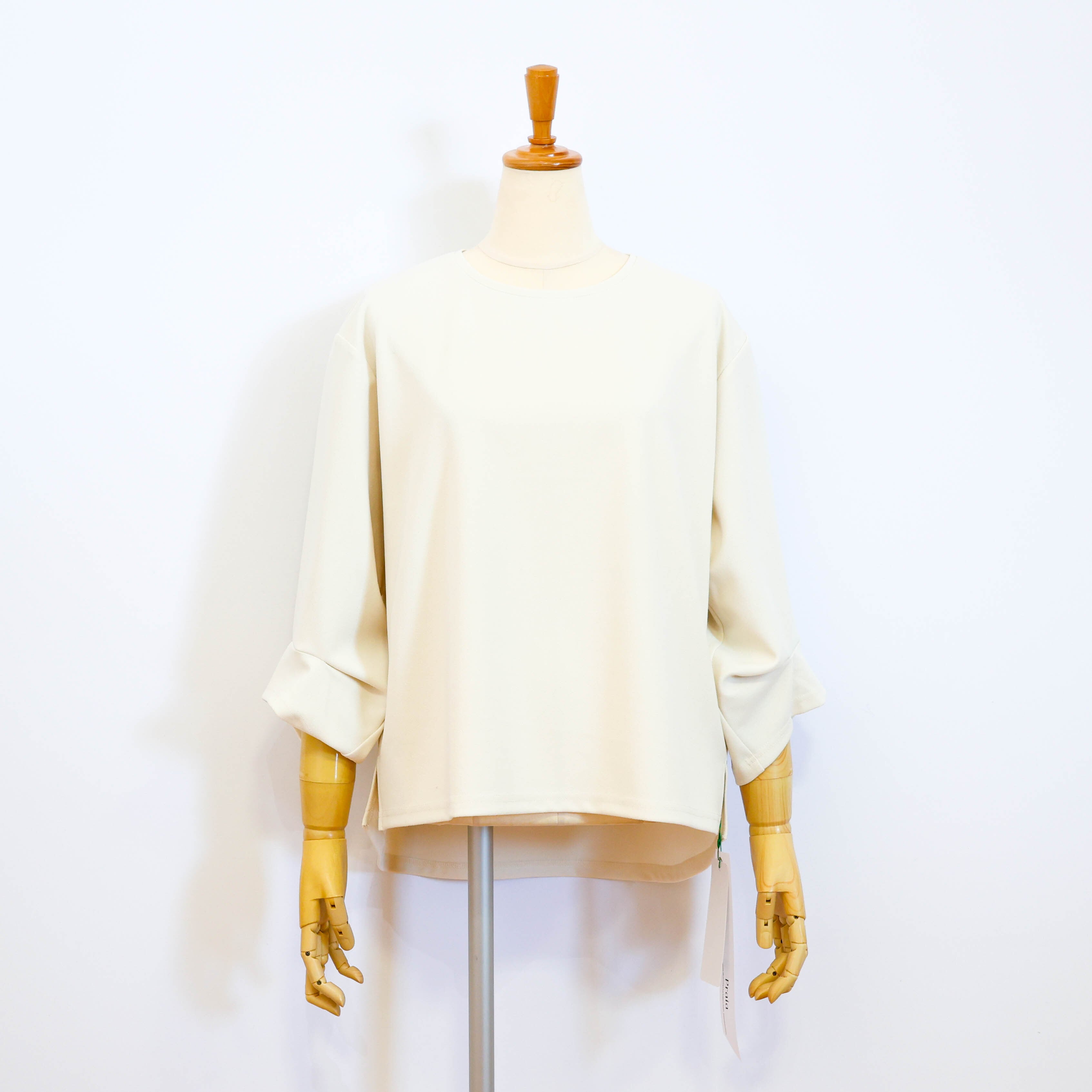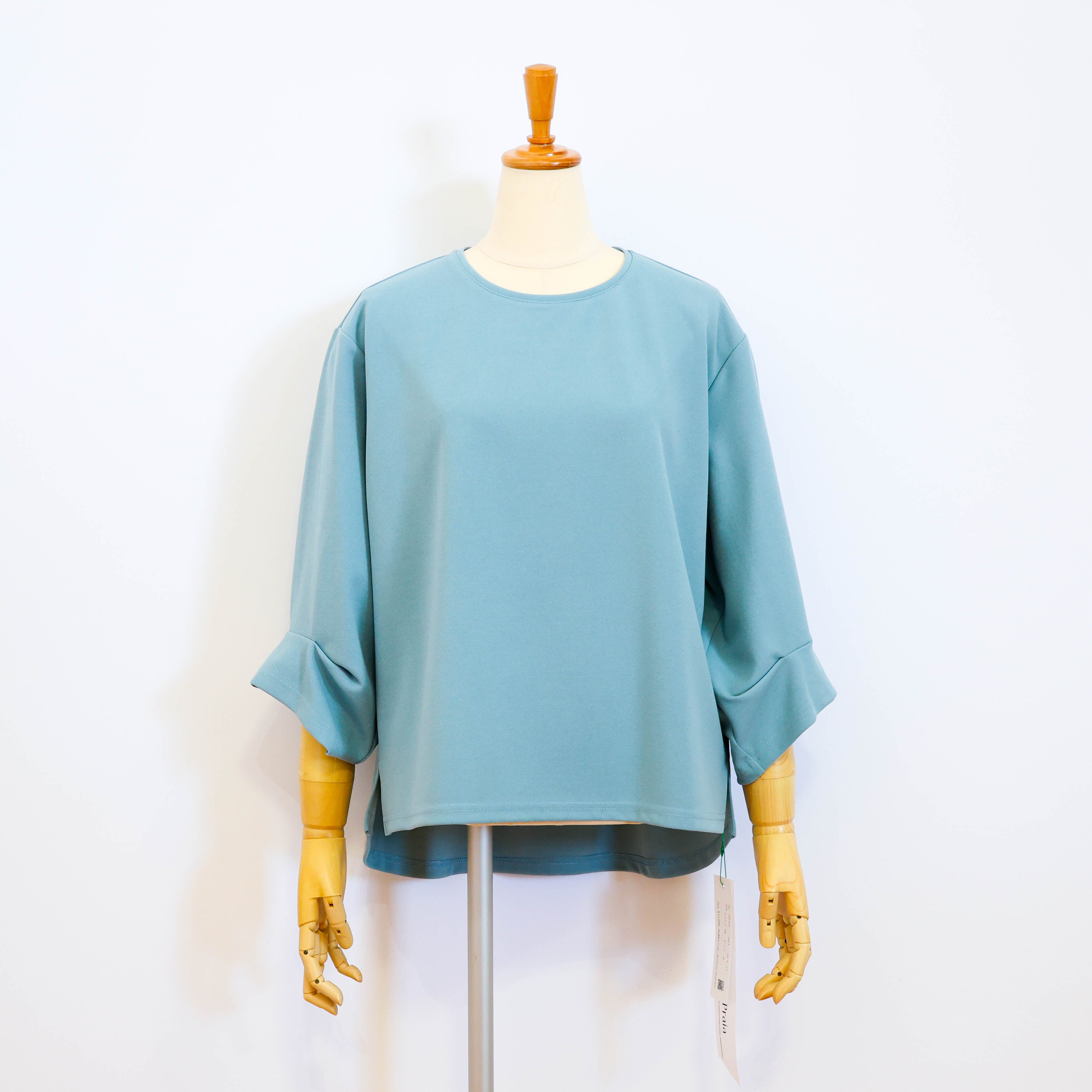 タックを入れることでポイントを持たせた七分袖で