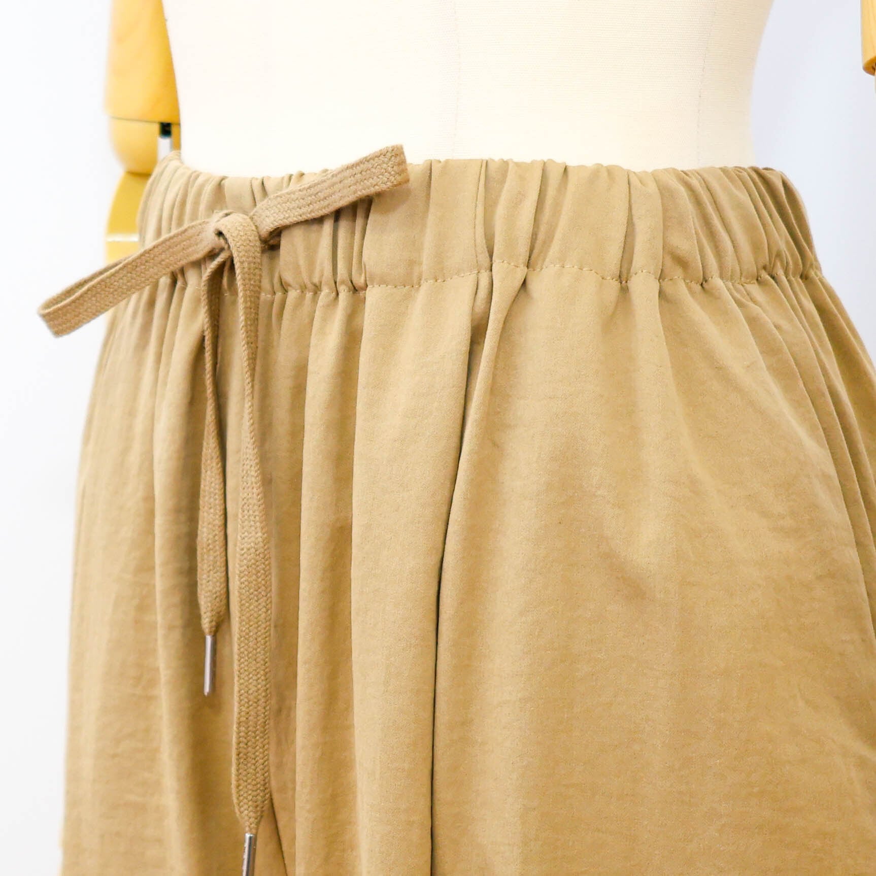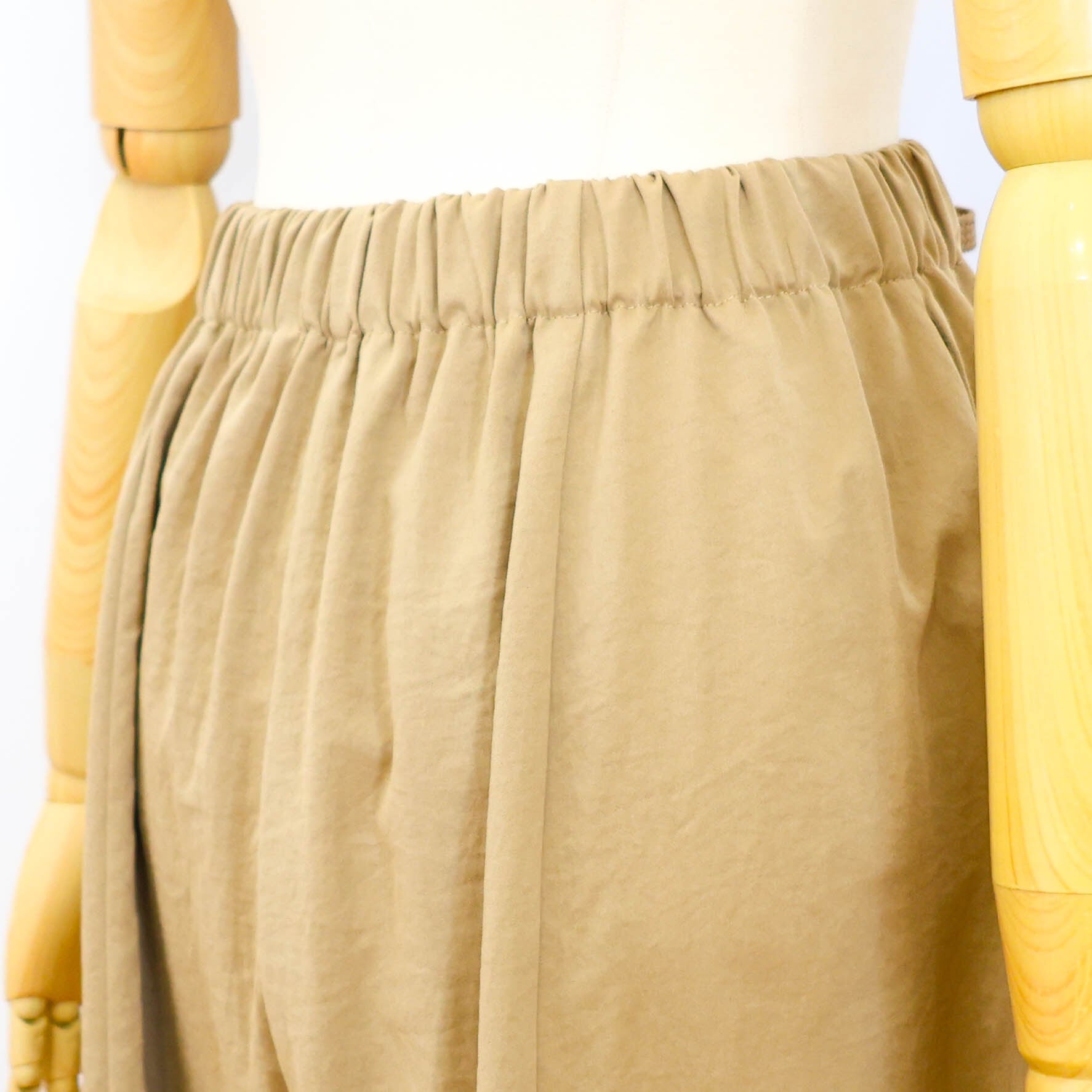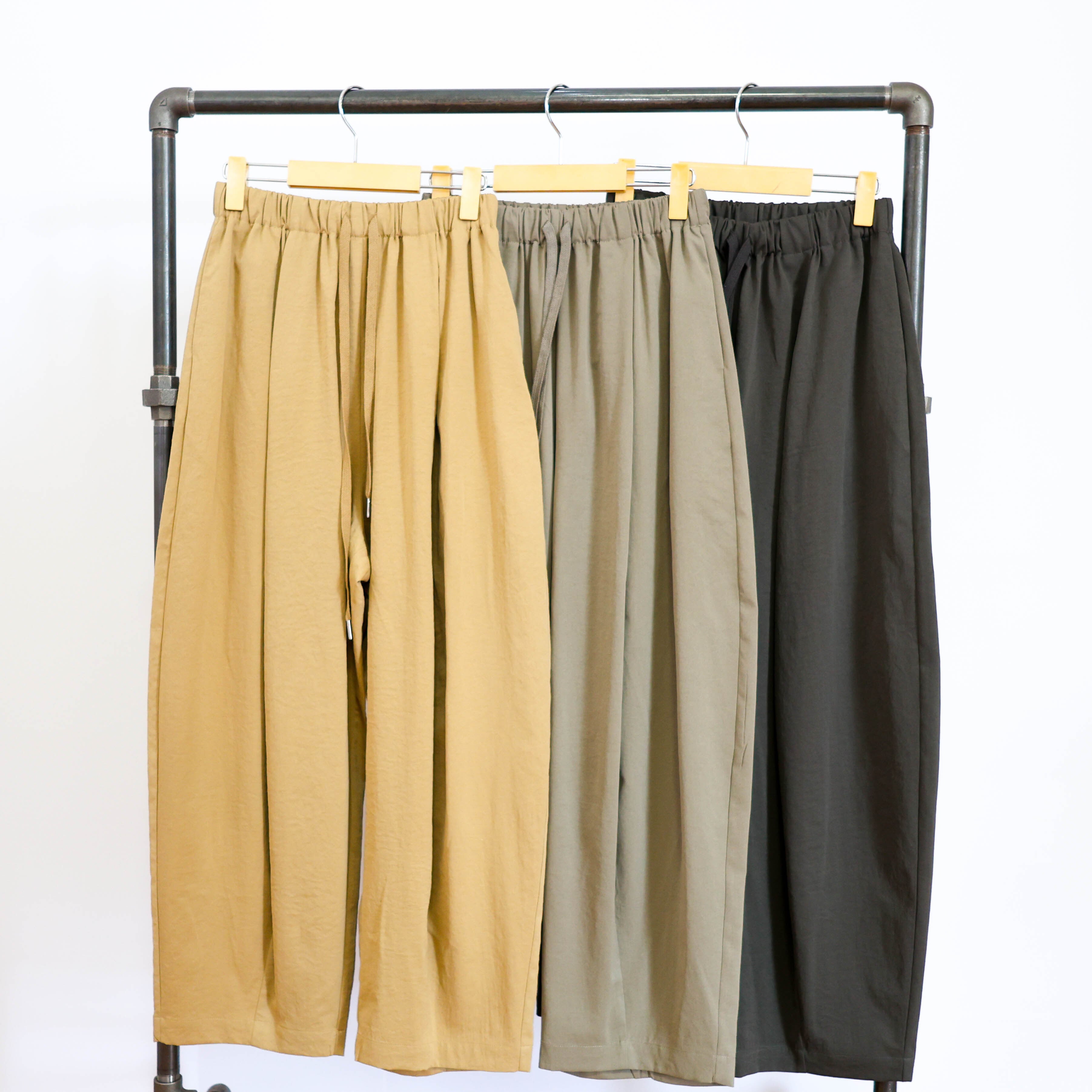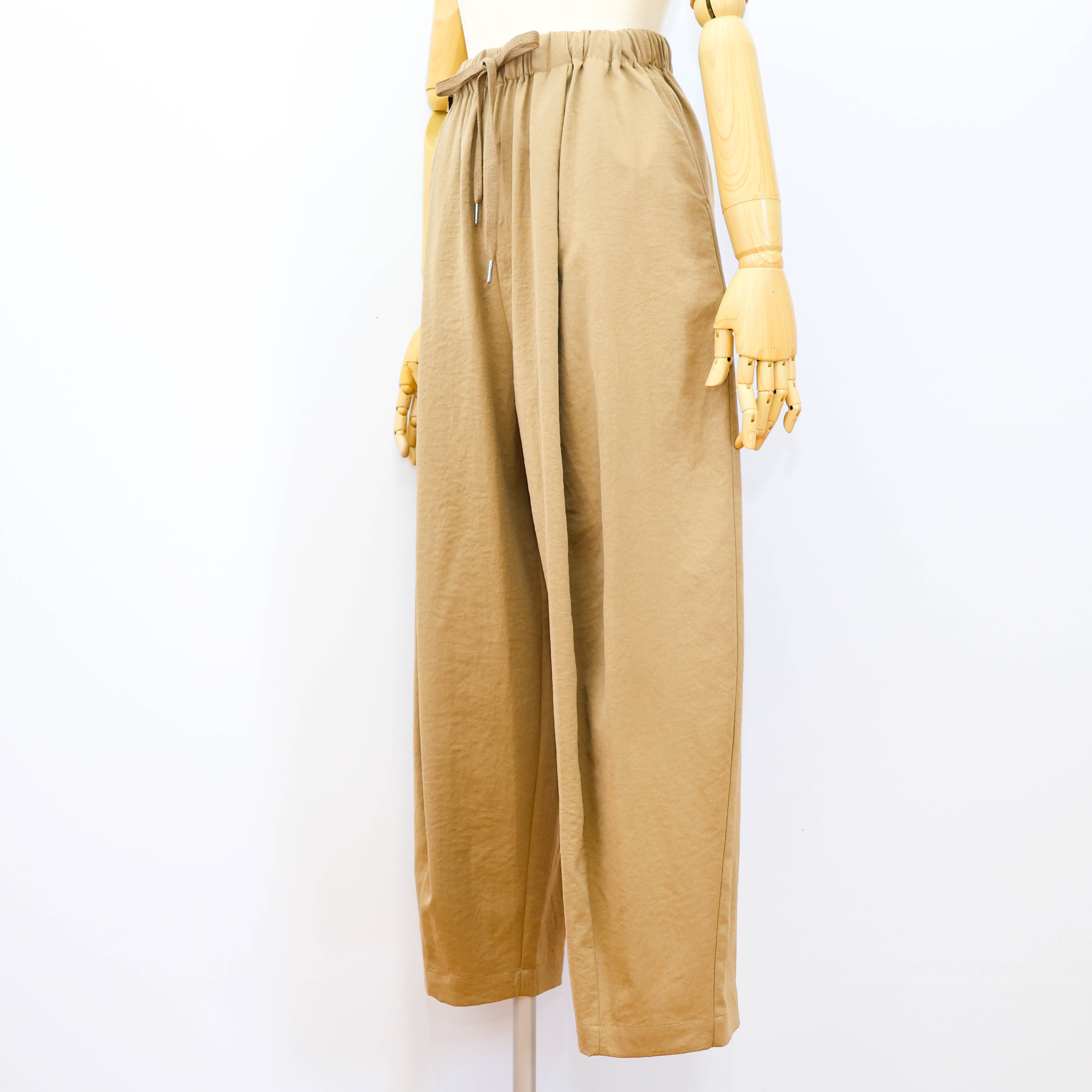 サラリとした薄手のポリエステル素材で、ワイドシルエットの
