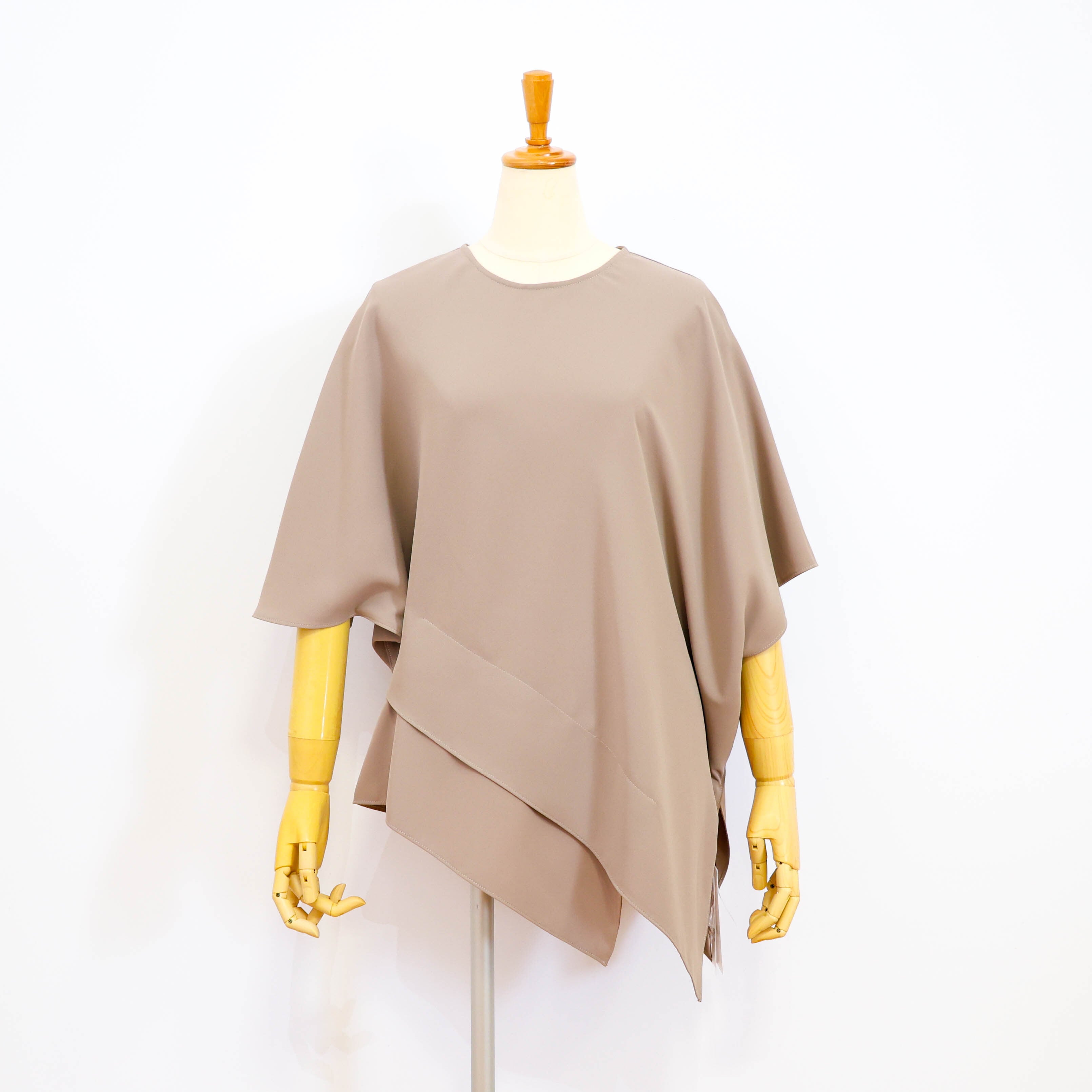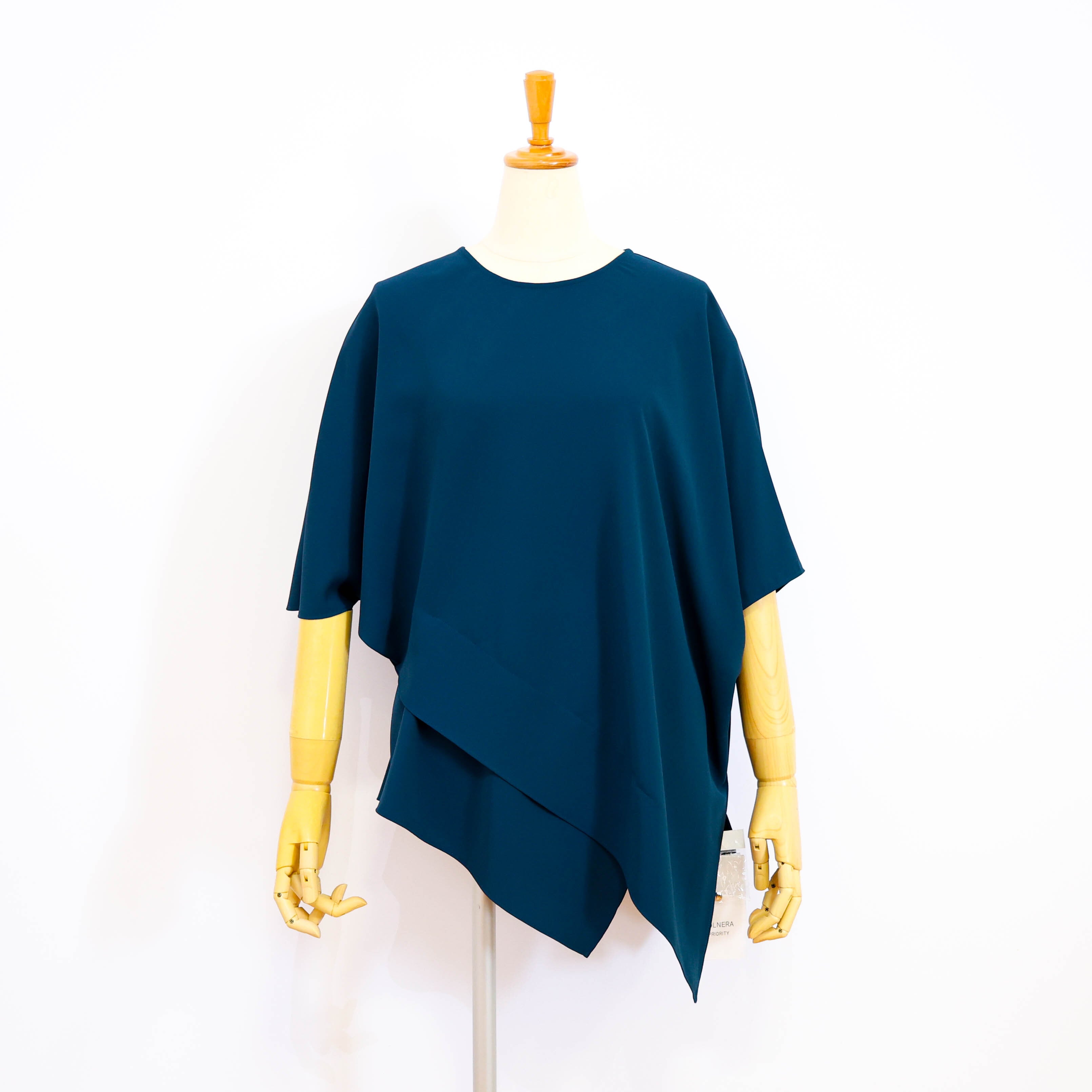 キレイ目テイストのアシンメトリー五分袖カットソーです。