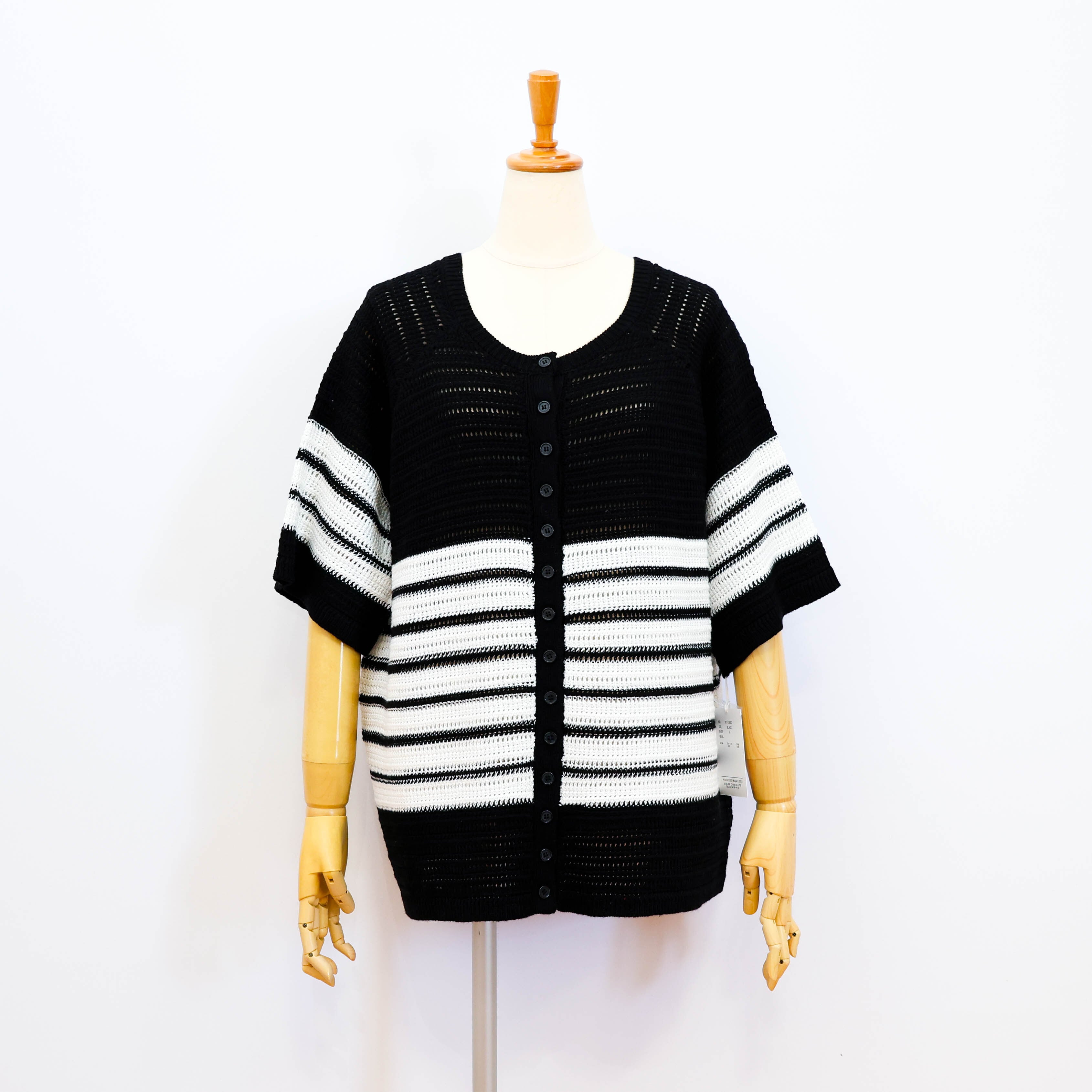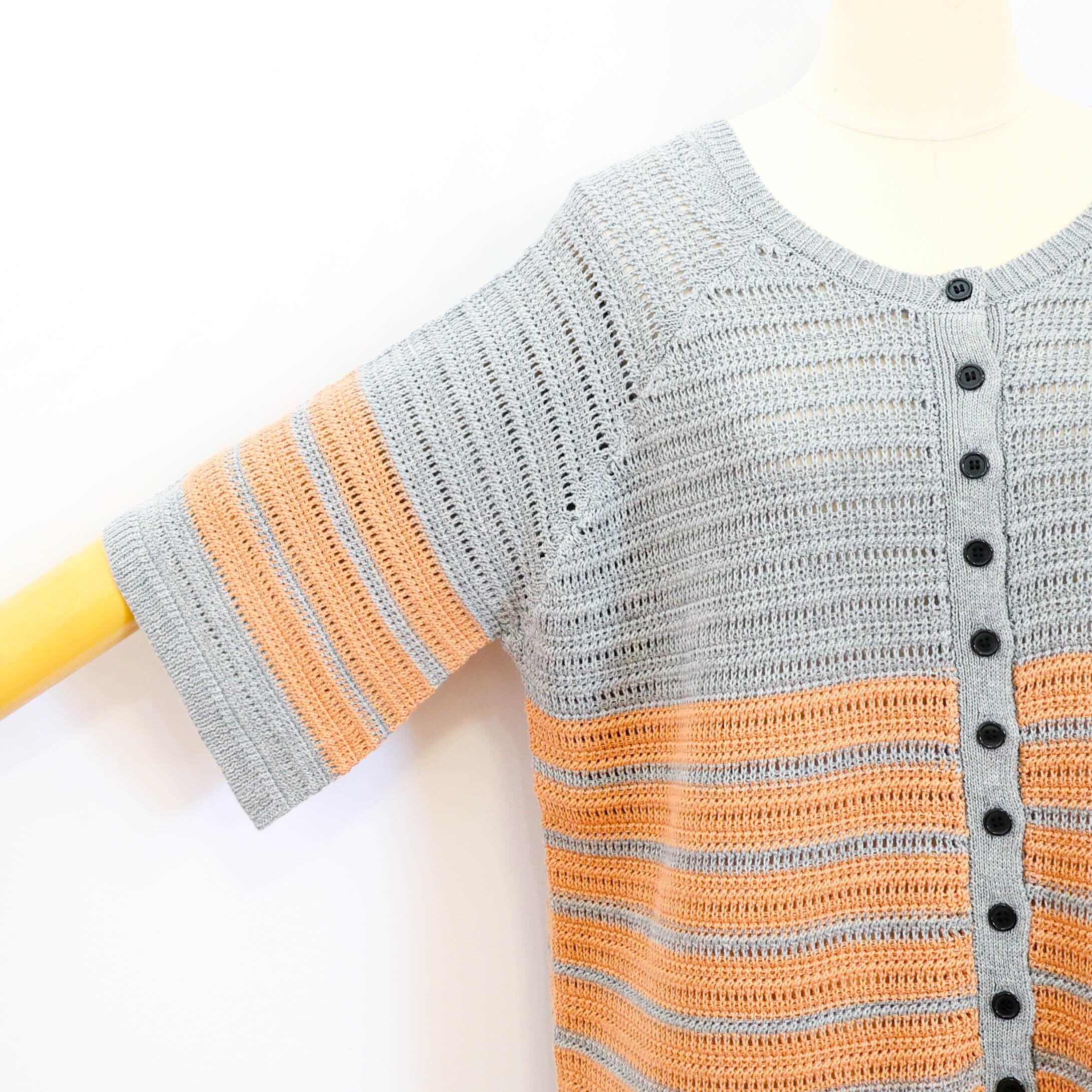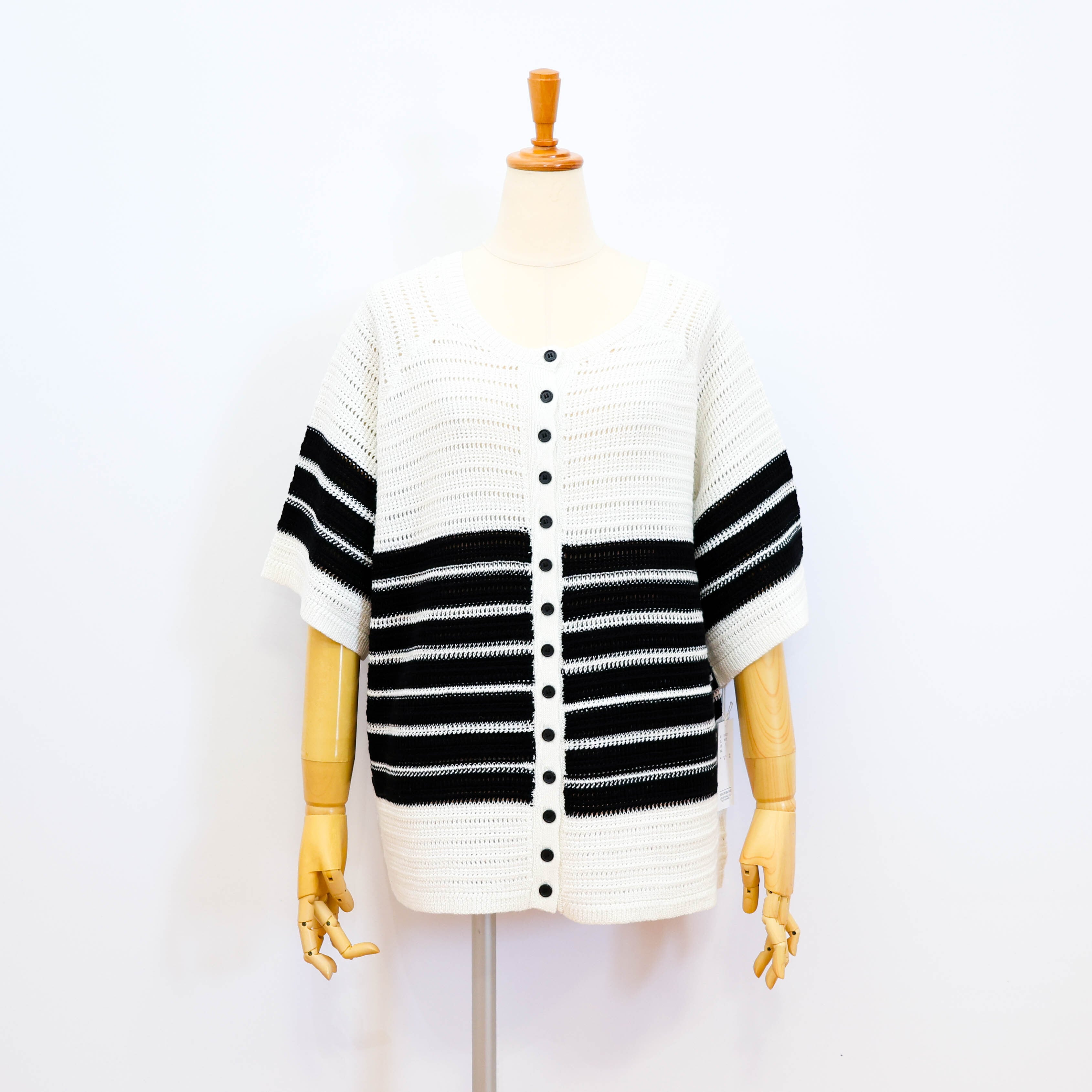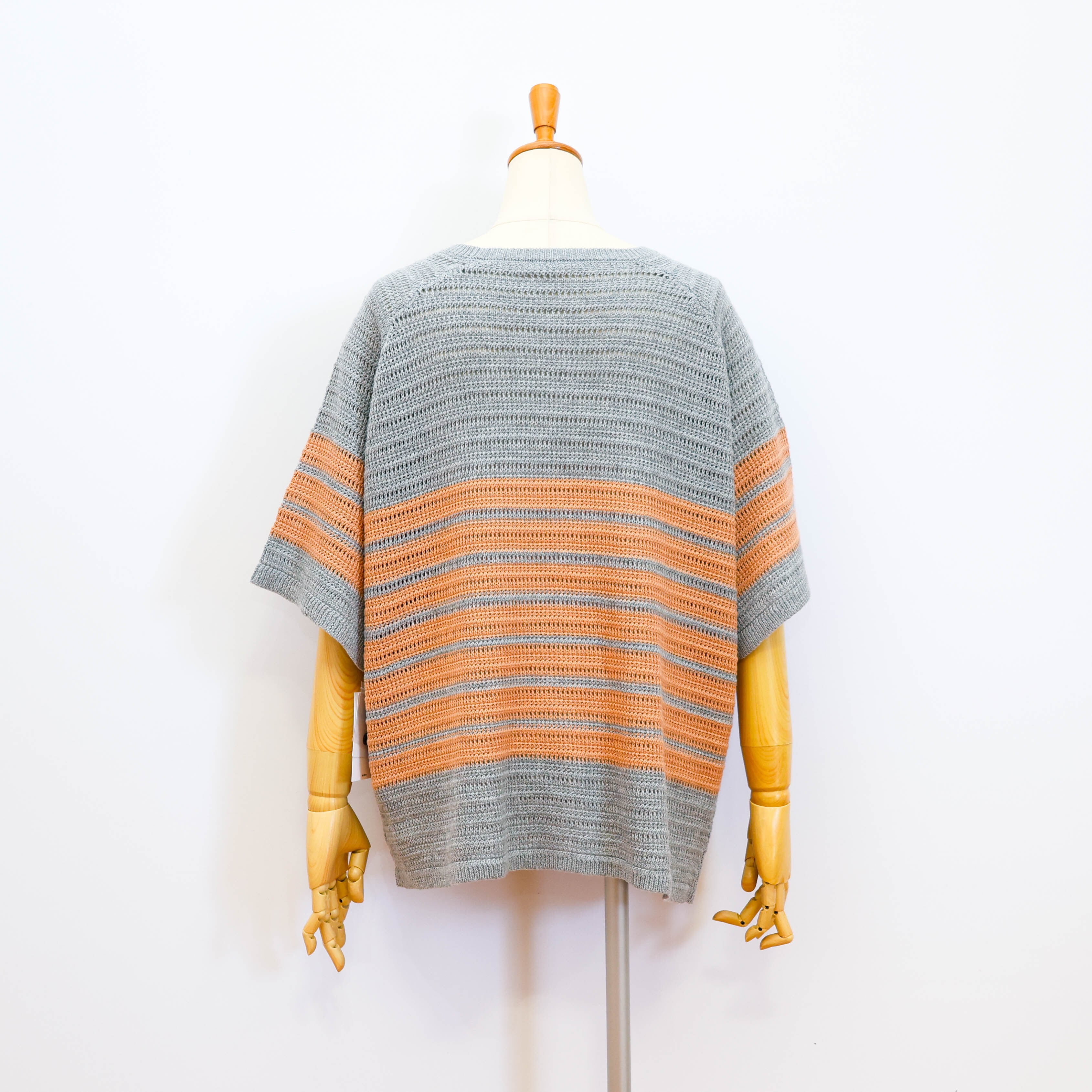 清涼感のある透かし編みニットのボーダー柄