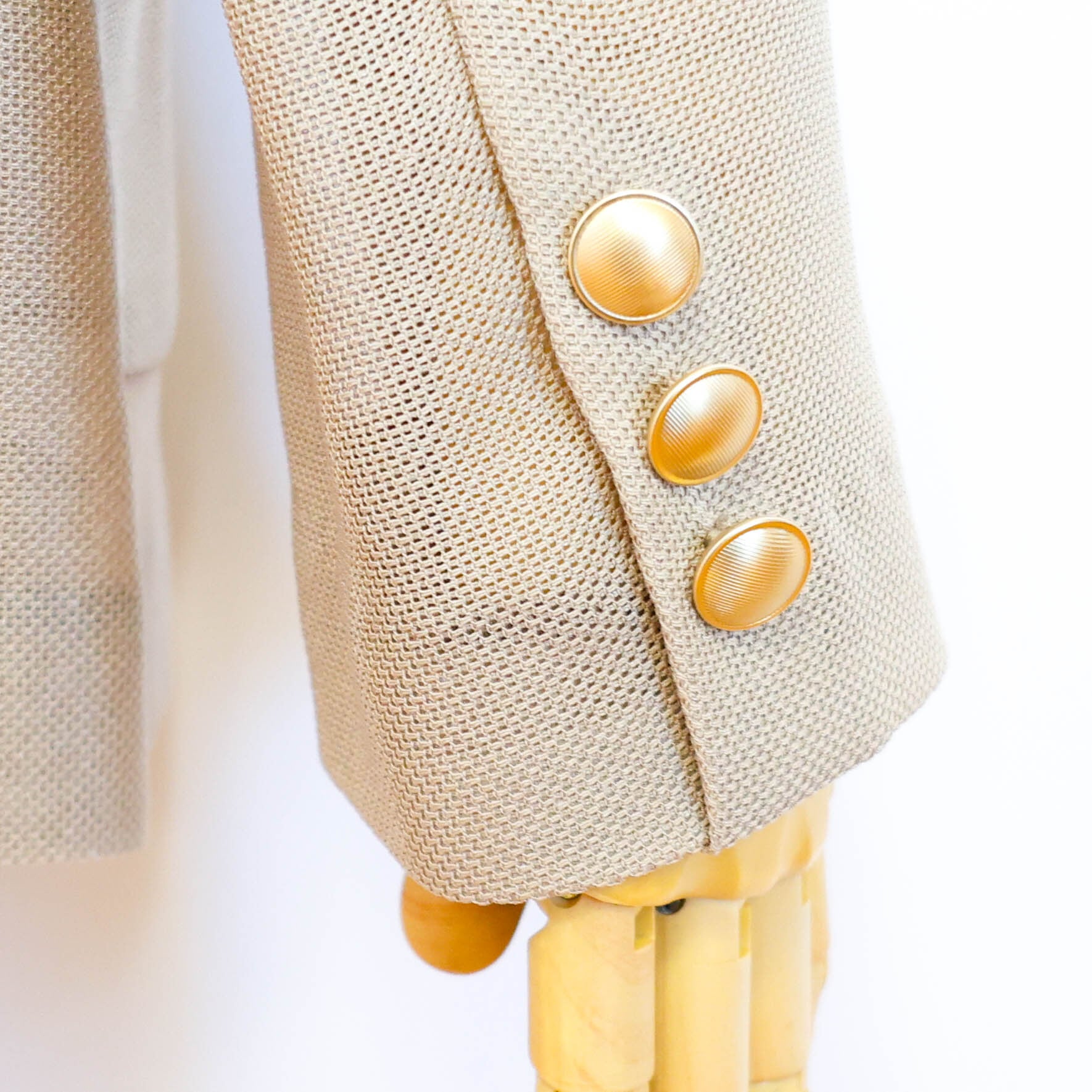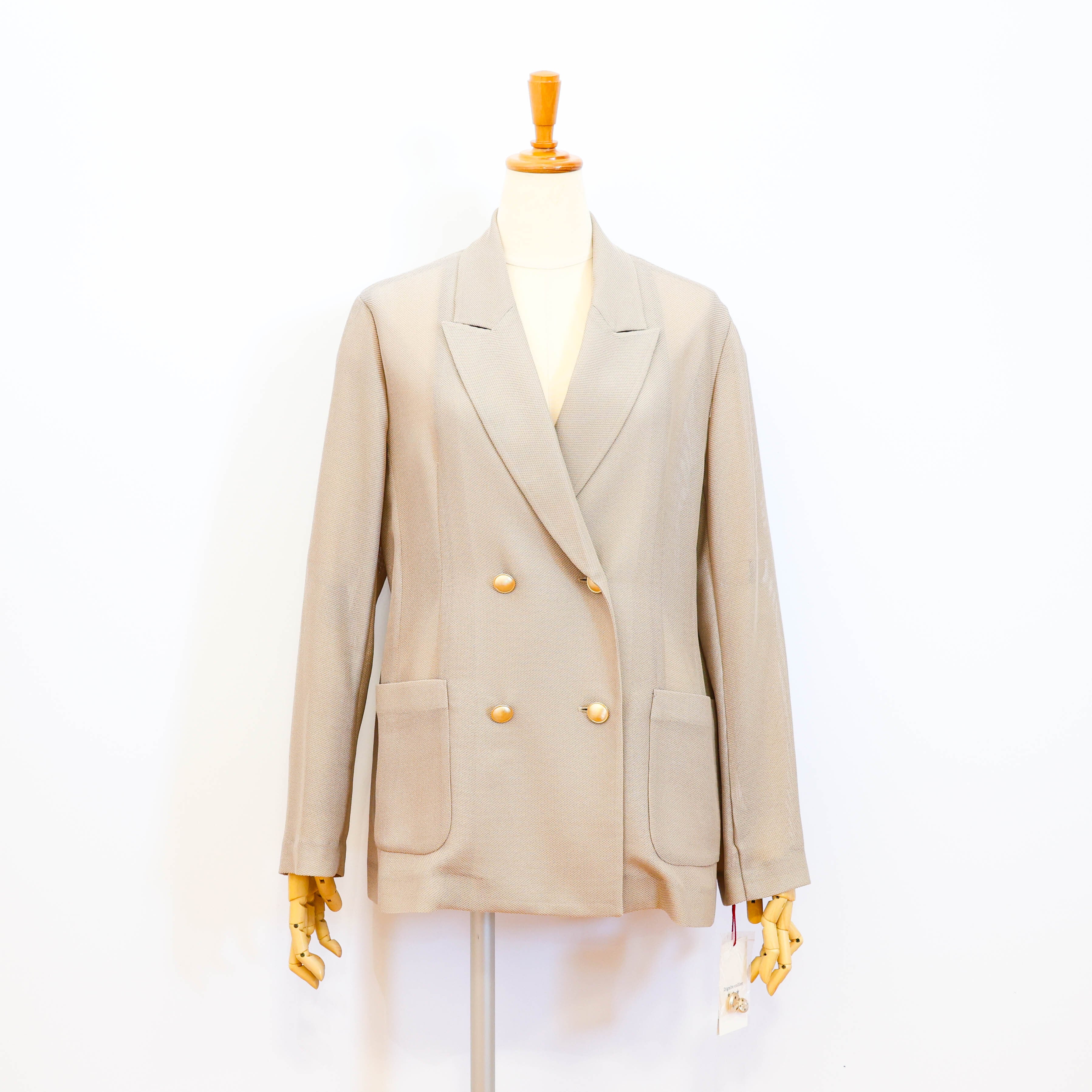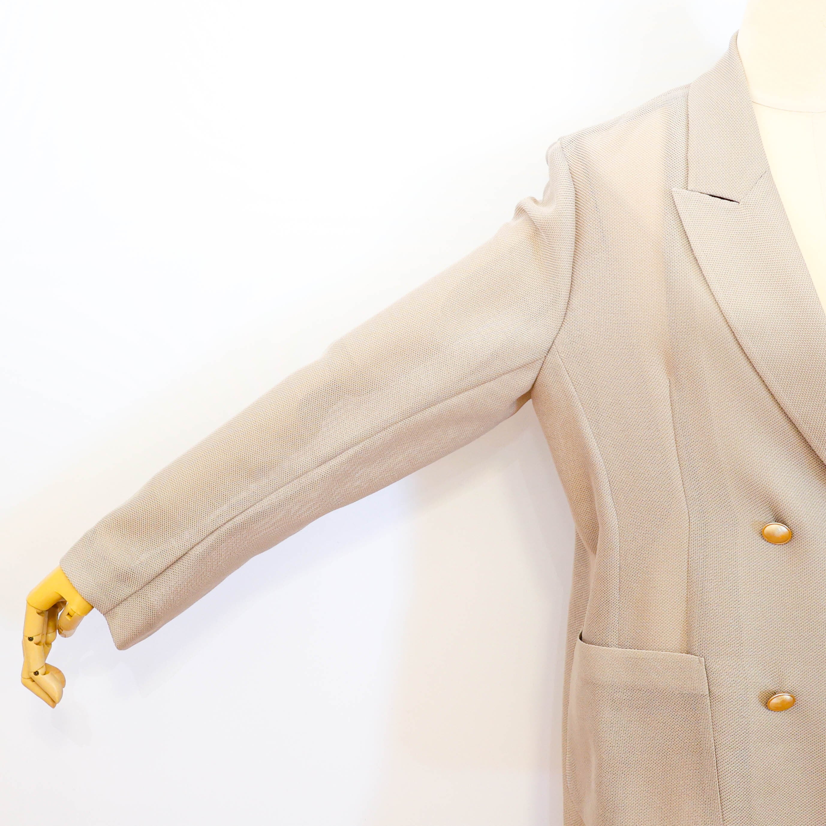 大ぶりの金ボタンが特徴的なダブルブレストの