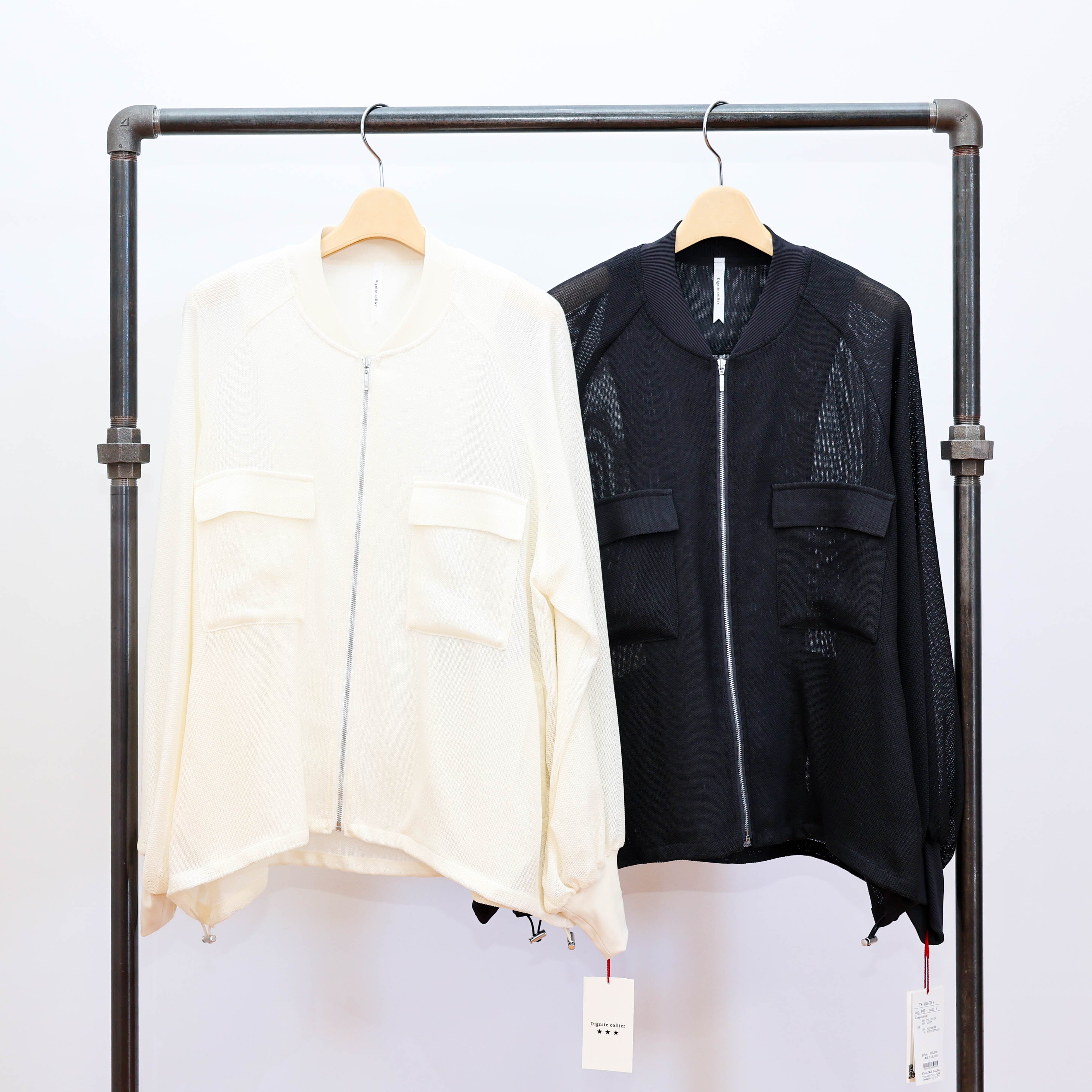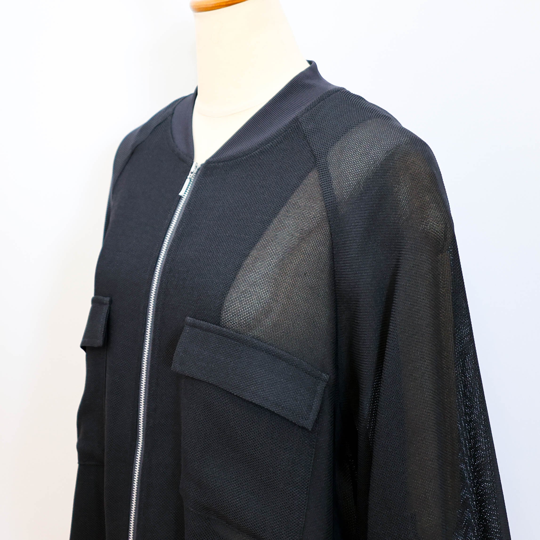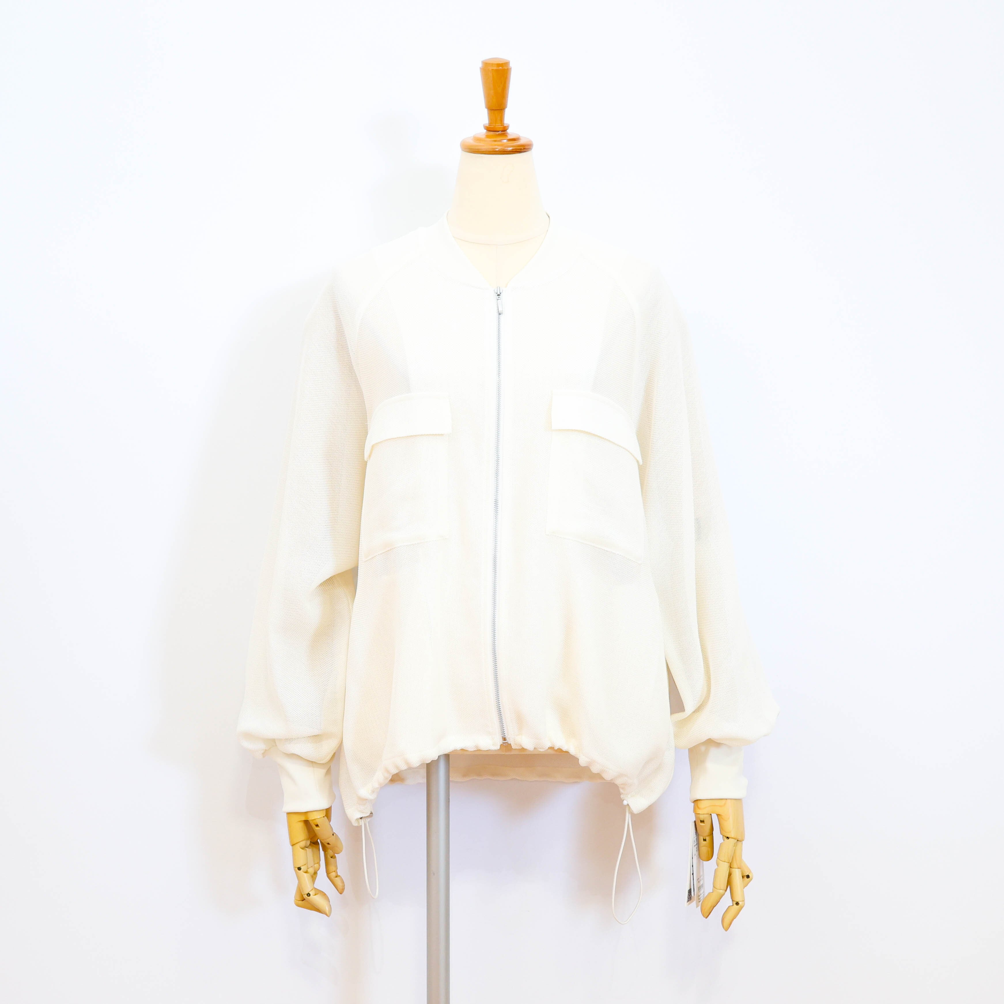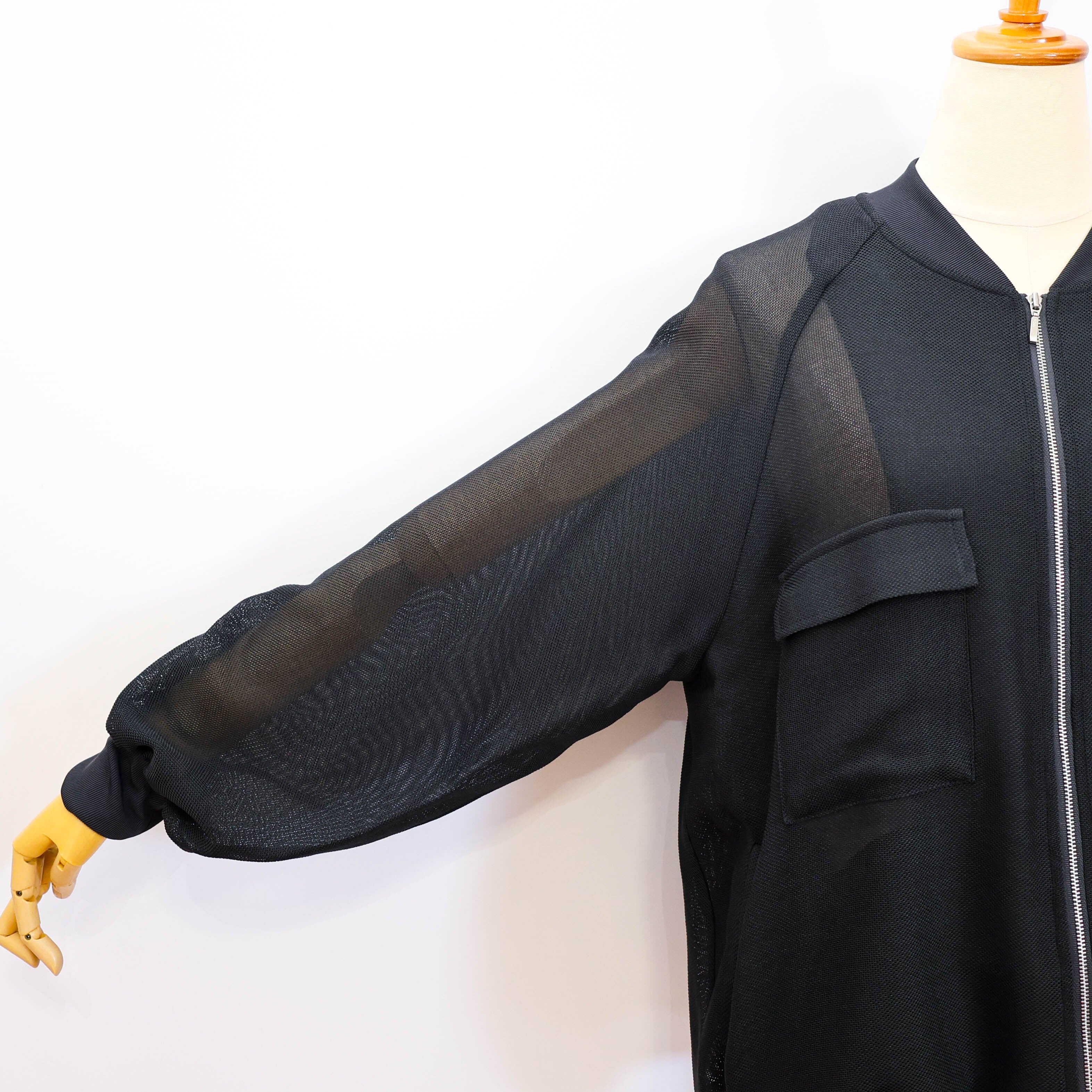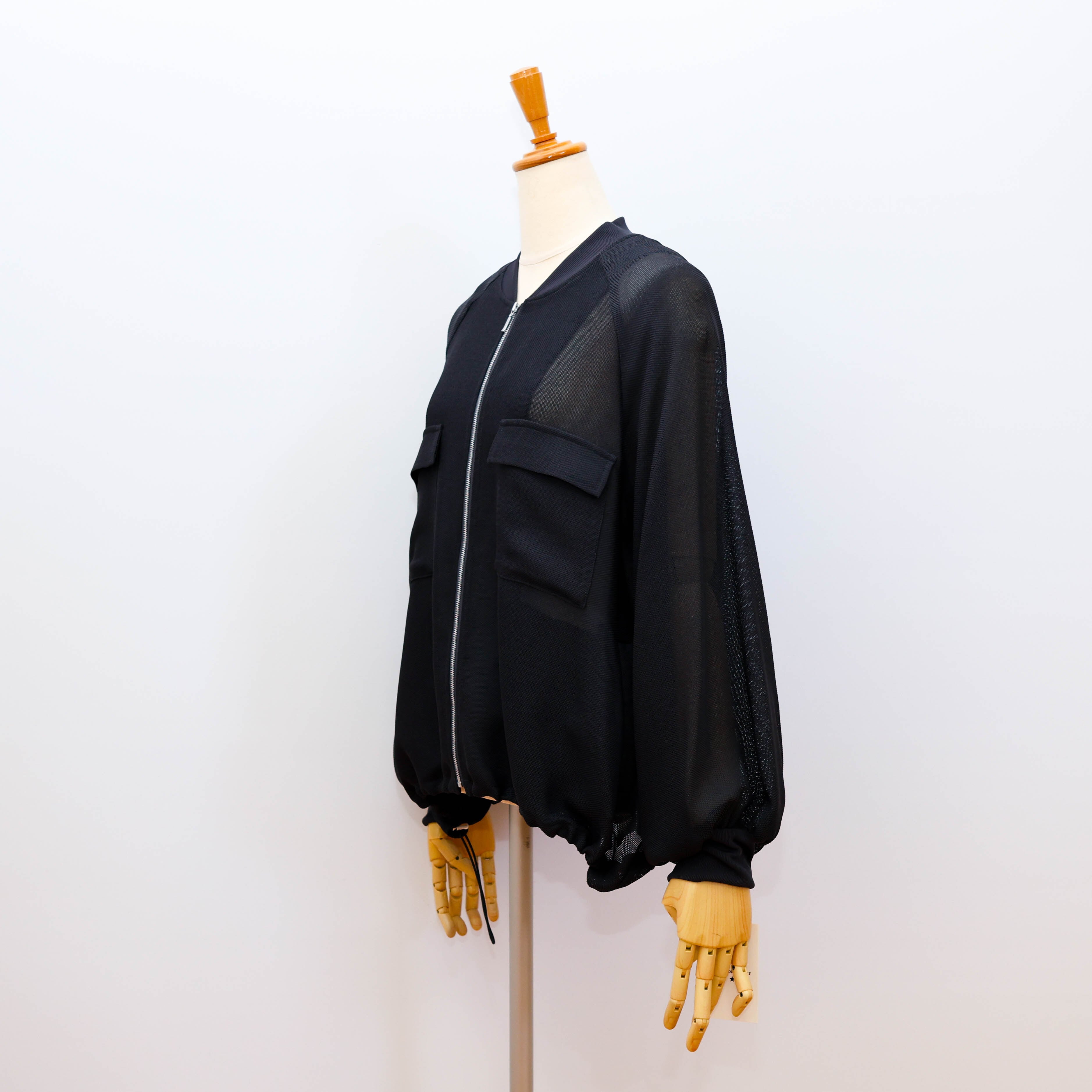 シアー素材でラグランスリーブのジップアップブルゾンです。