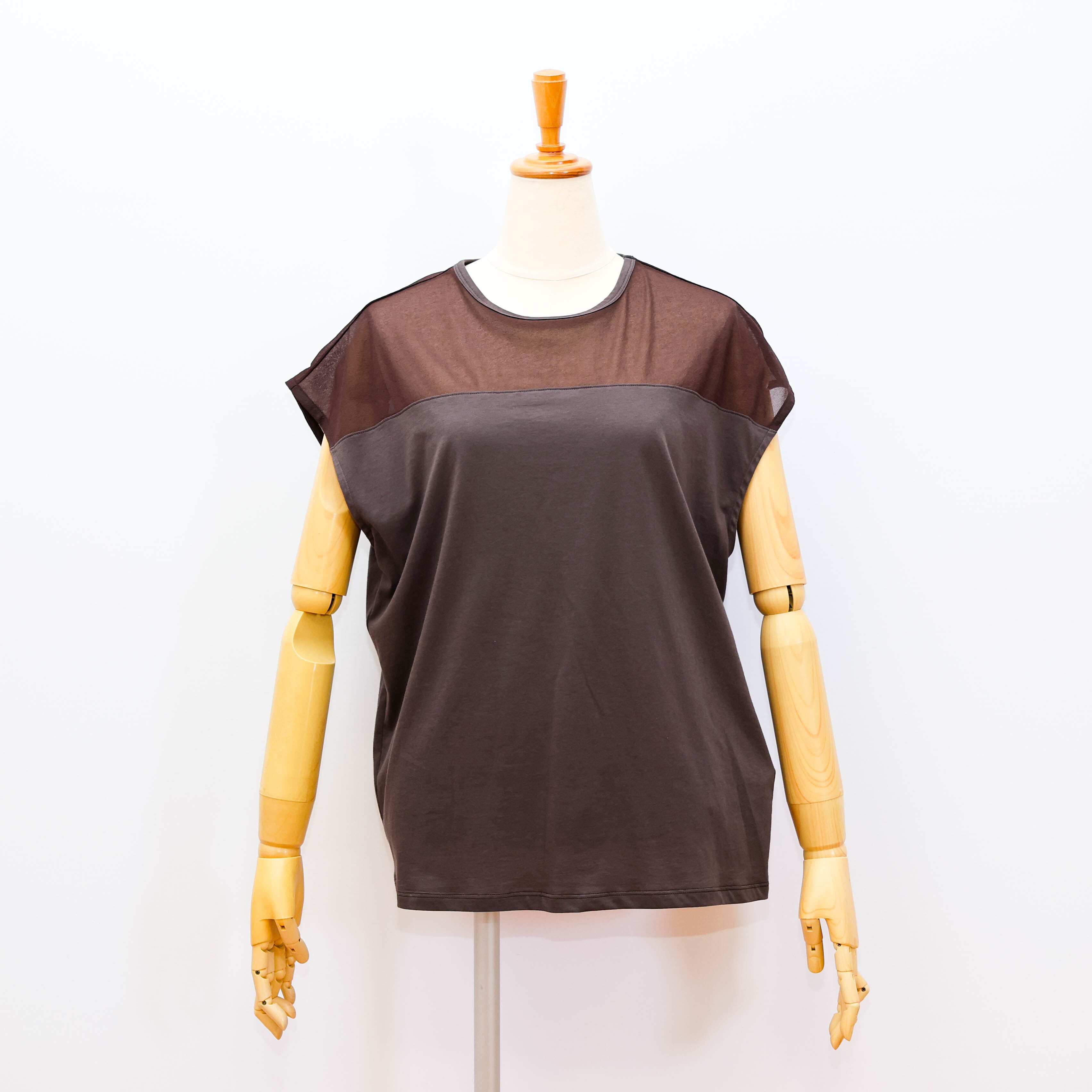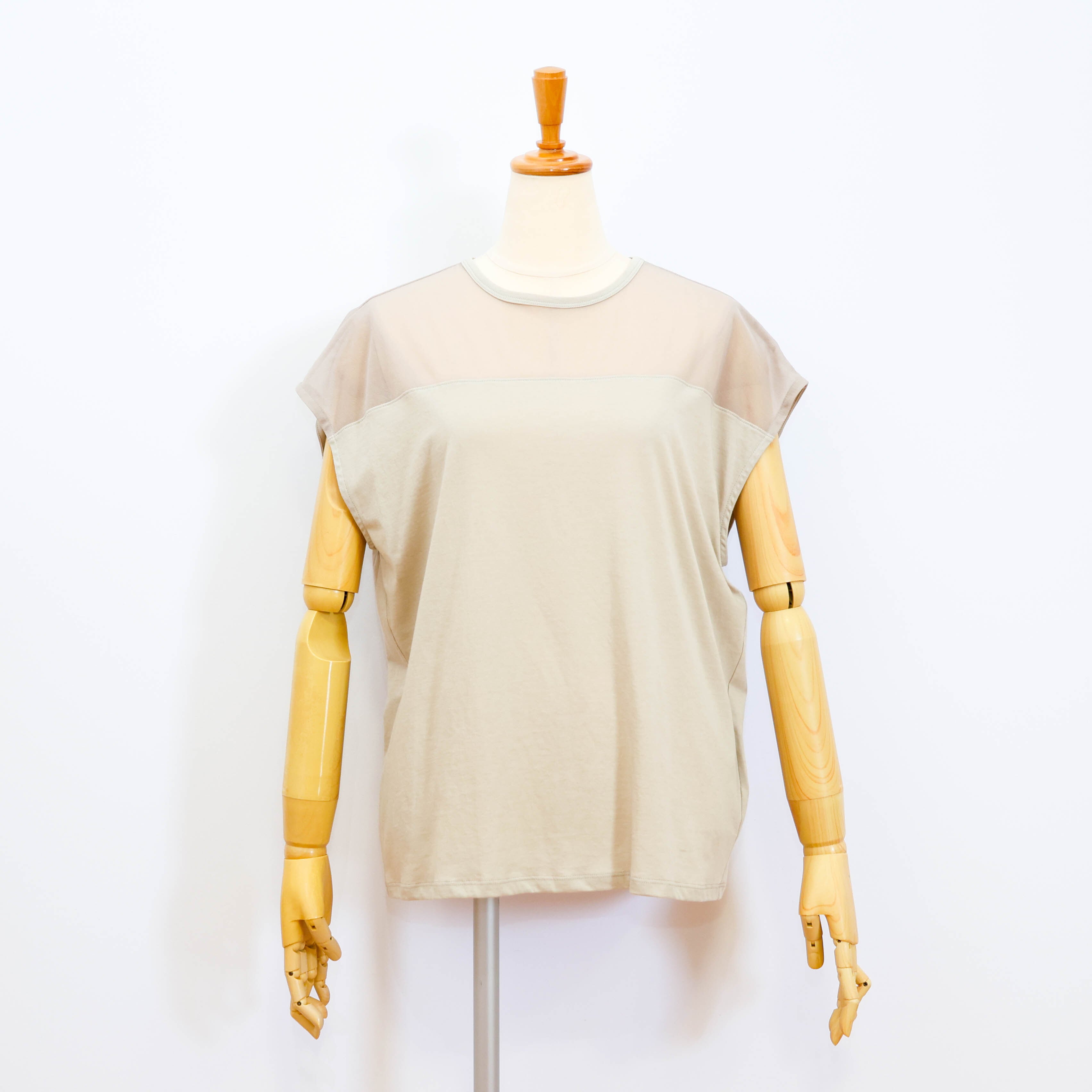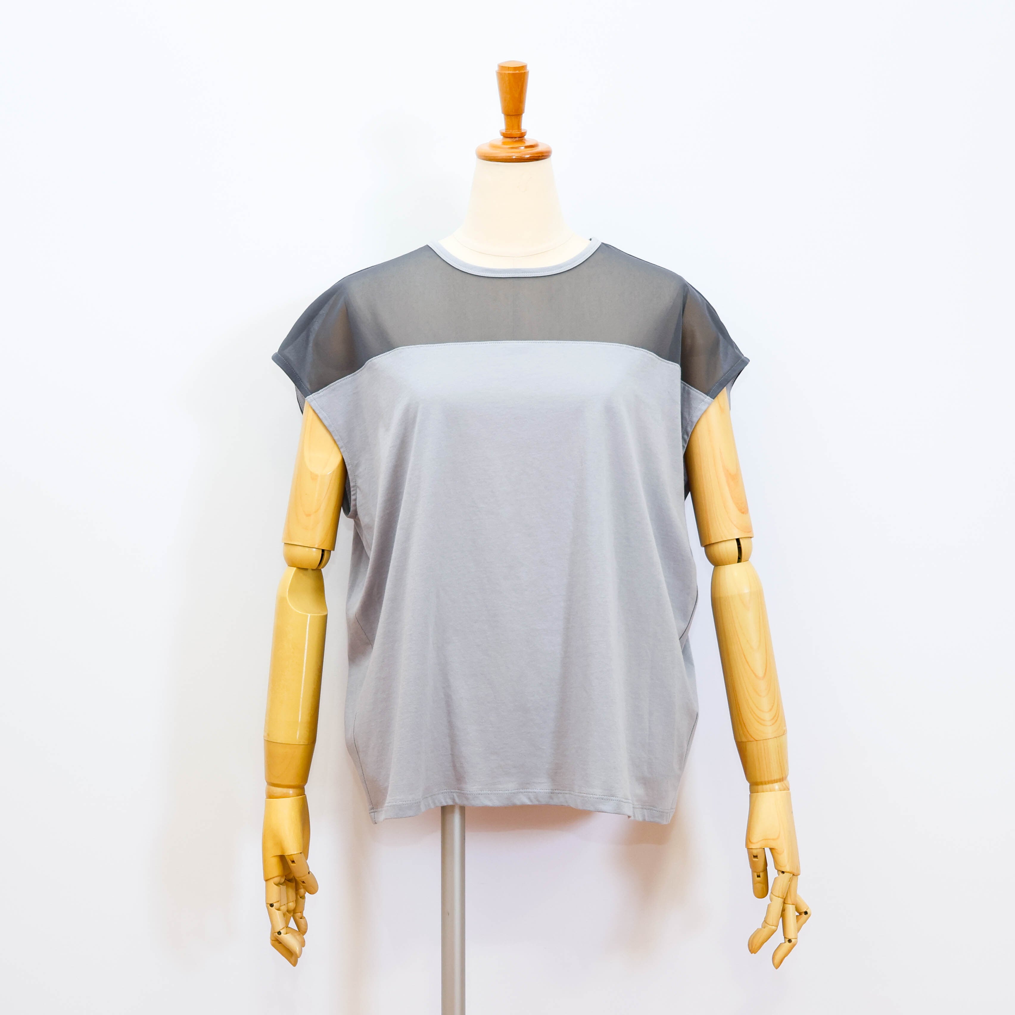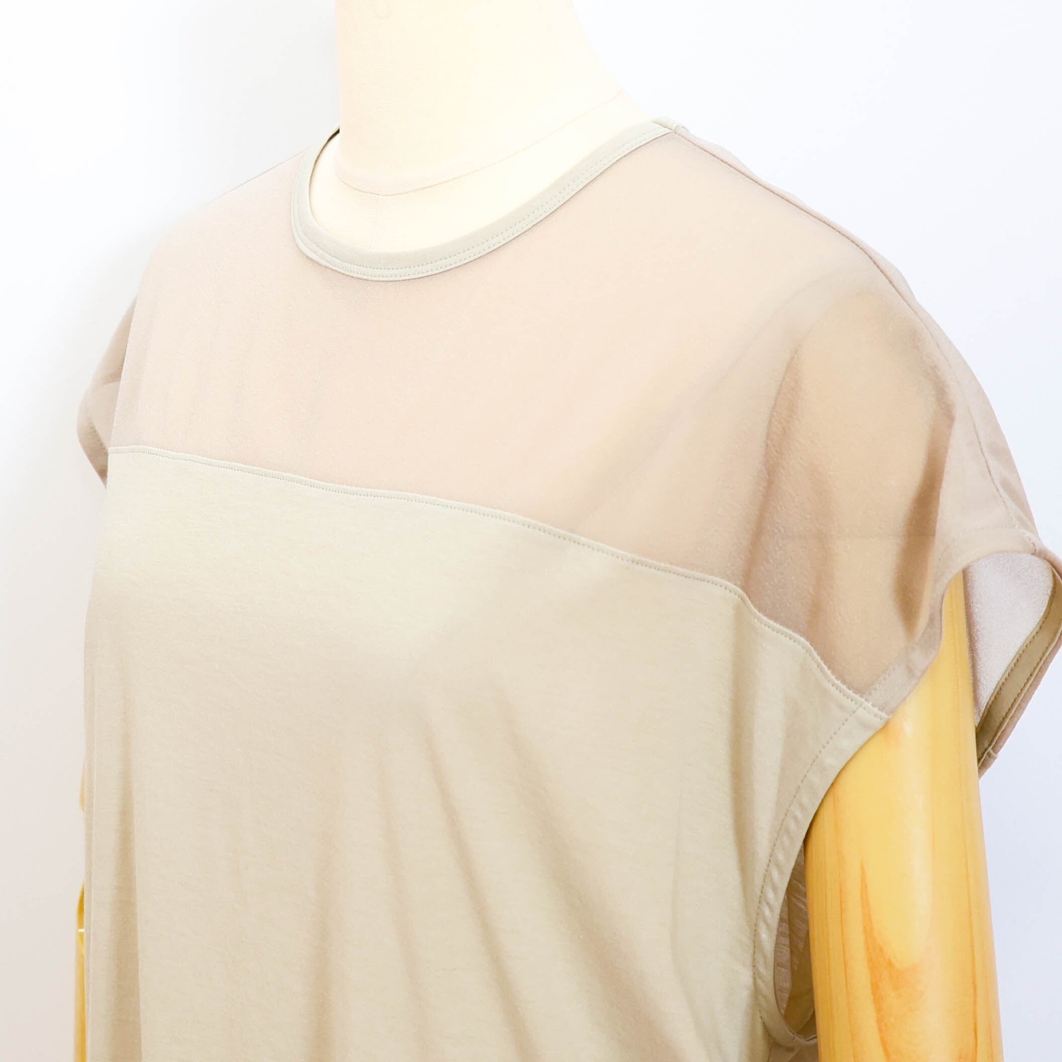 デコルテ部分がポリエステルのシアー素材になっていて