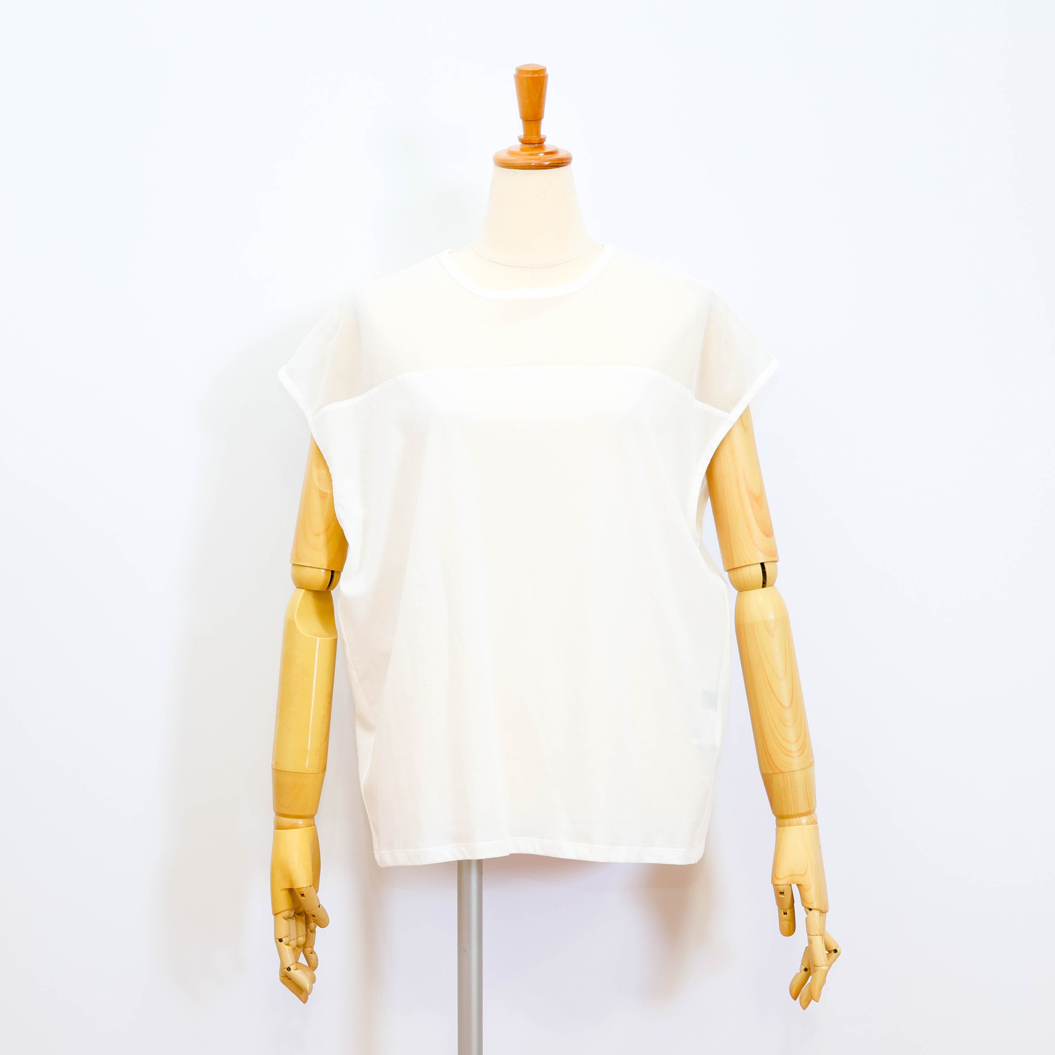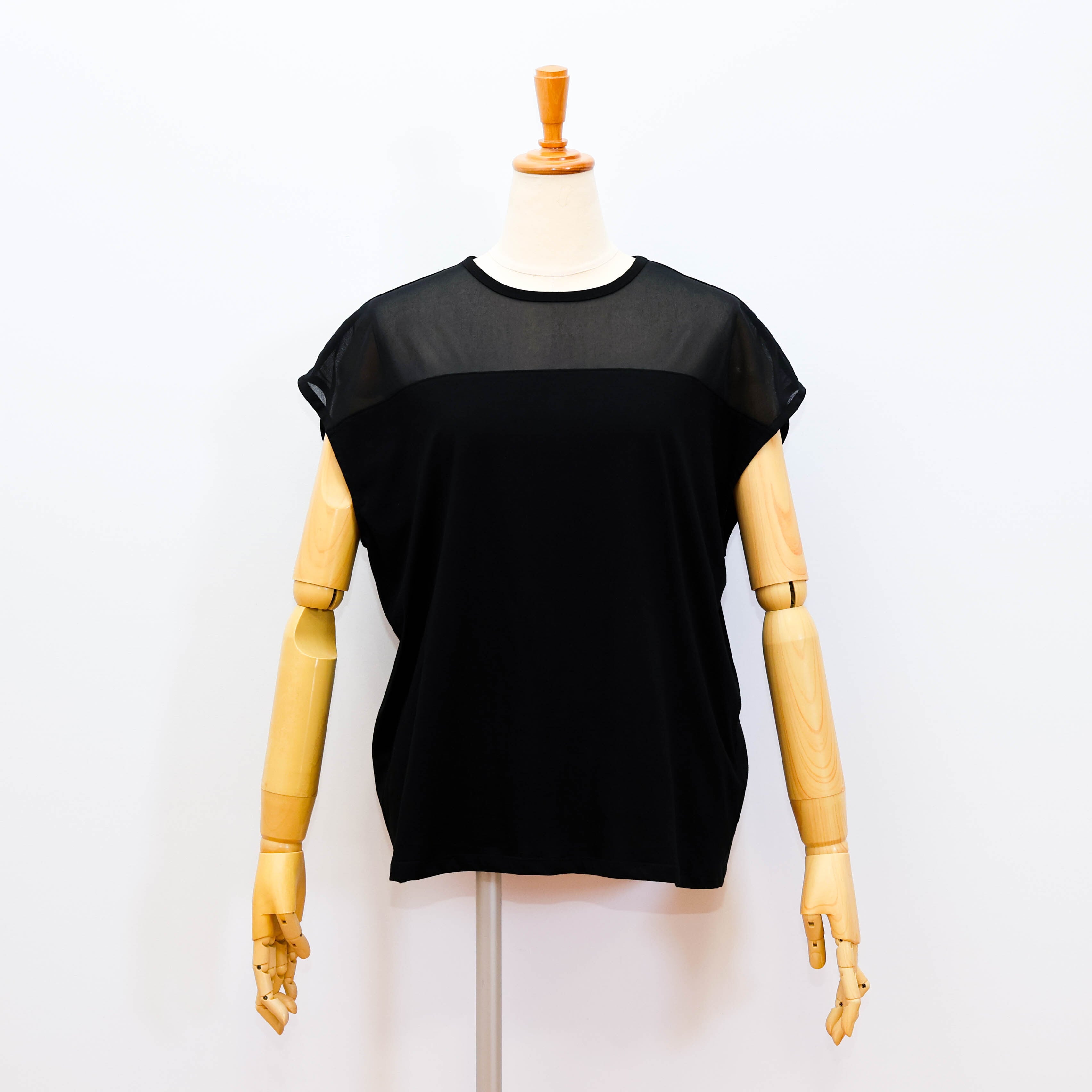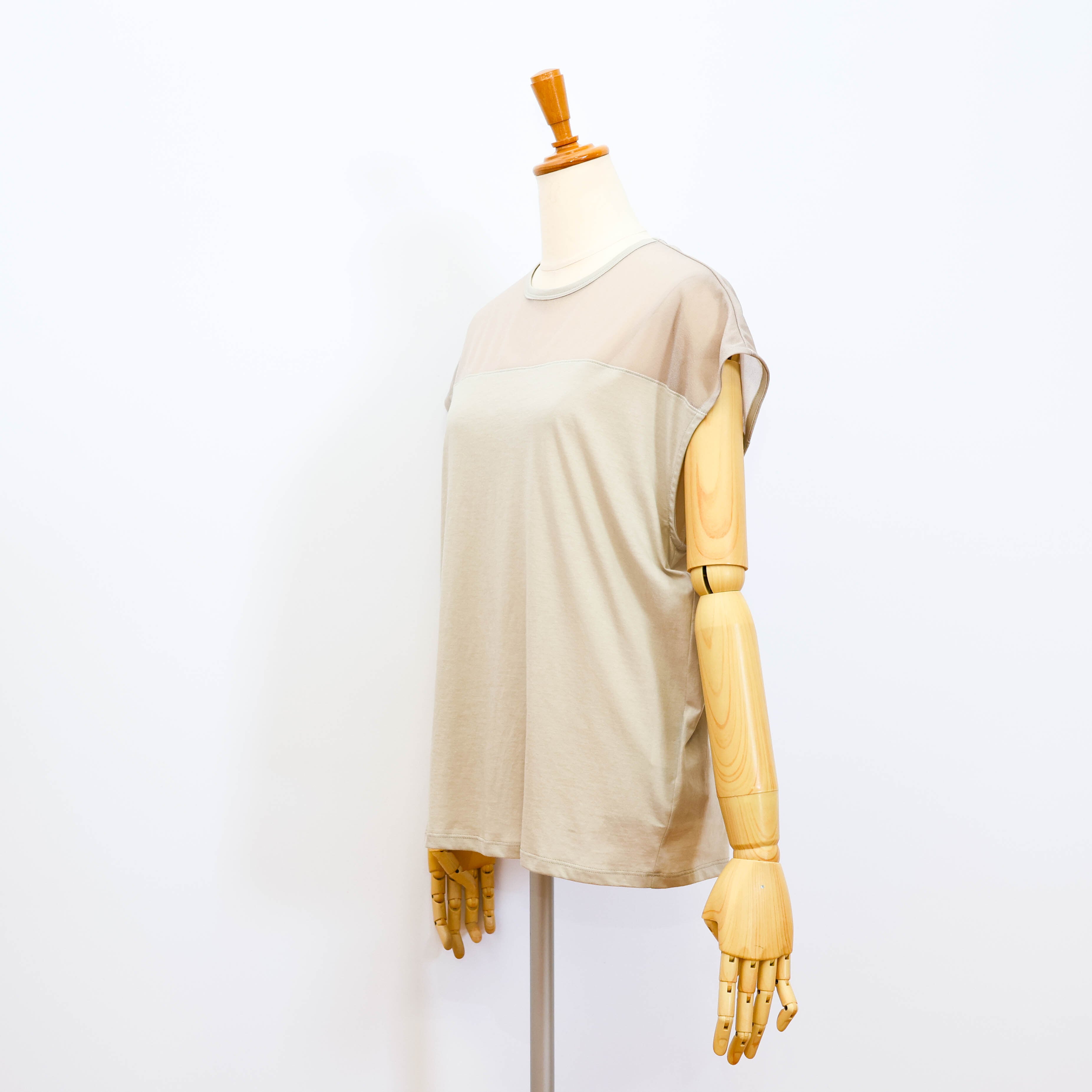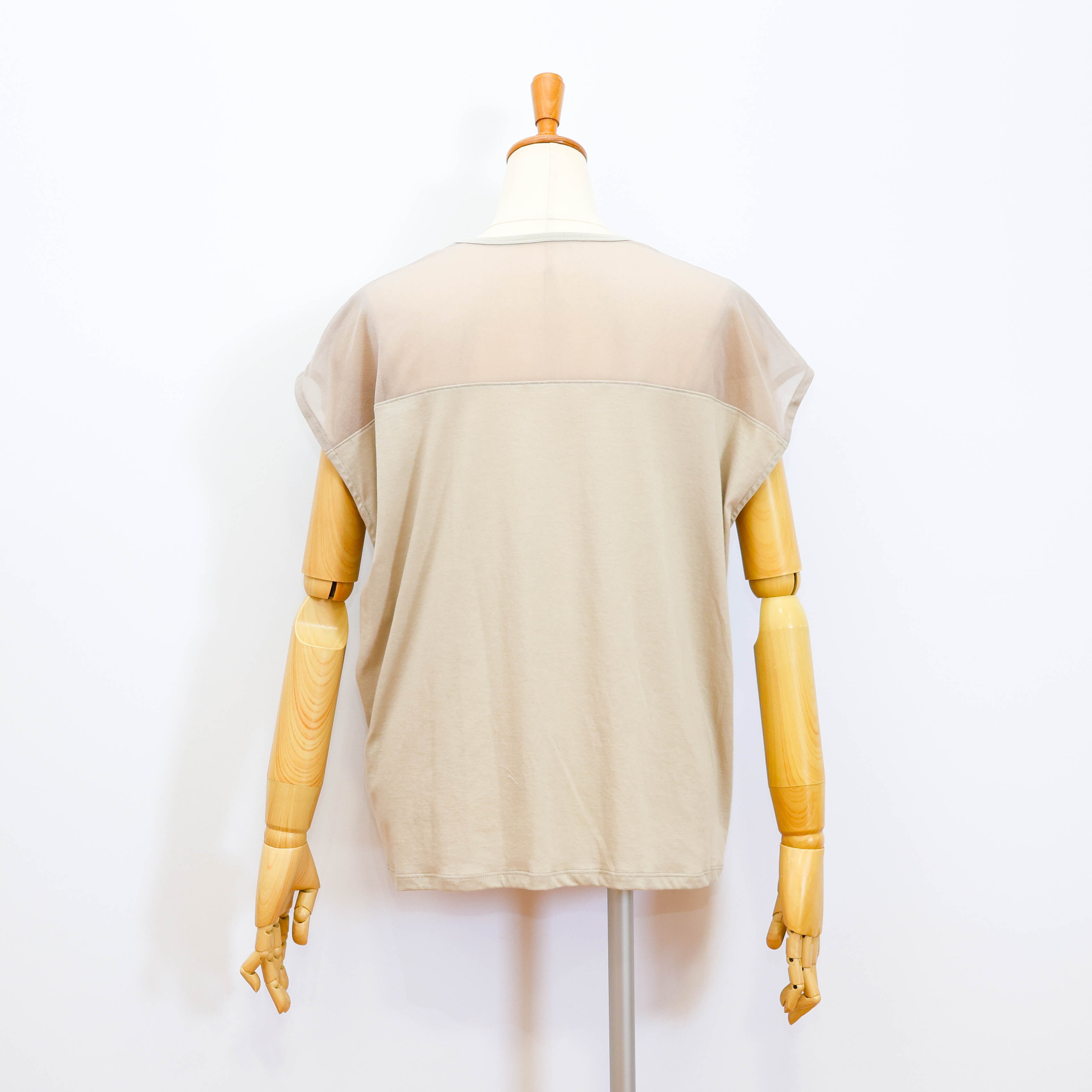 デコルテ部分がポリエステルのシアー素材になっていて