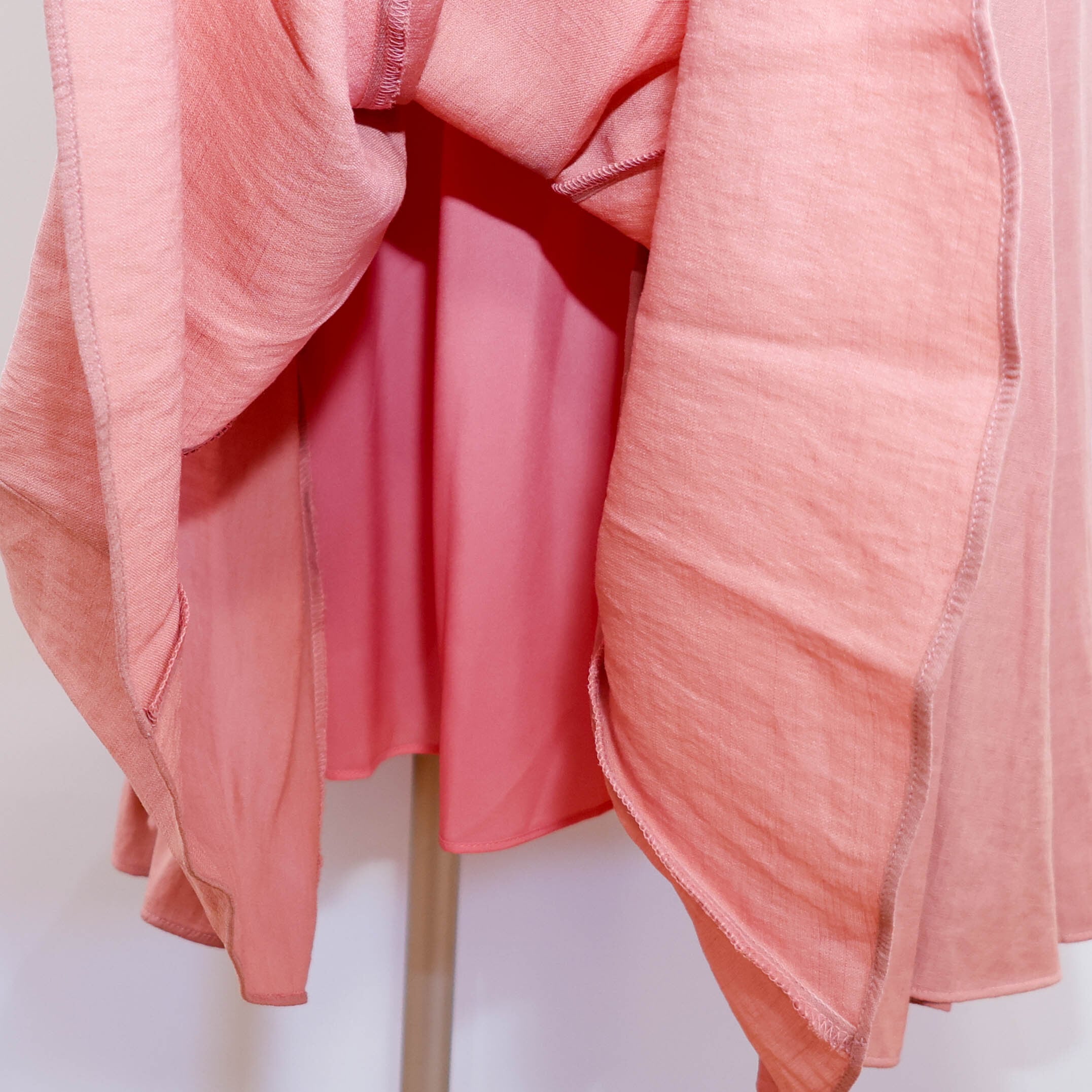 身頃の中ほどから裾に向けて独特の切り替えを施し