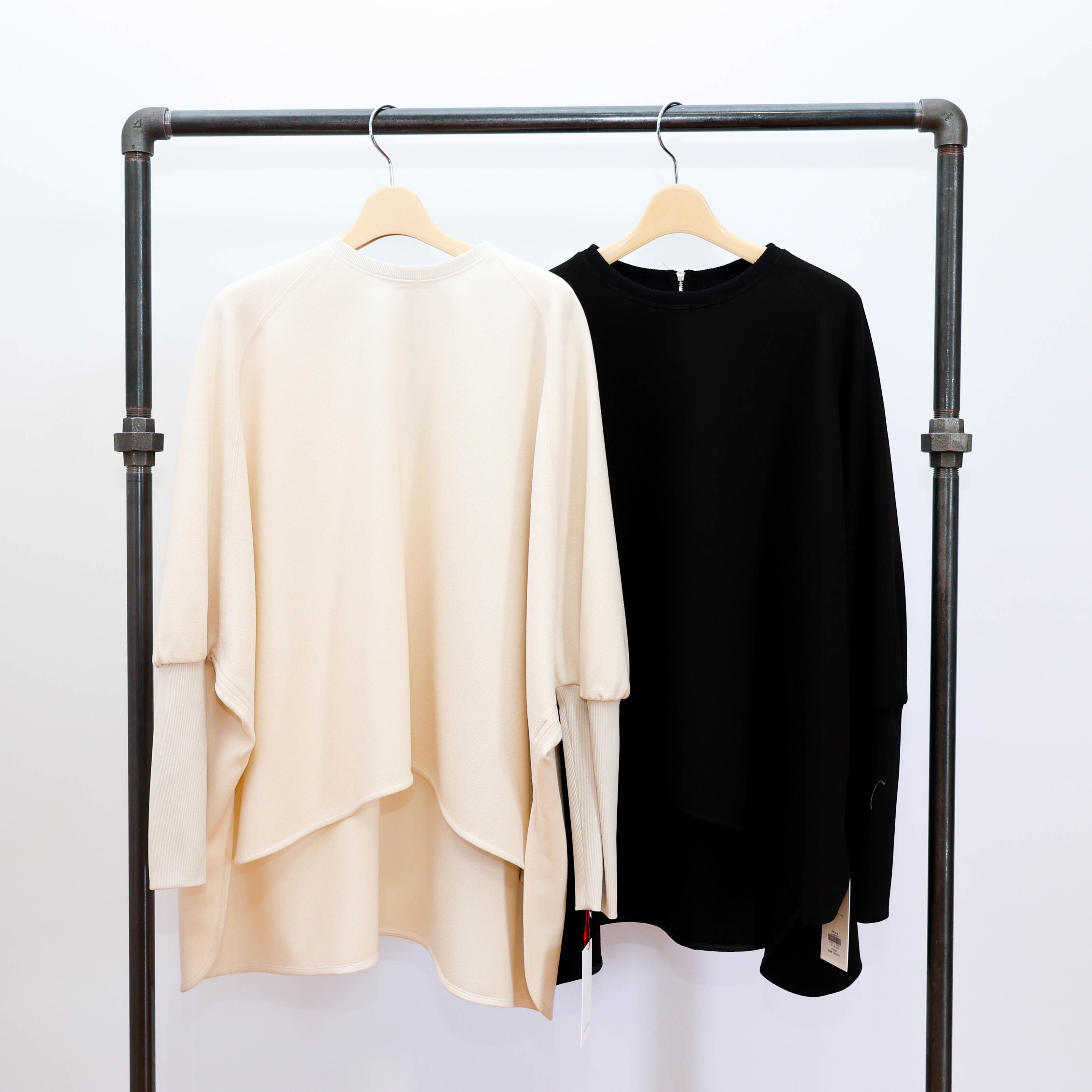 長めのリブ袖を少し持ち上げて抜け感演出することで