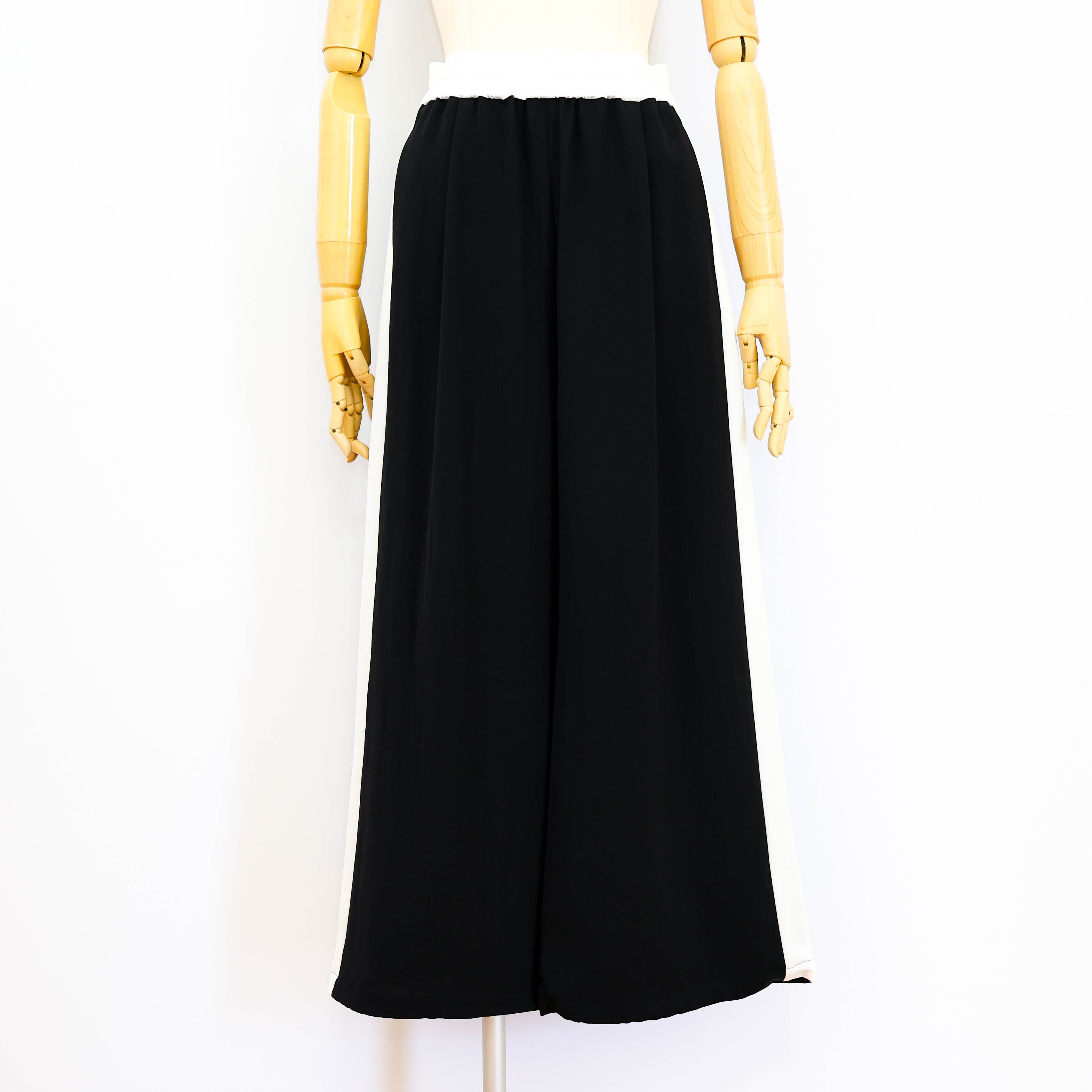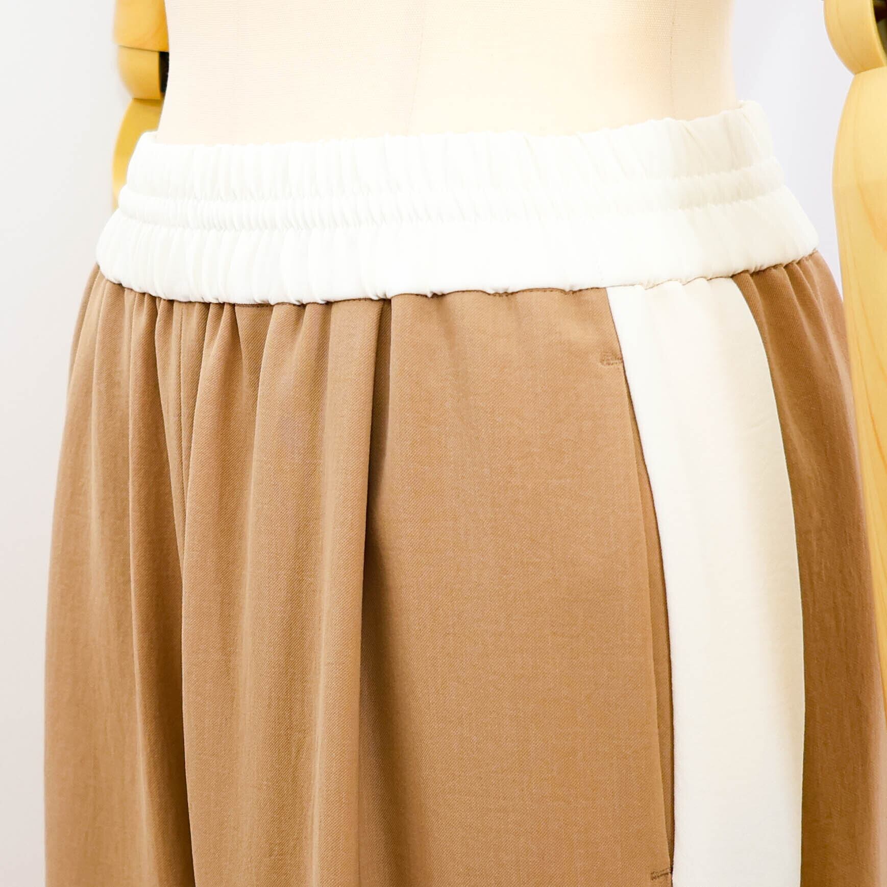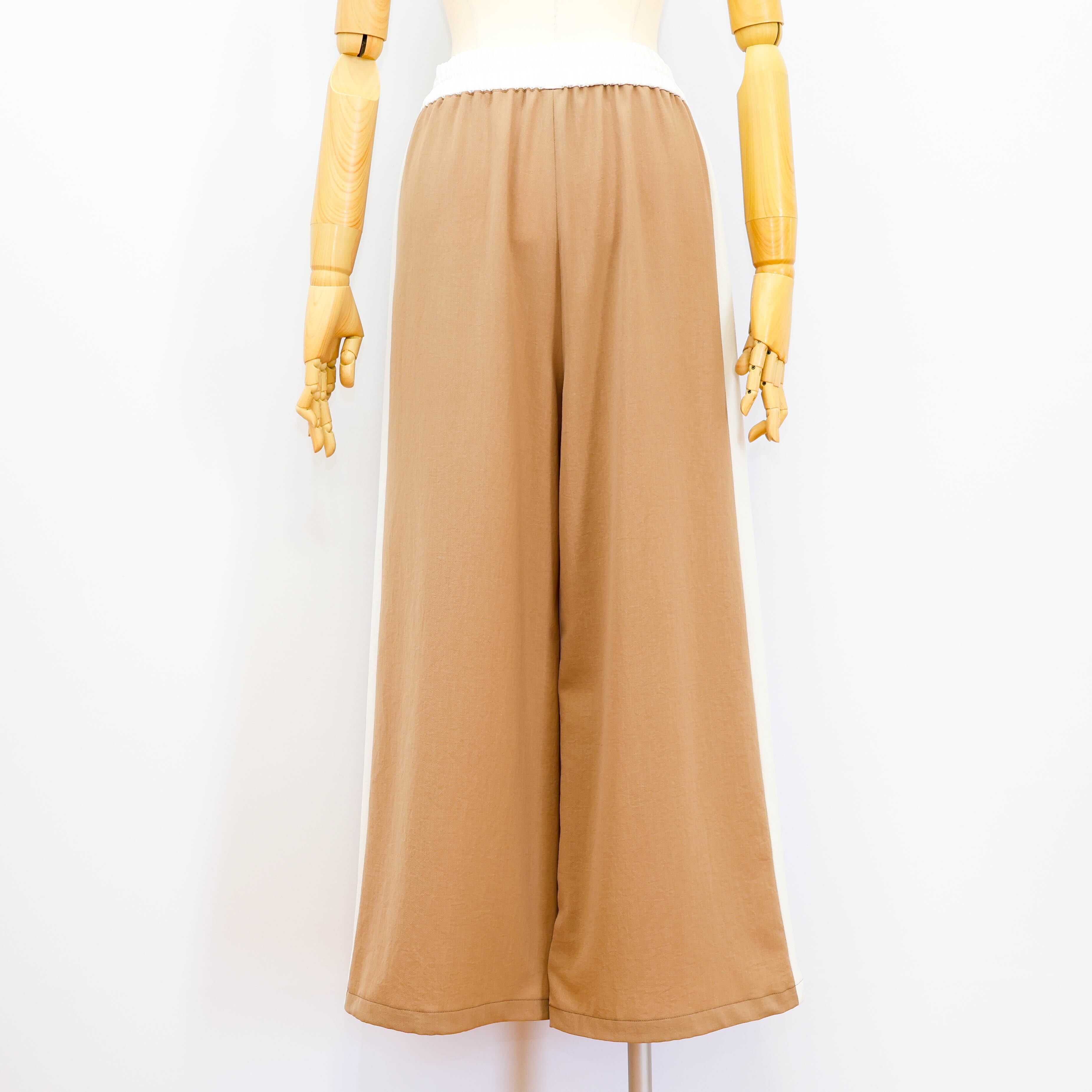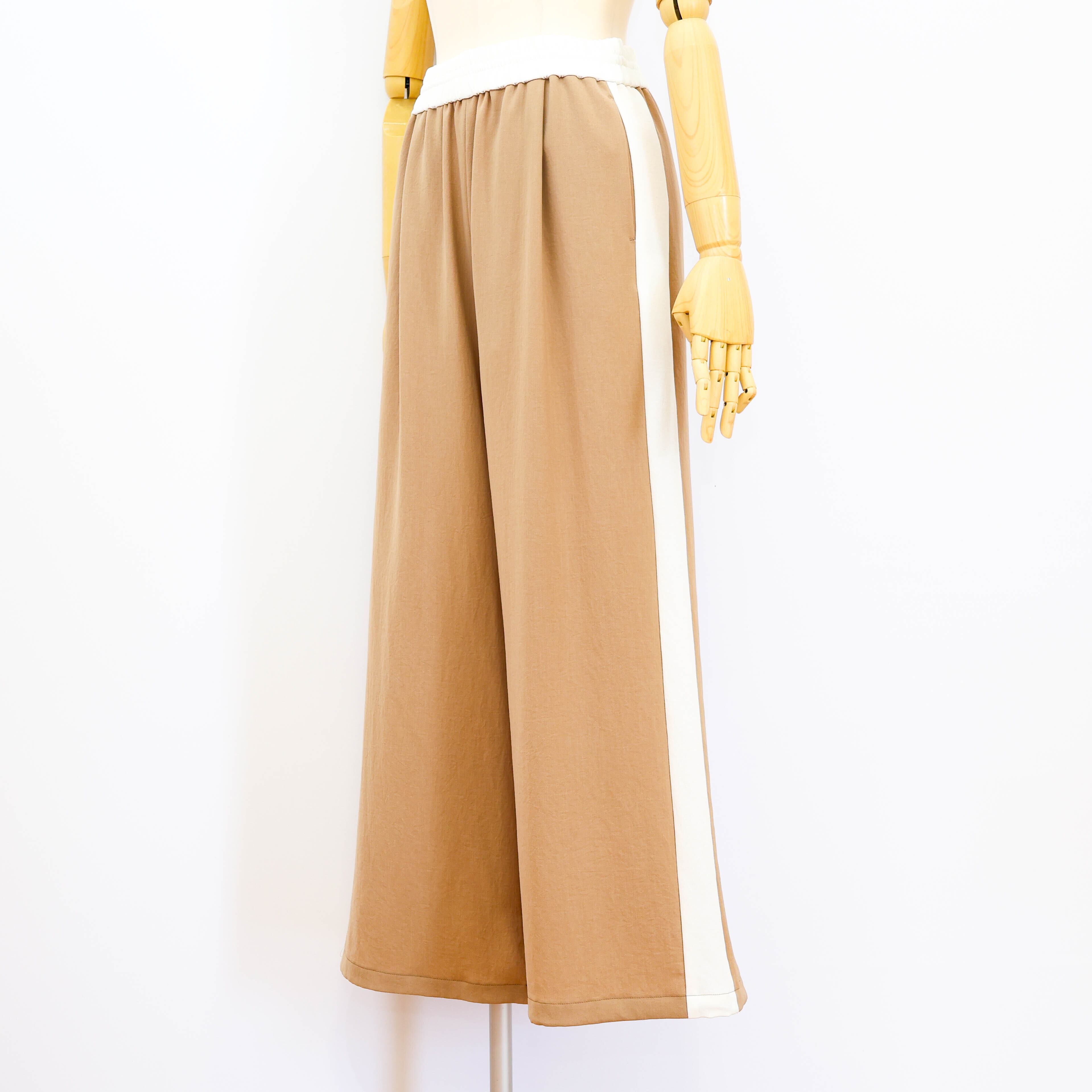 裾がドロスト仕様になったサイドライン入りのワイドパンツです。