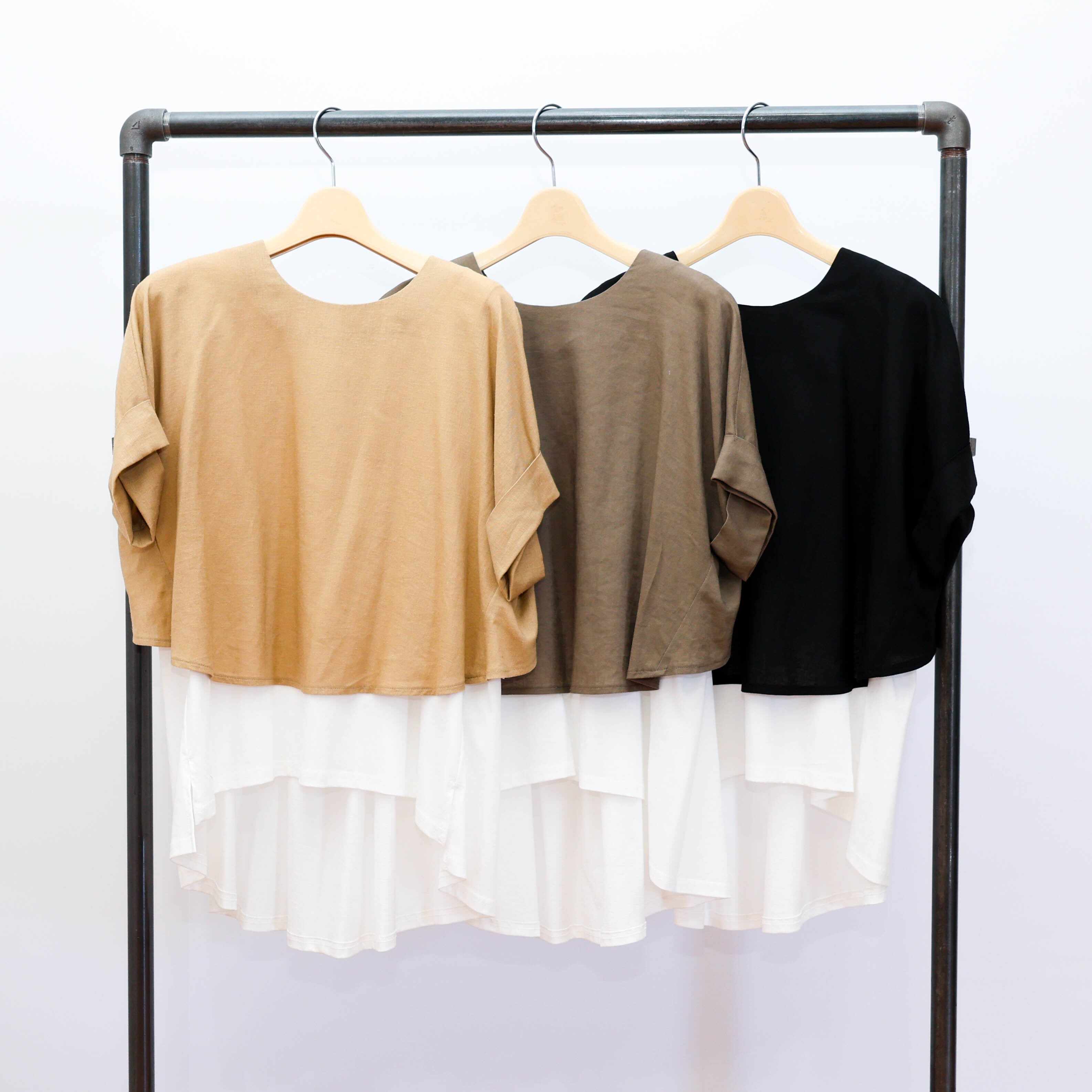 通気性の良いリネン混素材のショート丈トップスを
