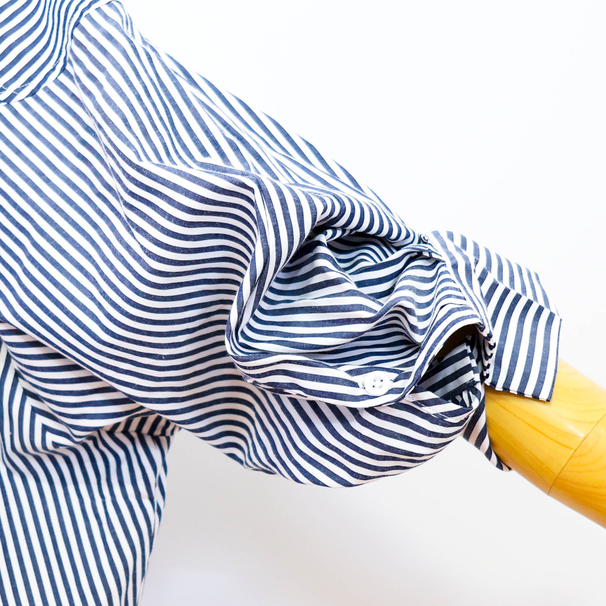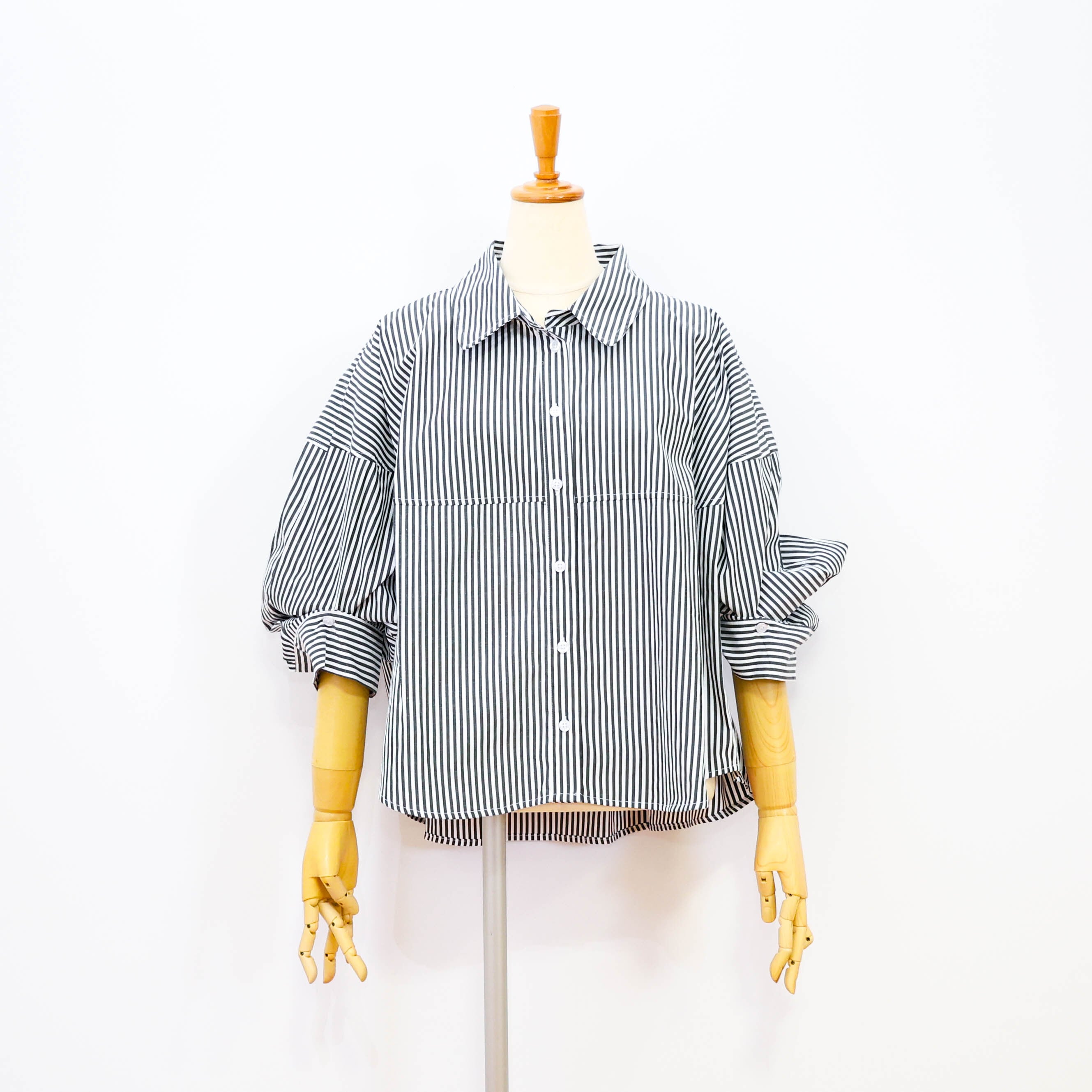 完成するストライプ柄のシャツブラウスです。