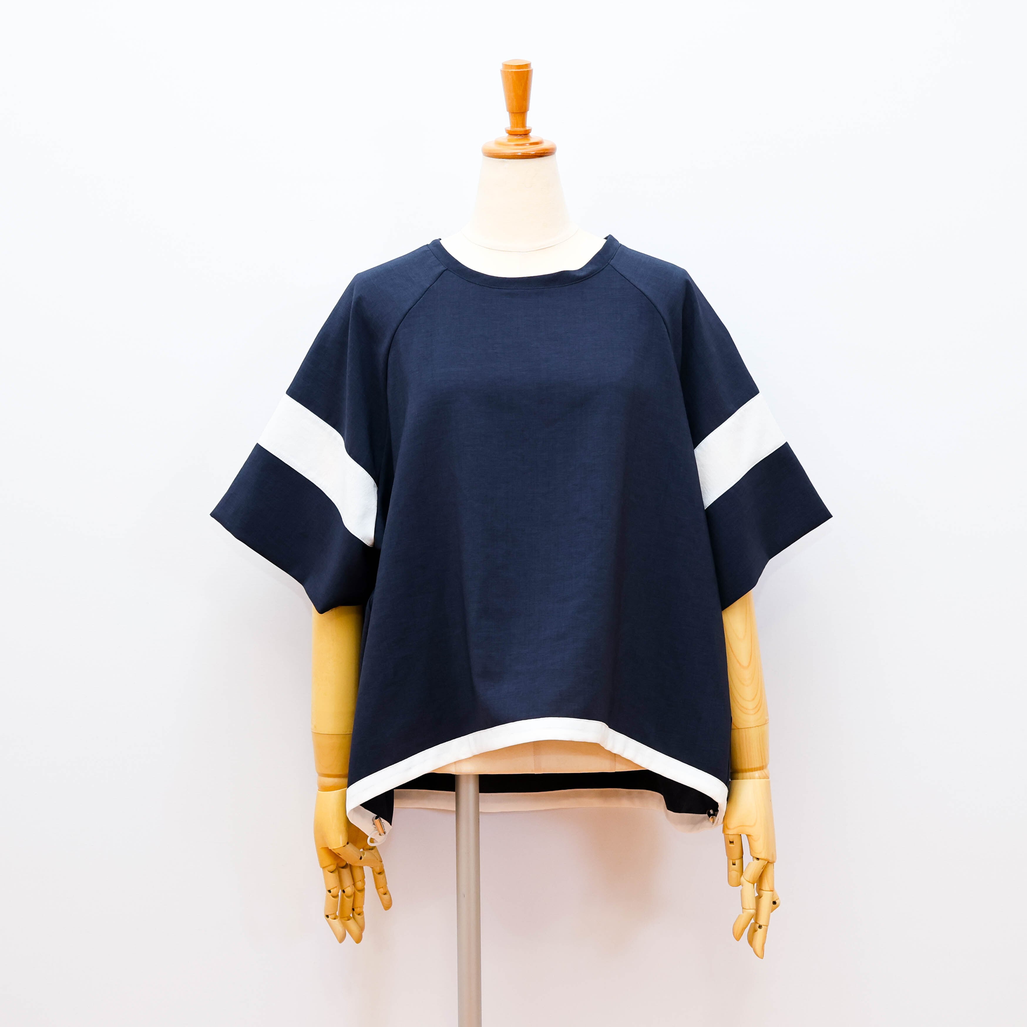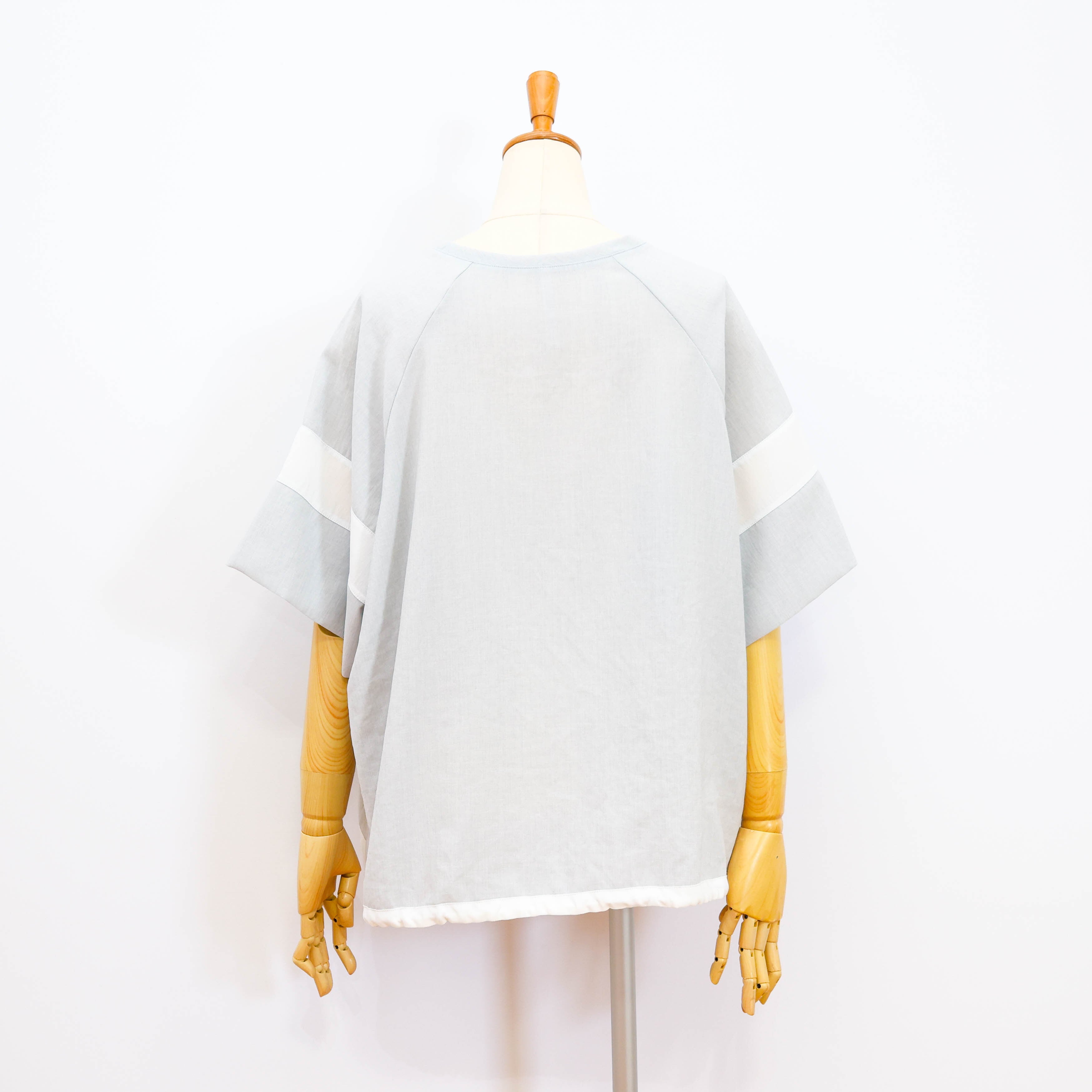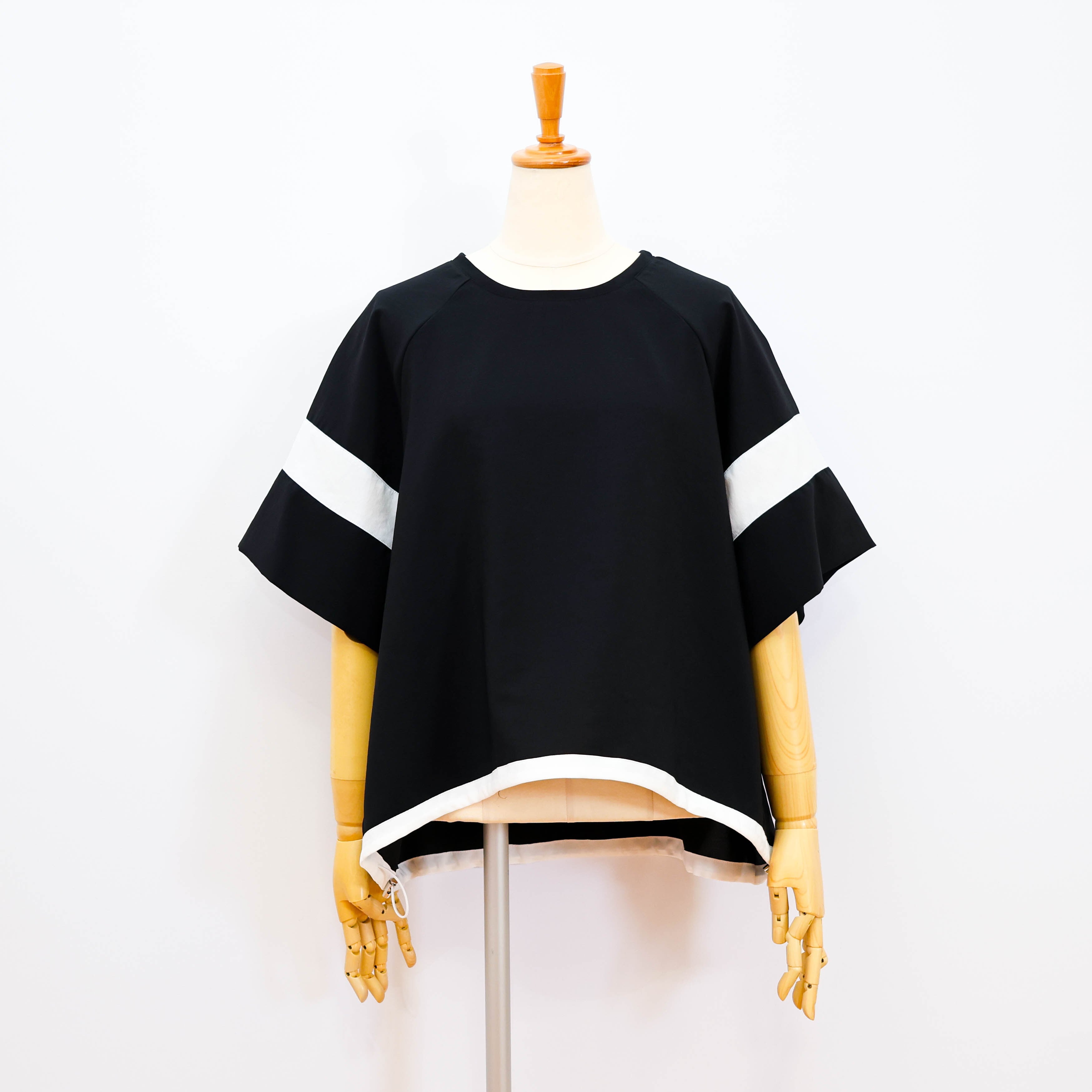 変化を持たせられる異素材切替えの五分袖ブラウスです。
